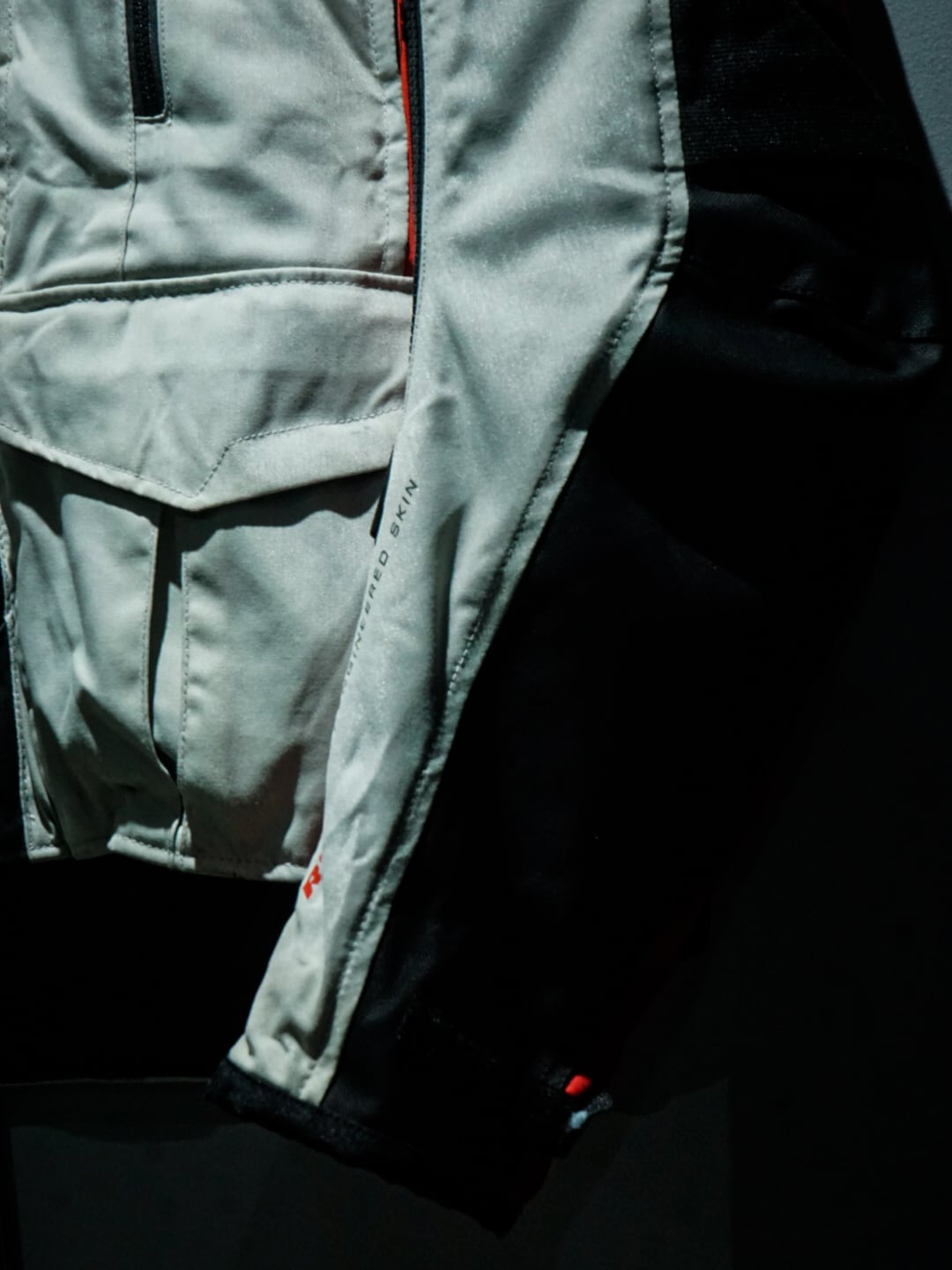 ボディサイドには幾つものベルト、フロント、背面、腕にはベンチレーション、首元には止める位置を調節できるスナップボタン等、デザインとして見てもめちゃくちゃ格好良いんです。