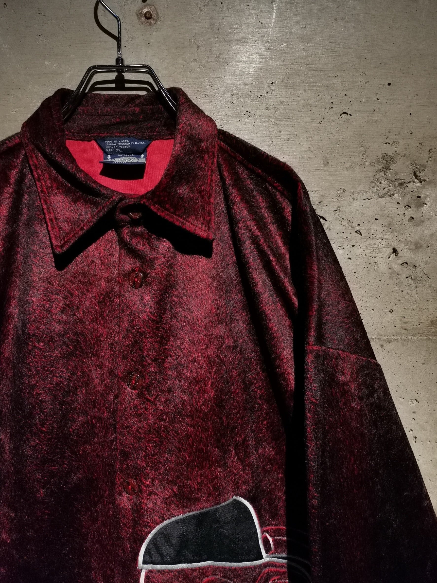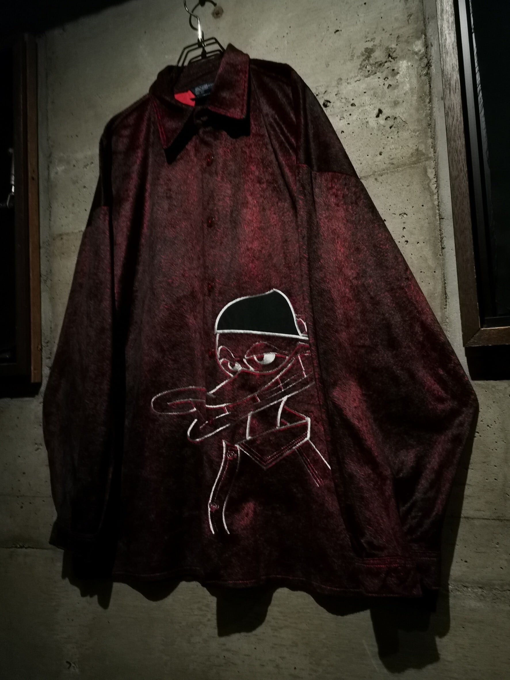 深みのある赤色のカラーリングで仕上げたフェイクファーのボディに、B-BOYなワニの刺繍を刻んだ稀有な長袖シャツ。