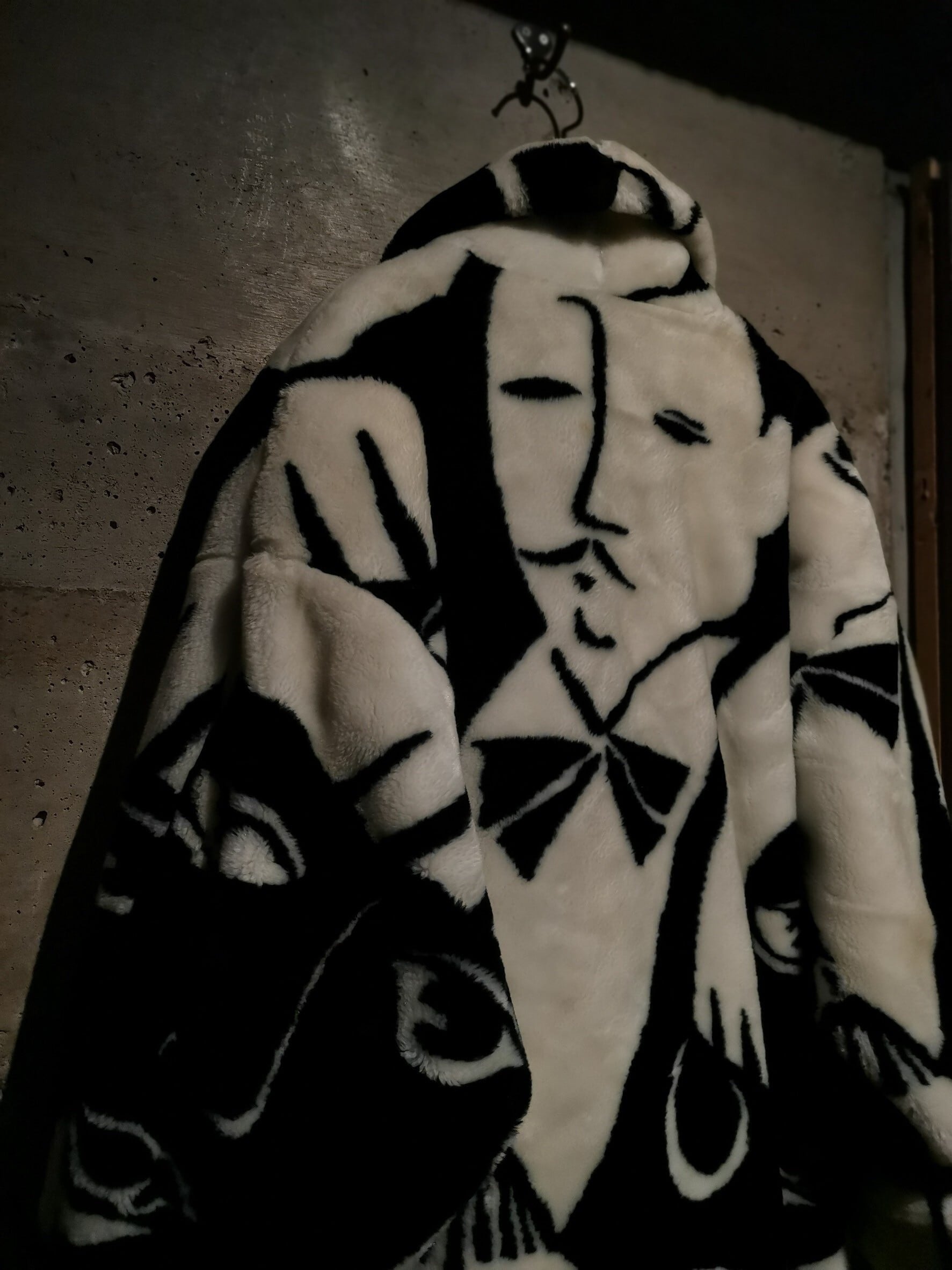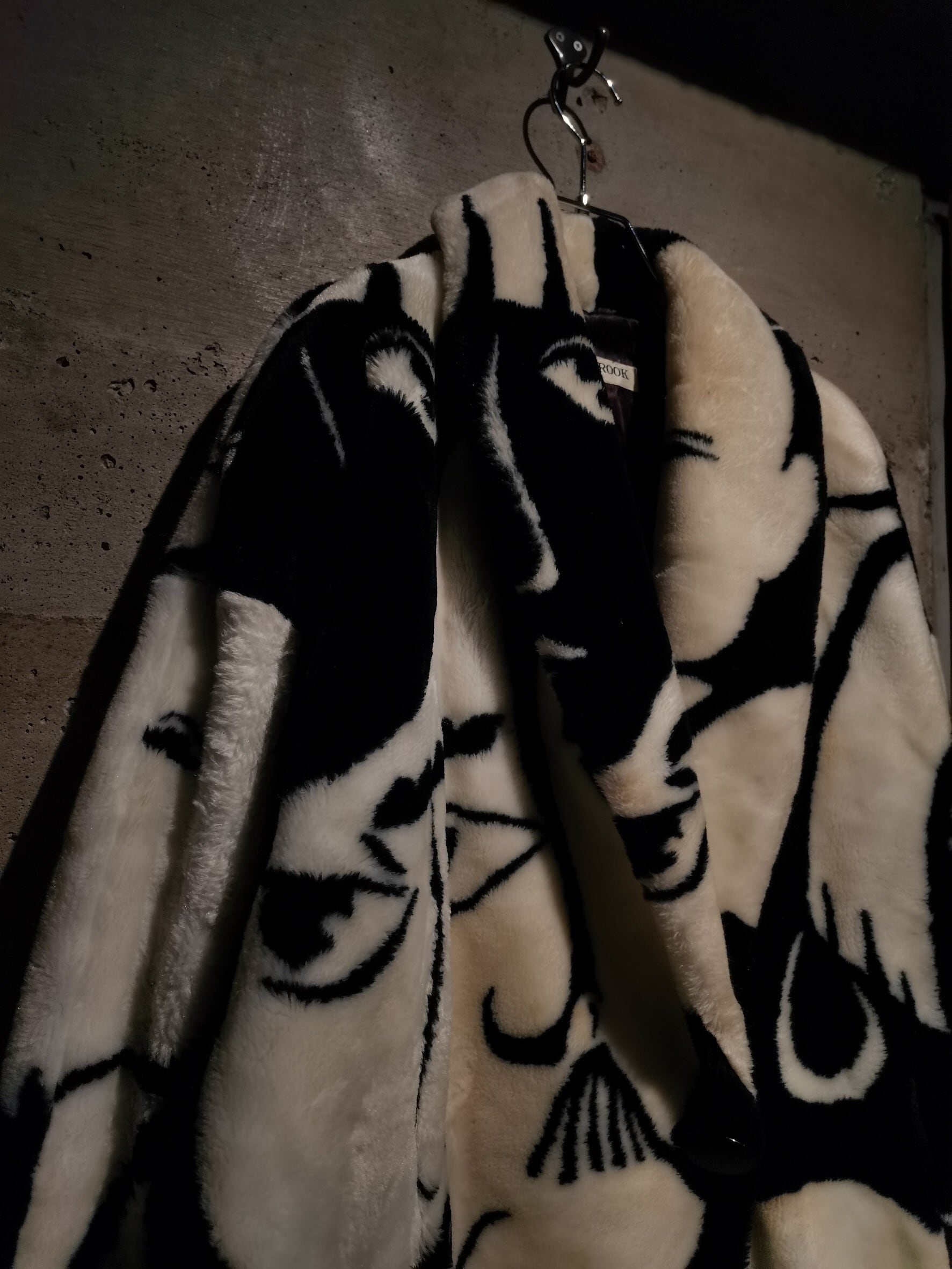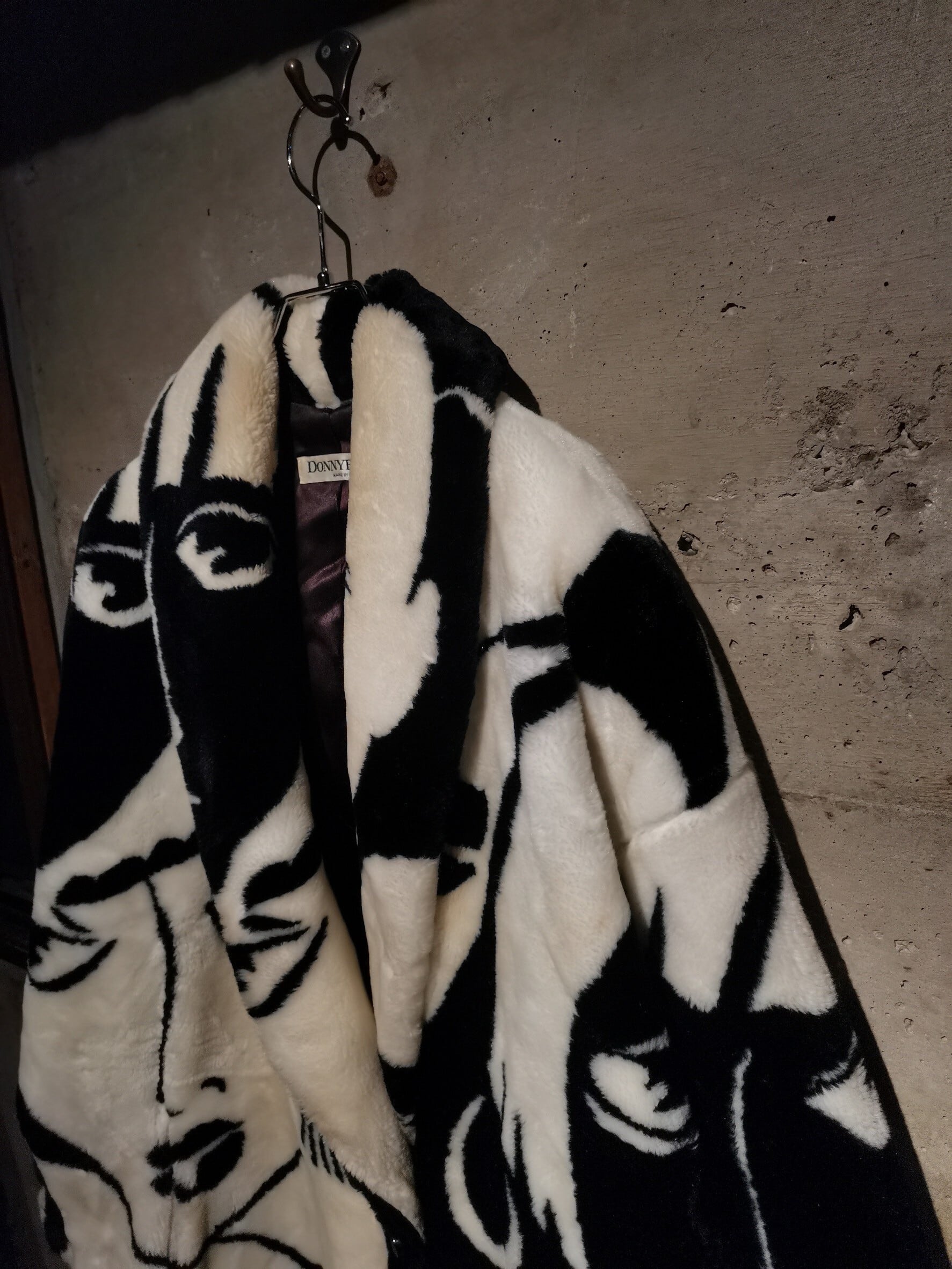 シンガーソングライター、女優、実業家などマルチに活躍の場を広げるリアーナが着用して一気に人気と稀少価値が高まった"DONNY BROOK"のフェイスパターンのファーコート。