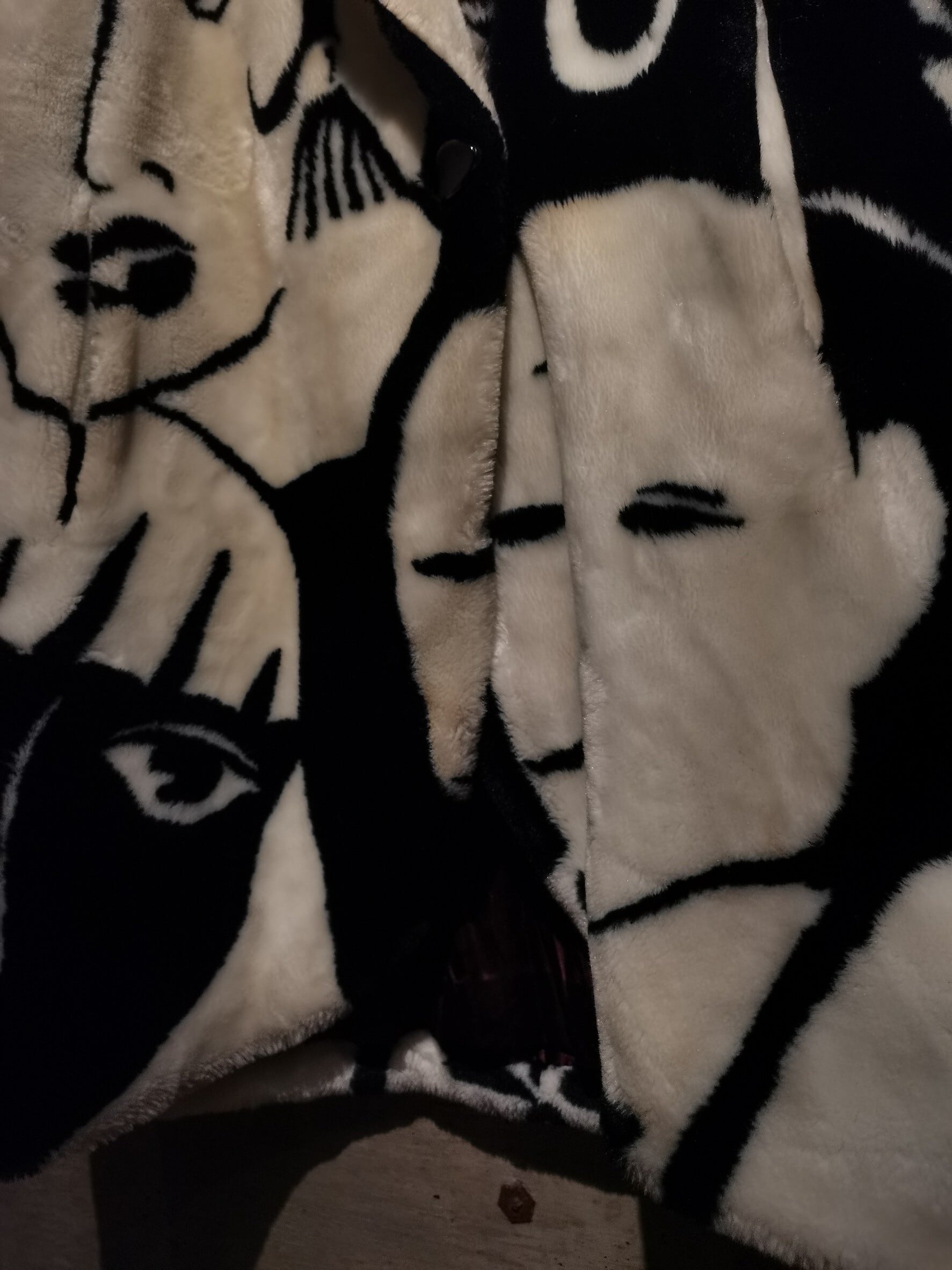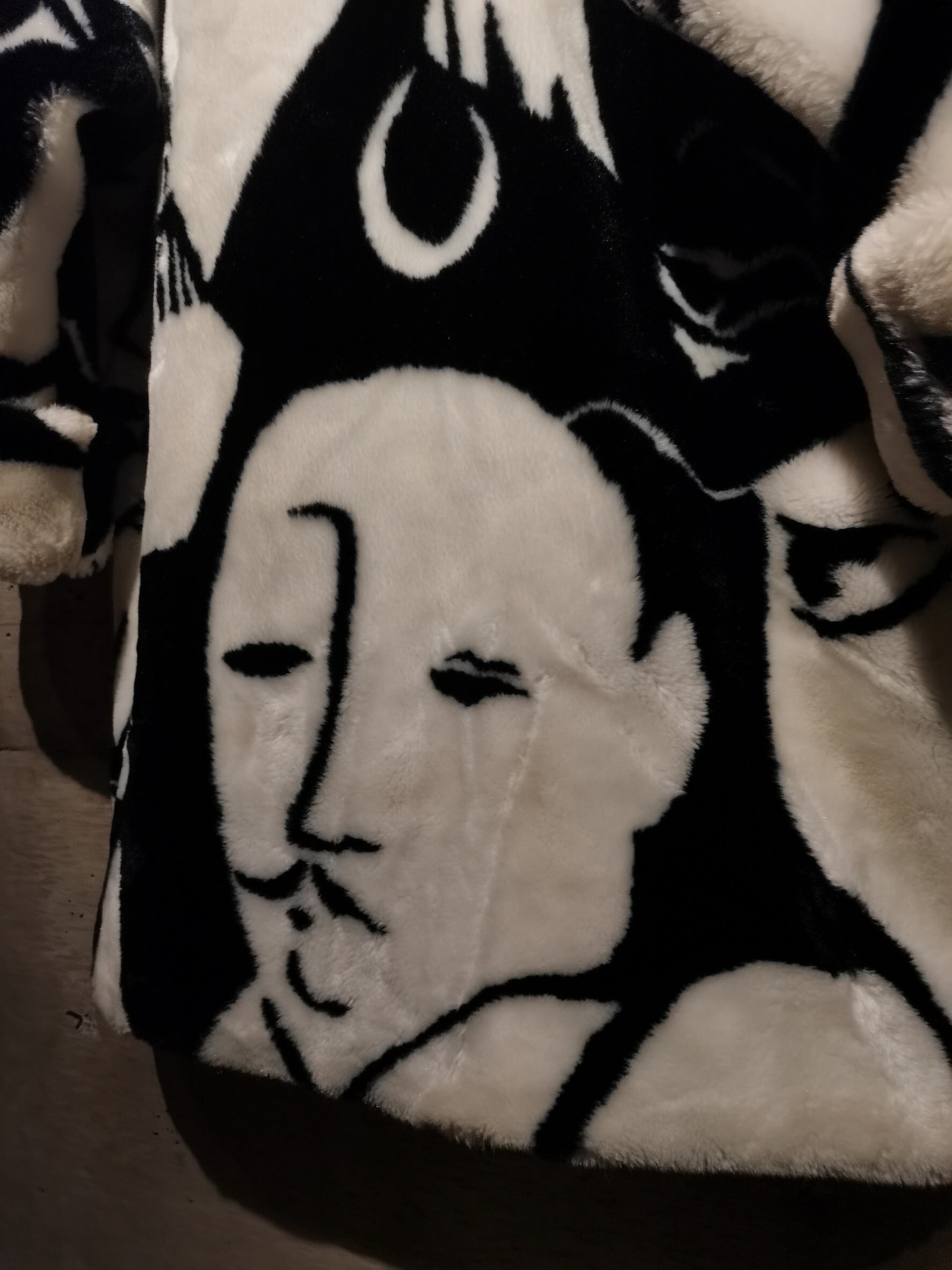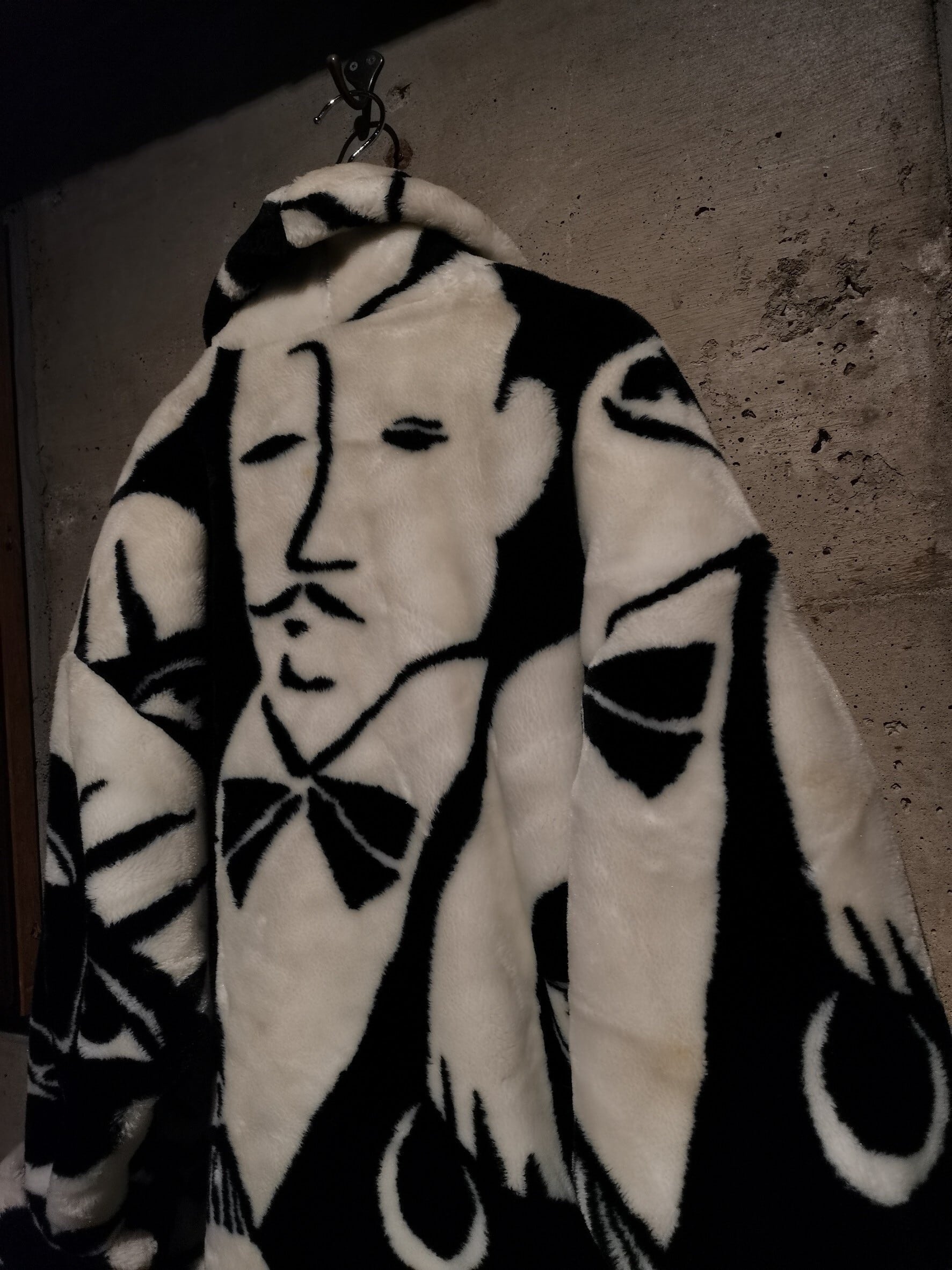 シンガーソングライター、女優、実業家などマルチに活躍の場を広げるリアーナが着用して一気に人気と稀少価値が高まった"DONNY BROOK"のフェイスパターンのファーコート。