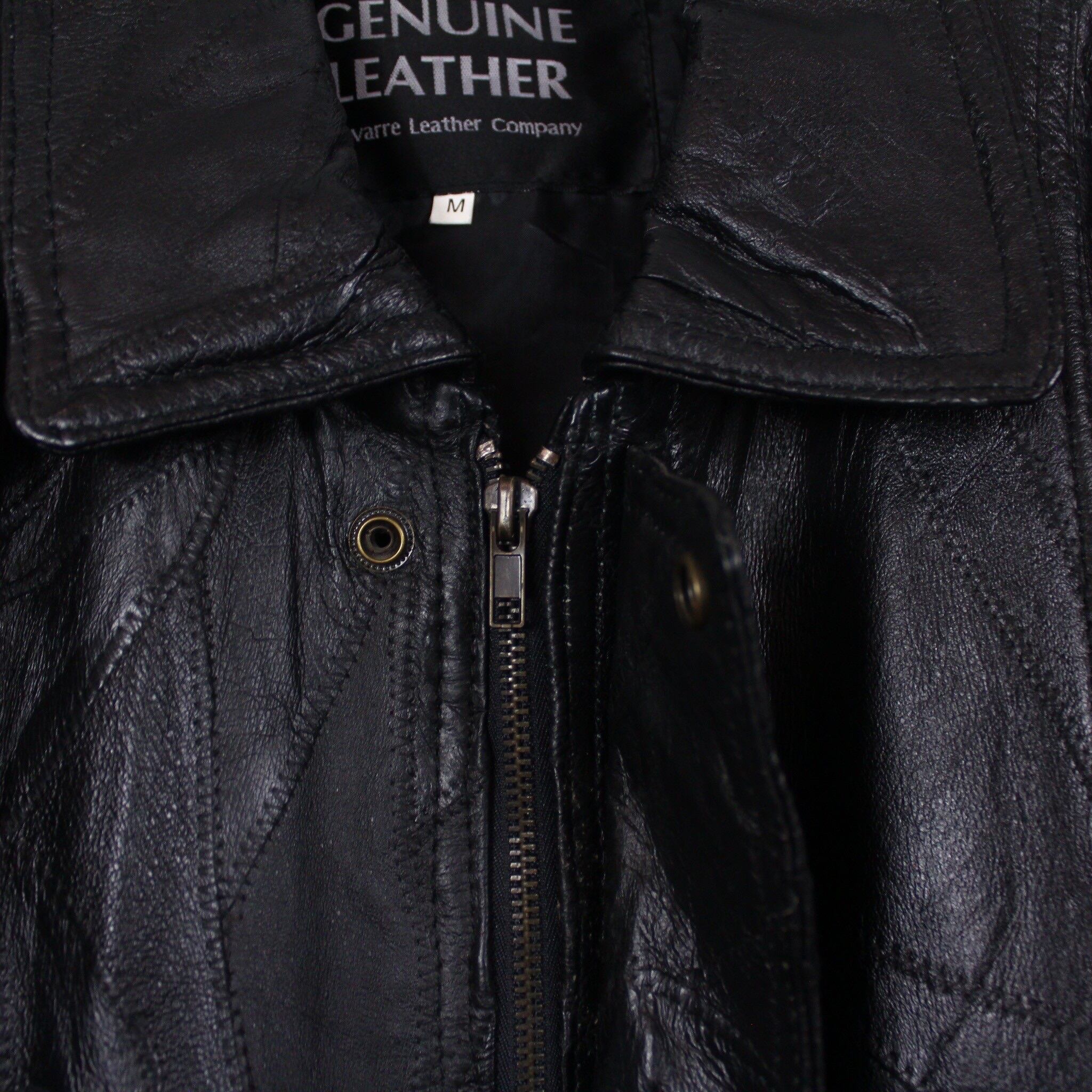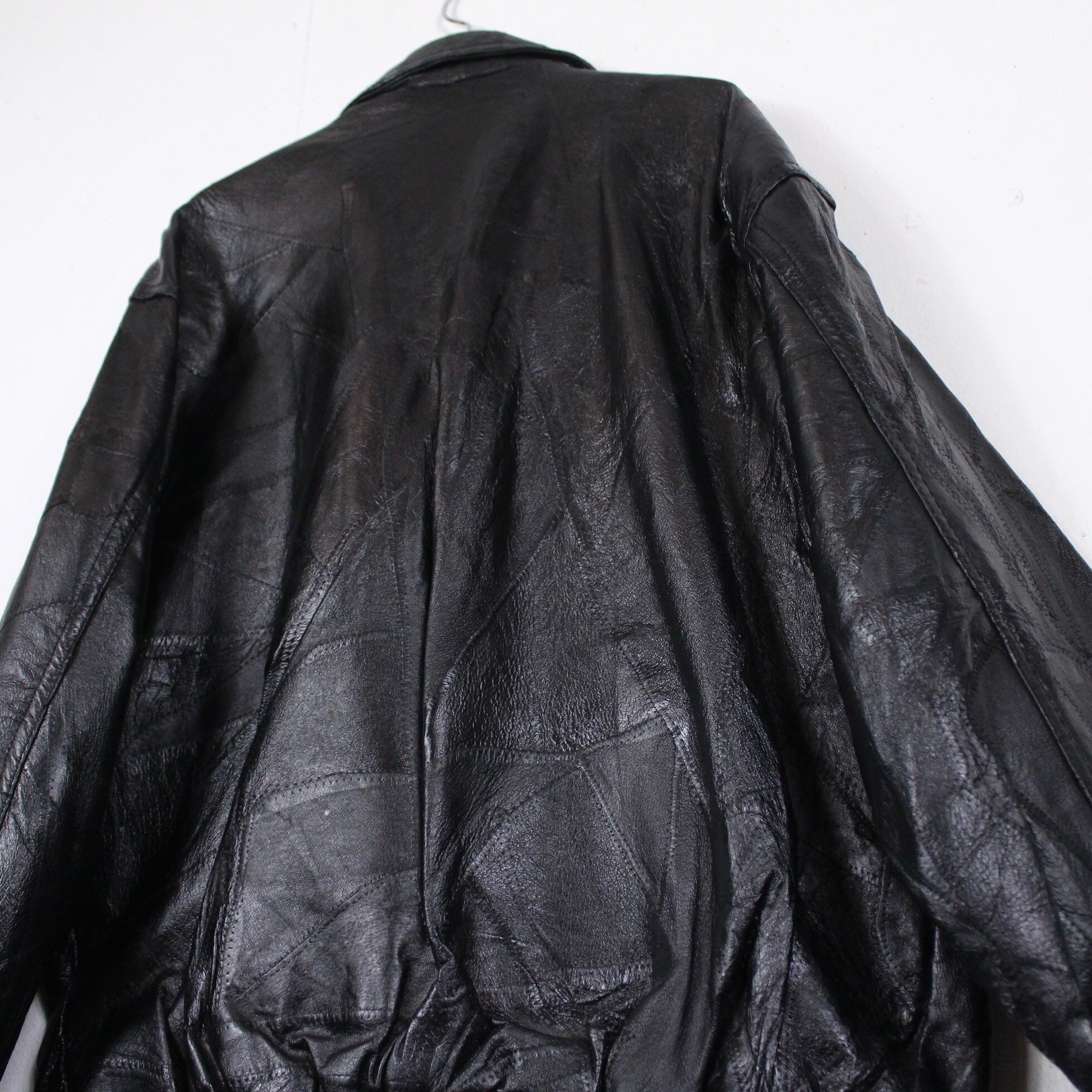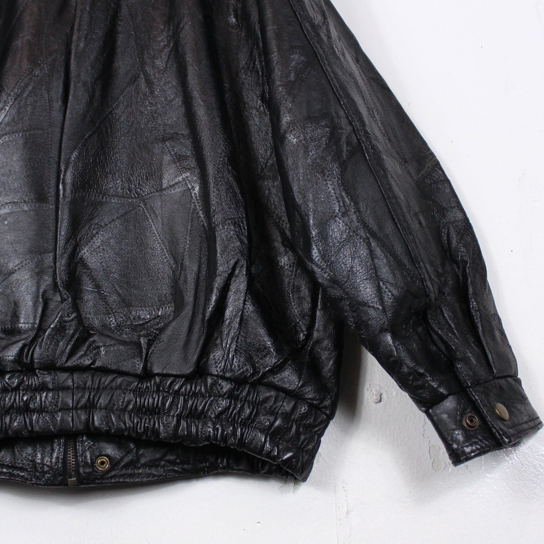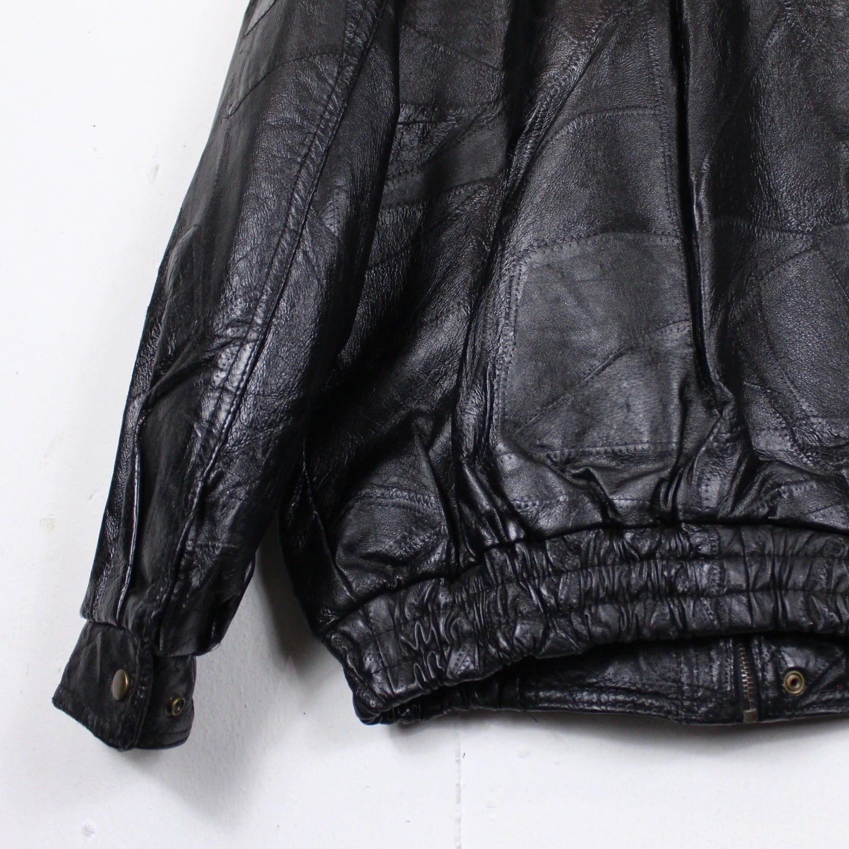 オールブラックで纏め上げた上質なブラックレザーを贅沢にツギハギ状にパッチワークで繋ぎ合わされたレザーが見せる立体感が素晴らしい1着。