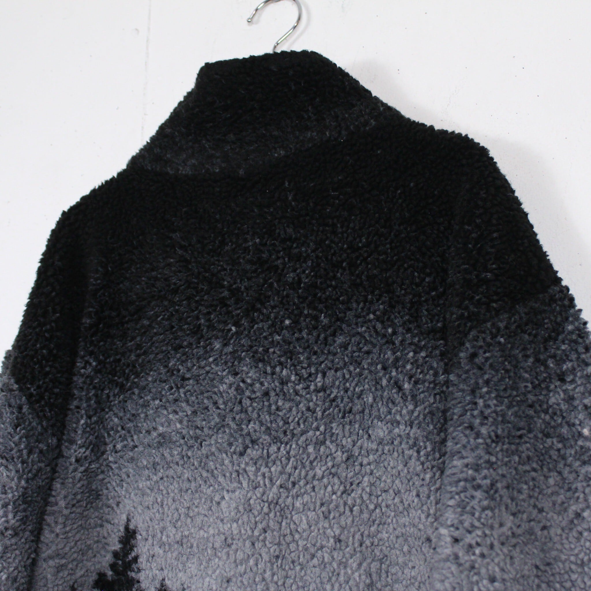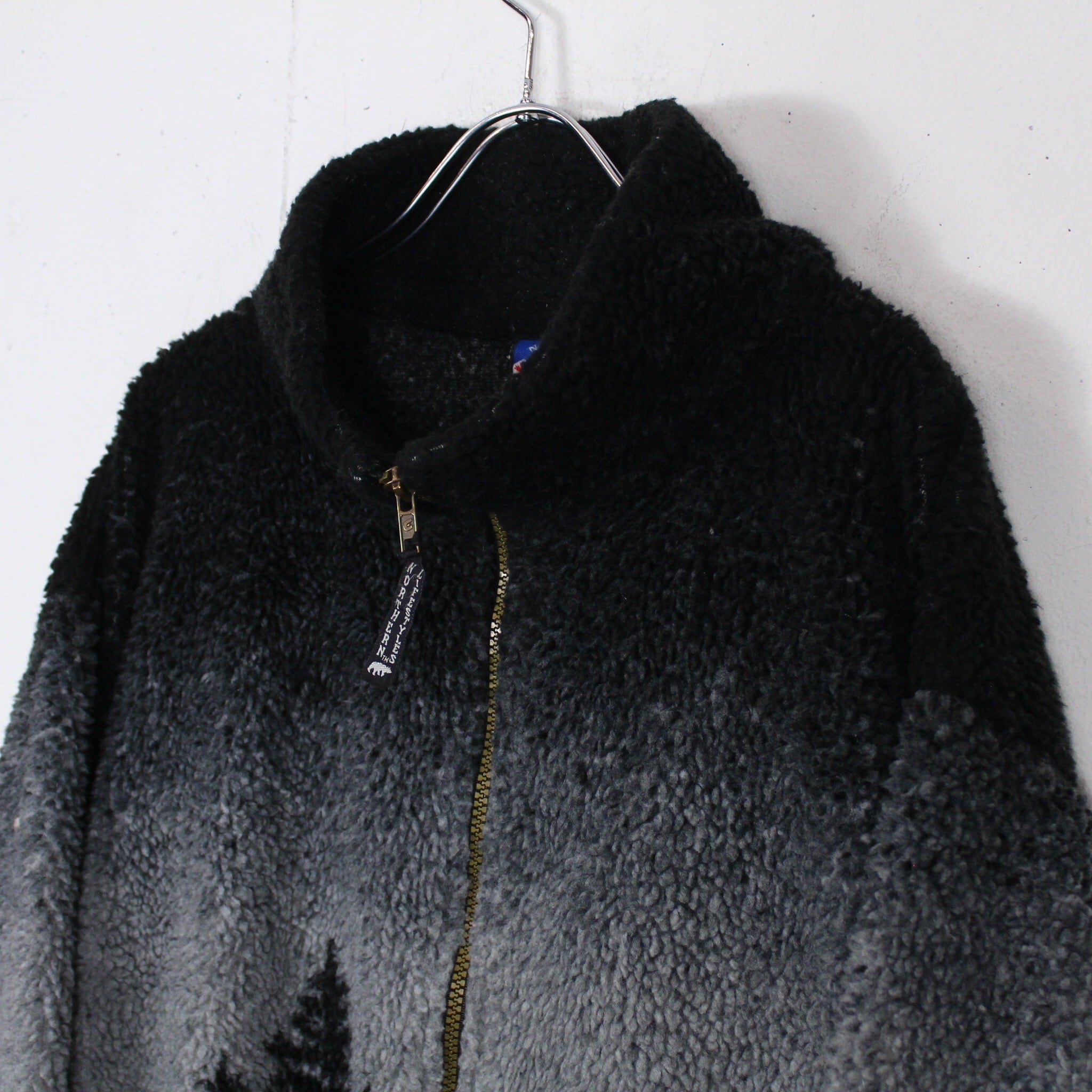 フリース特有のフワッと柔らかな肌触りと軽やかな質感のボディに、自然の中に悠然と生きる熊を載せたフリースジャケット。