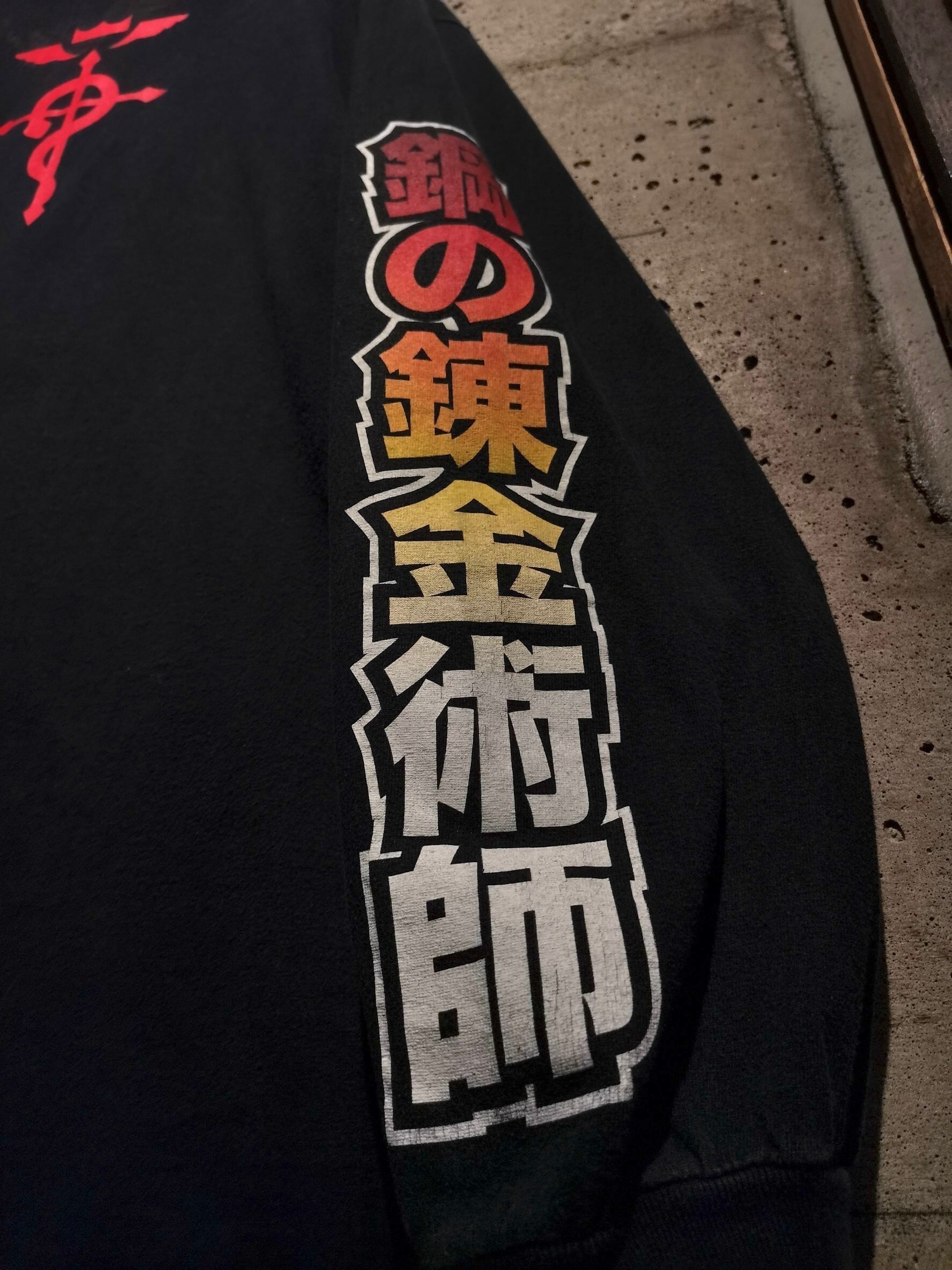 日本のアニメ、ゲームモノは海外でも高騰化が見られる中、コンディションにサイジング、年代、デザイン全てを兼ね備えた1着。鋼の錬金術師好きにはもちろん、見たことがない方も是非手に取ってそして見て好きになって頂きたい、このアイテムもアニメもお試し頂きたい逸品です。