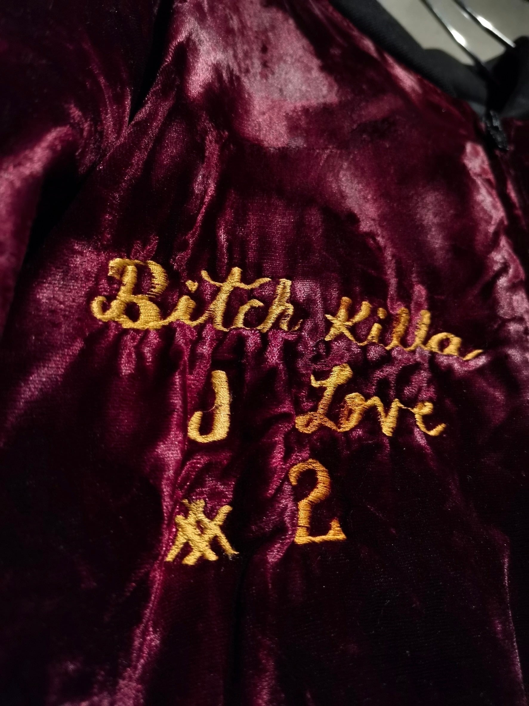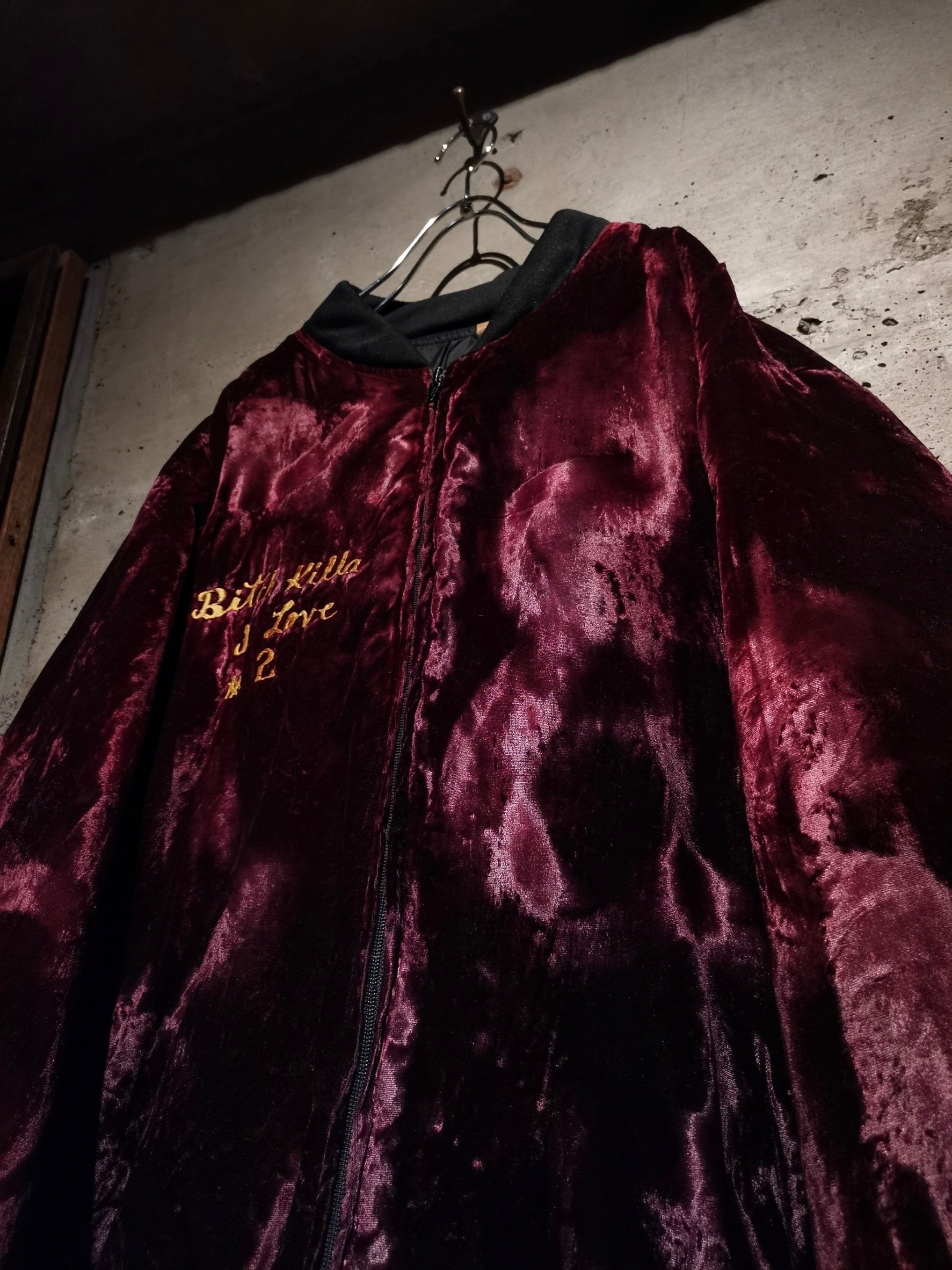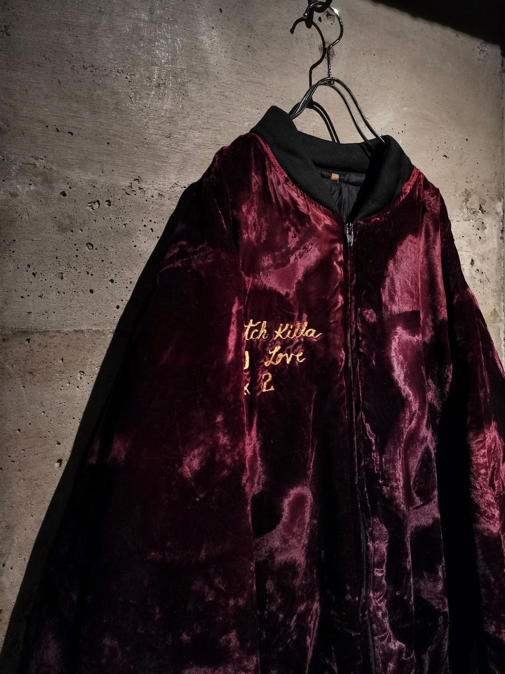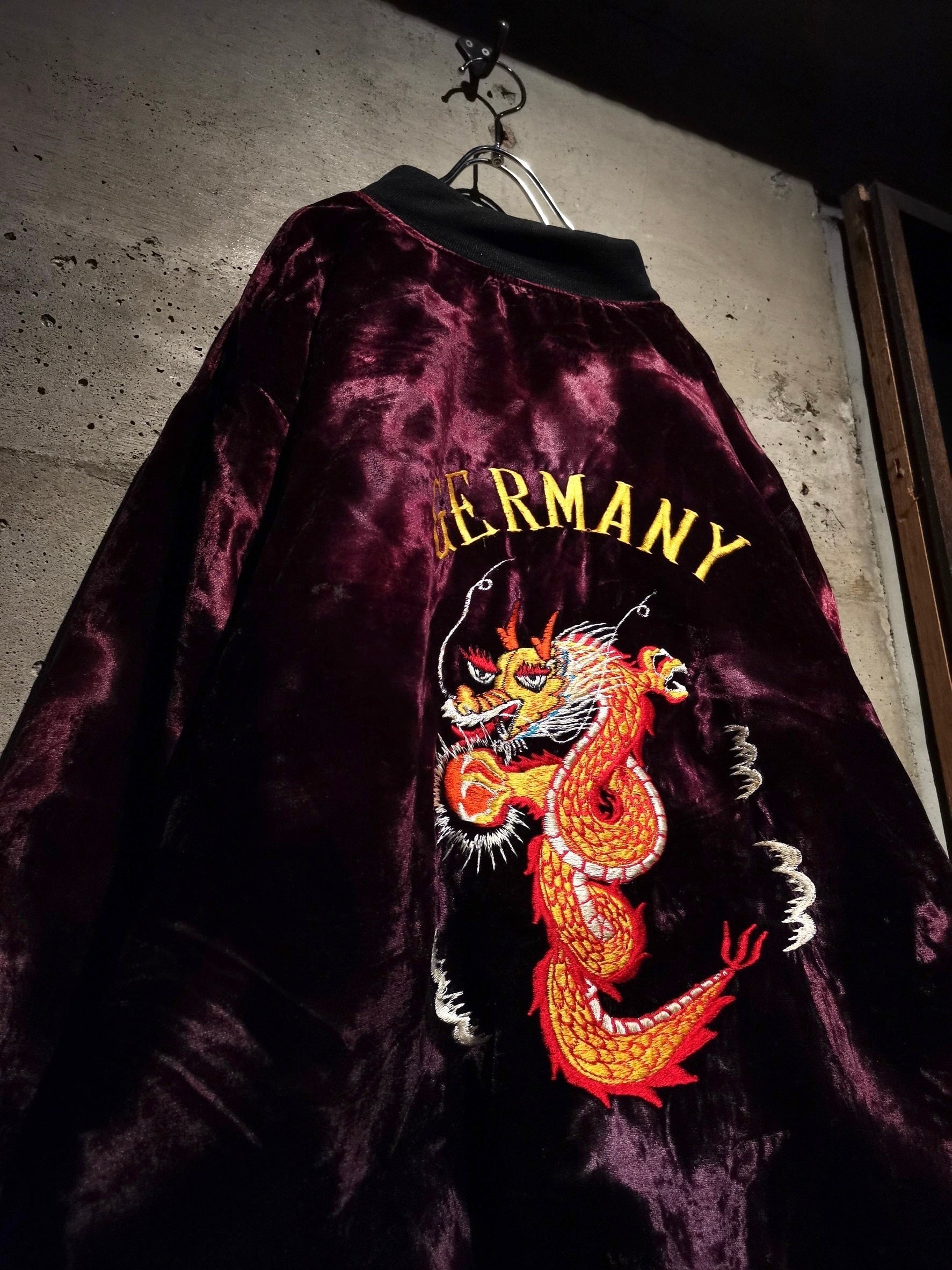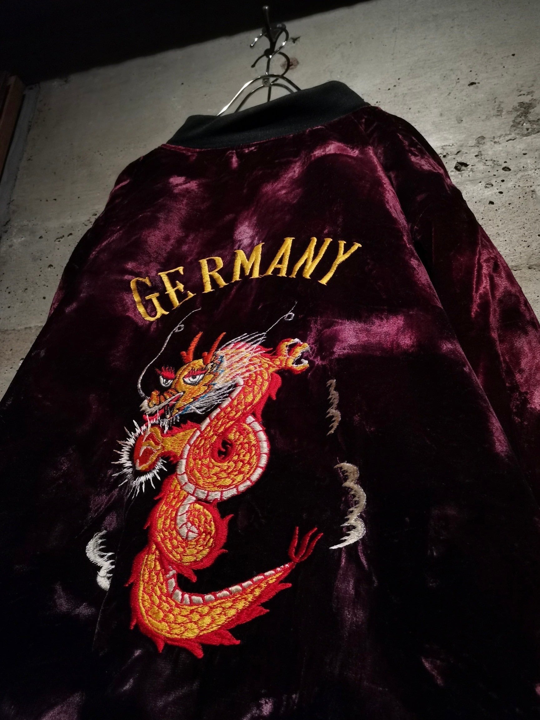 上品なパープルカラーを纏ったベロア生地を用いたボディに、背面には大々的に龍の刺繍とGERMANYの文字を載せたジャケット。