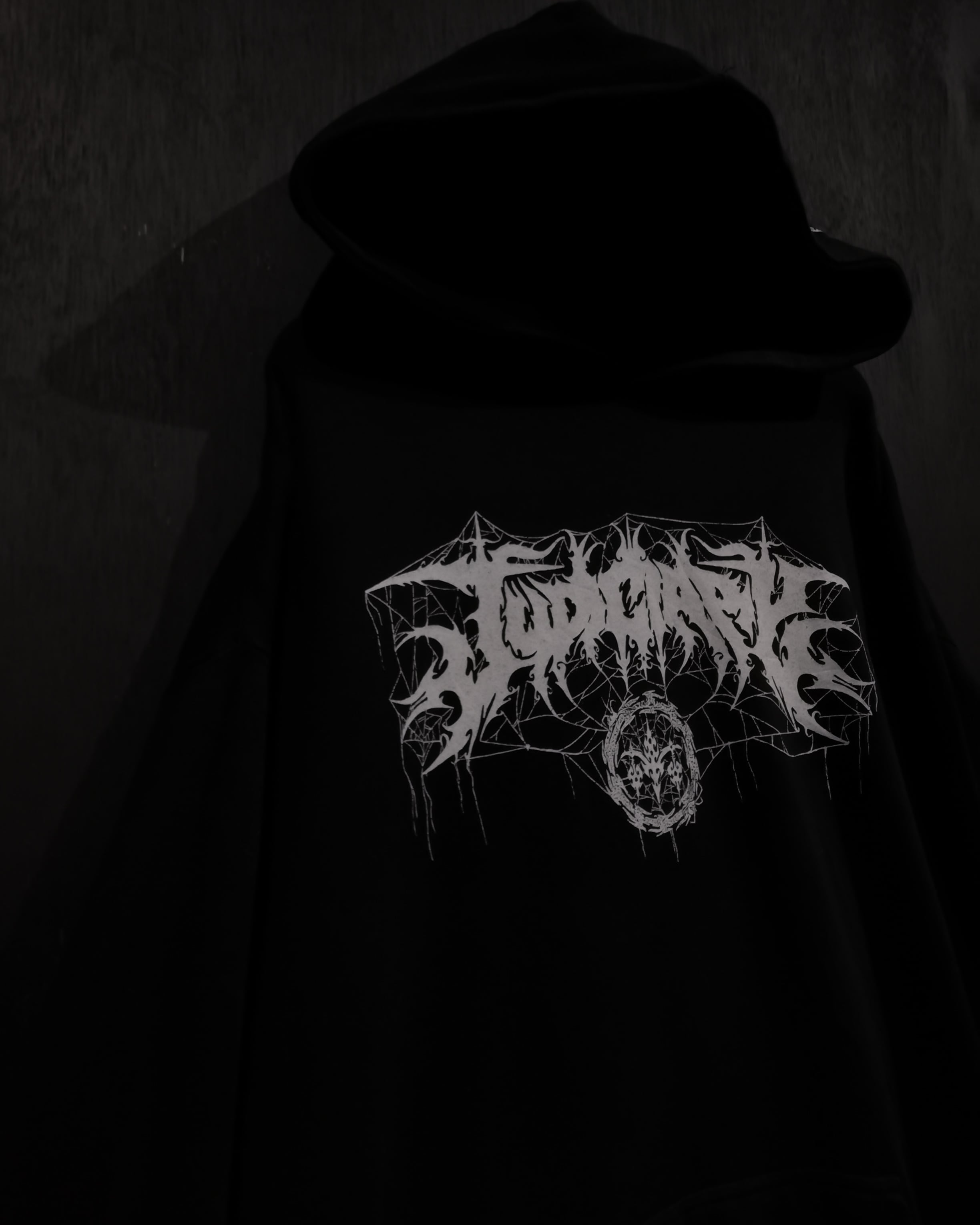 昨今のトレンド感に、当店らしいダークかつY2Kな雰囲気を纏ったフーディの逸品です。