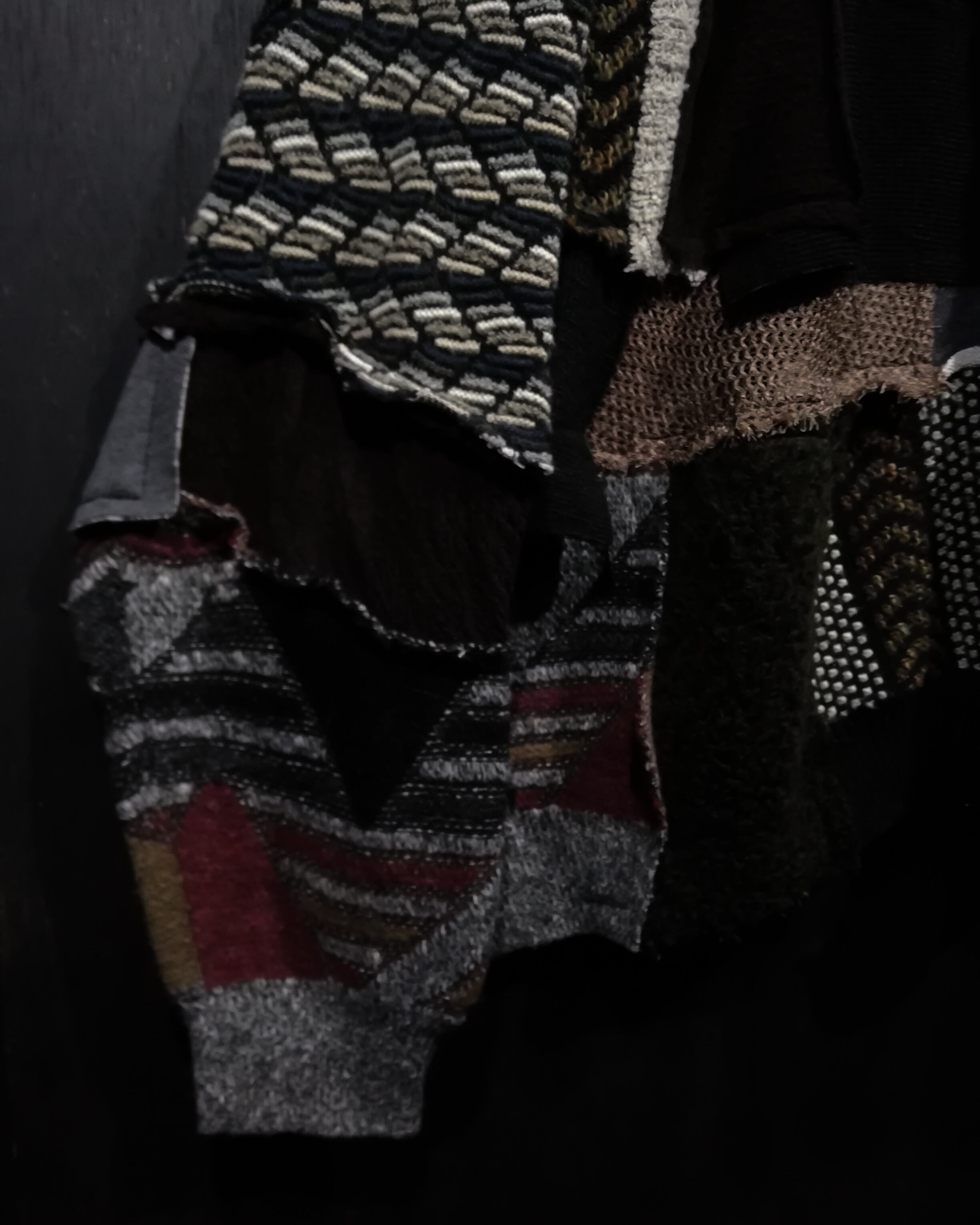 ヴィンテージのニットを解体し、異素材を交えた複雑なドッキングを載せた、当店が誇る至極のリメイクシリーズのニットが入荷。