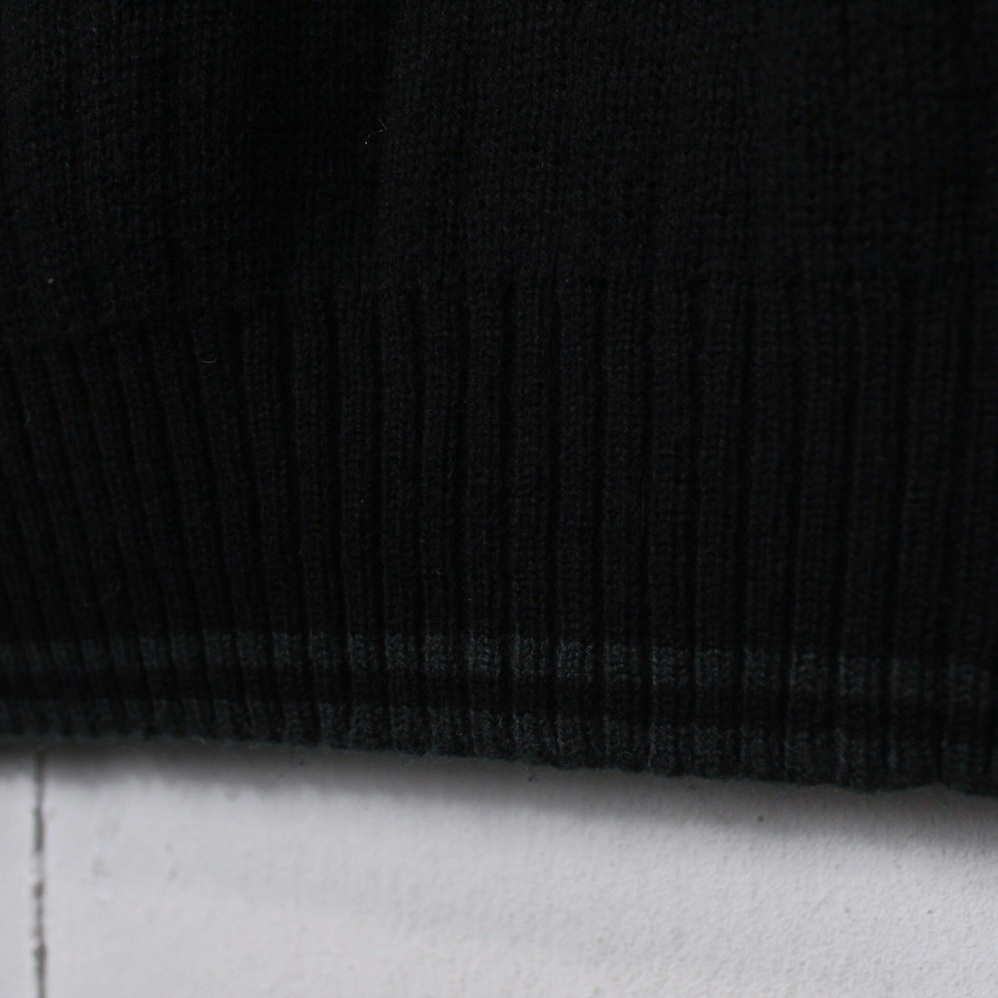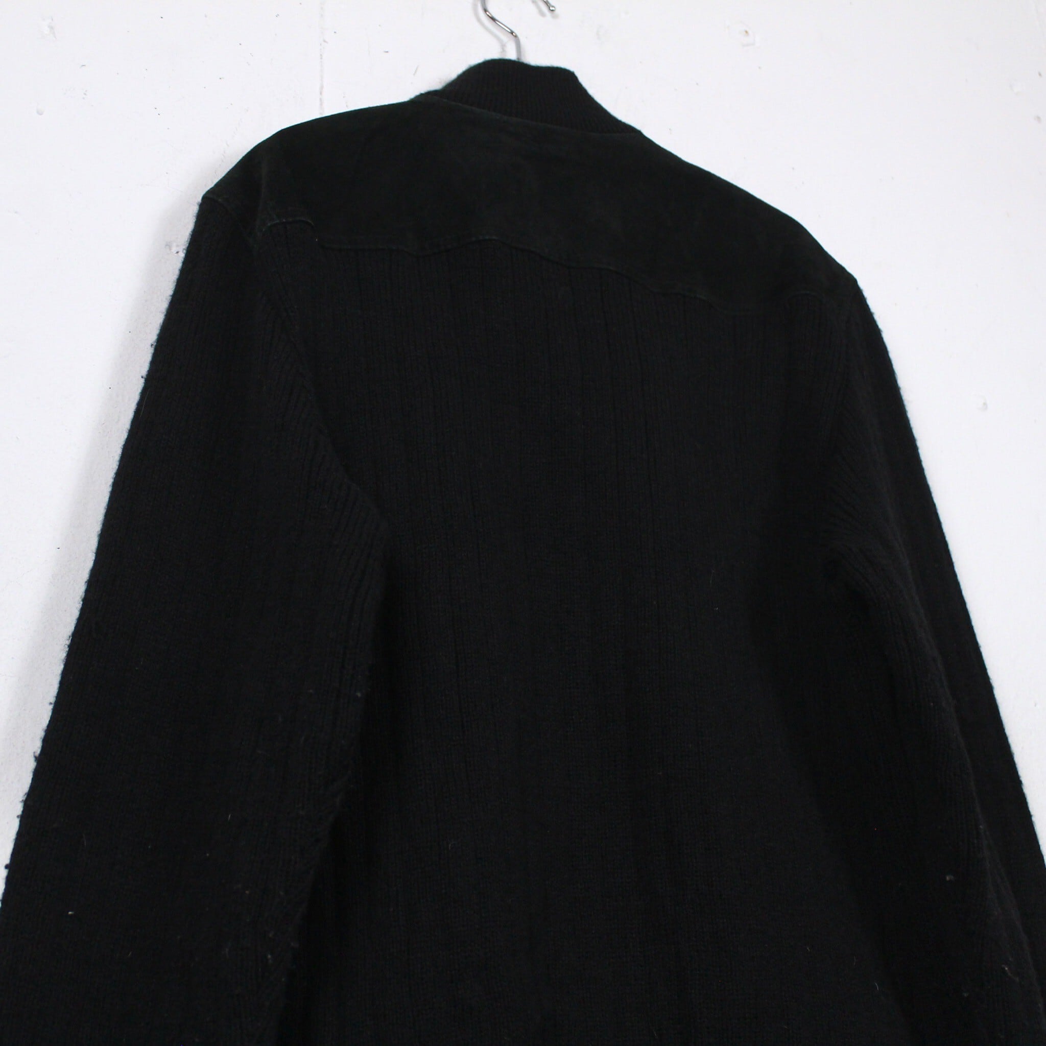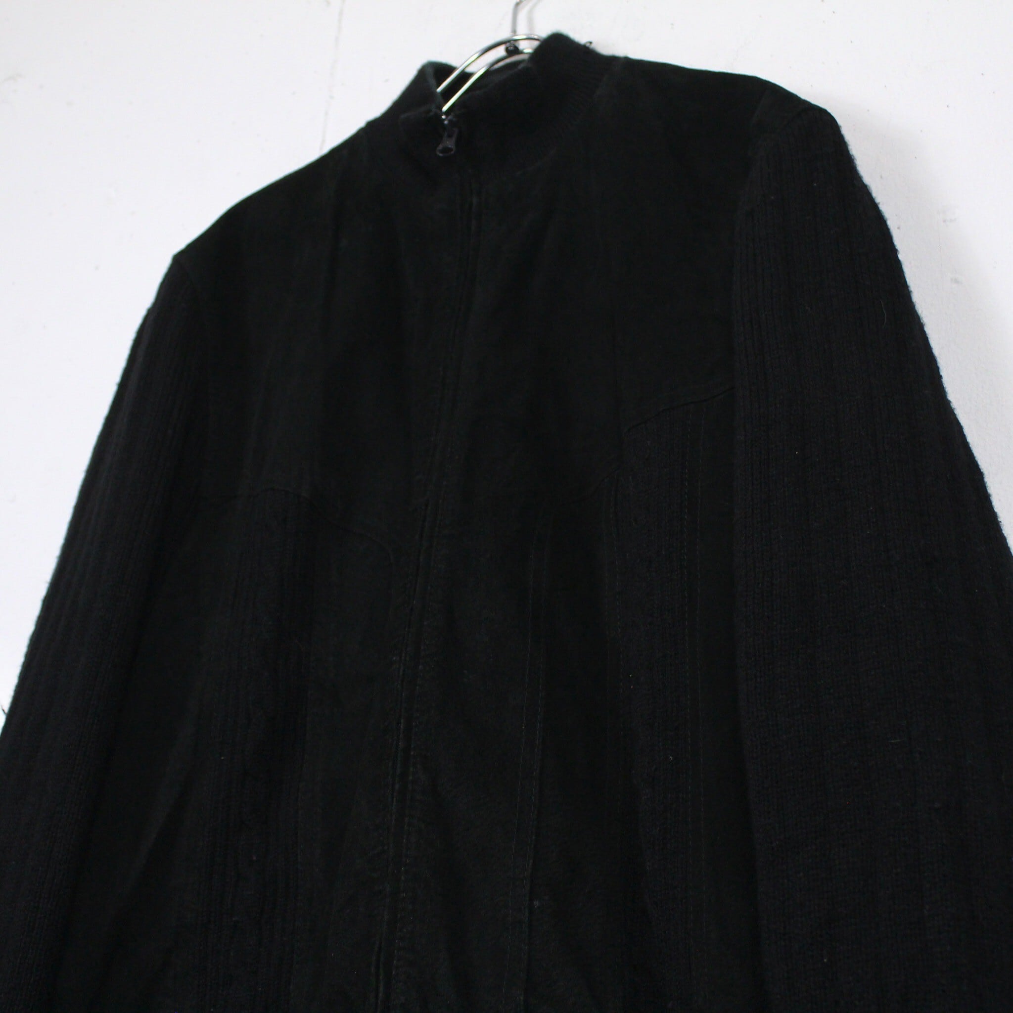 こちらはブラックのニットをベースに、前身頃に上質なスエードレザーを切り替えた1着。ブラックベースのカラーリングですが、異素材の切り替えによって立体感のある仕上がりに。