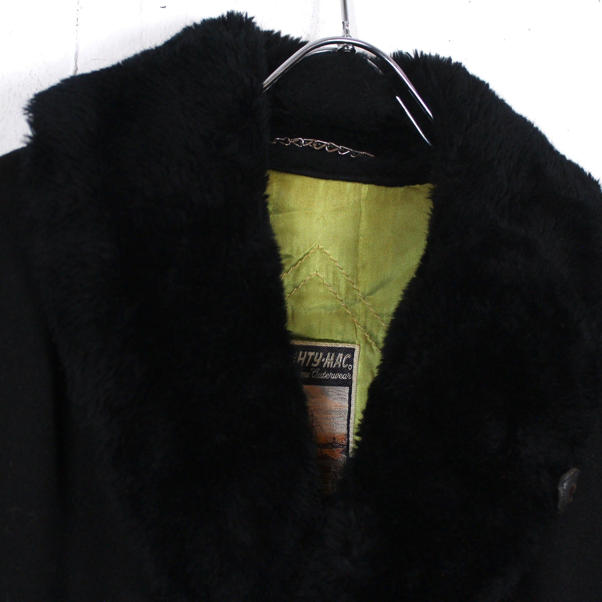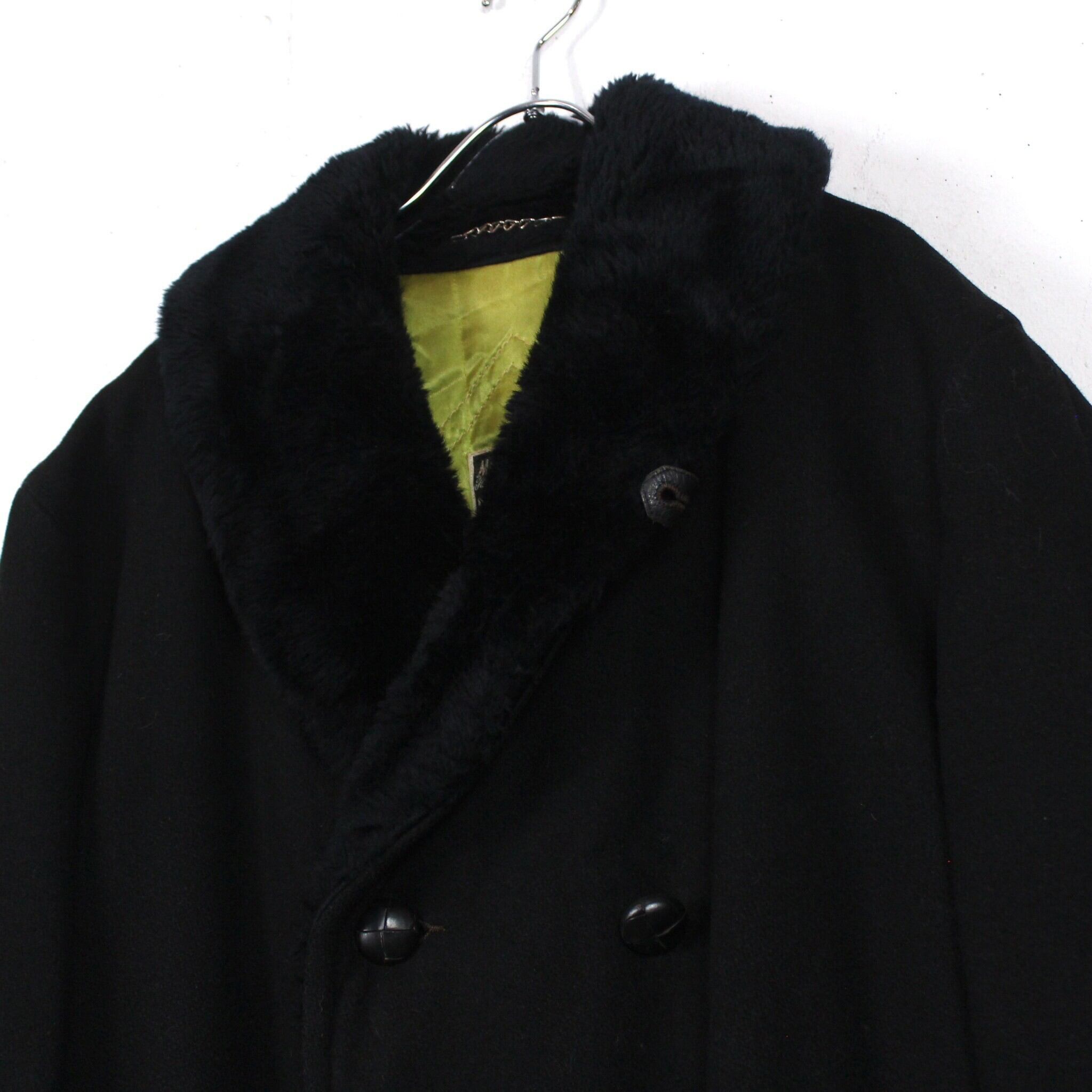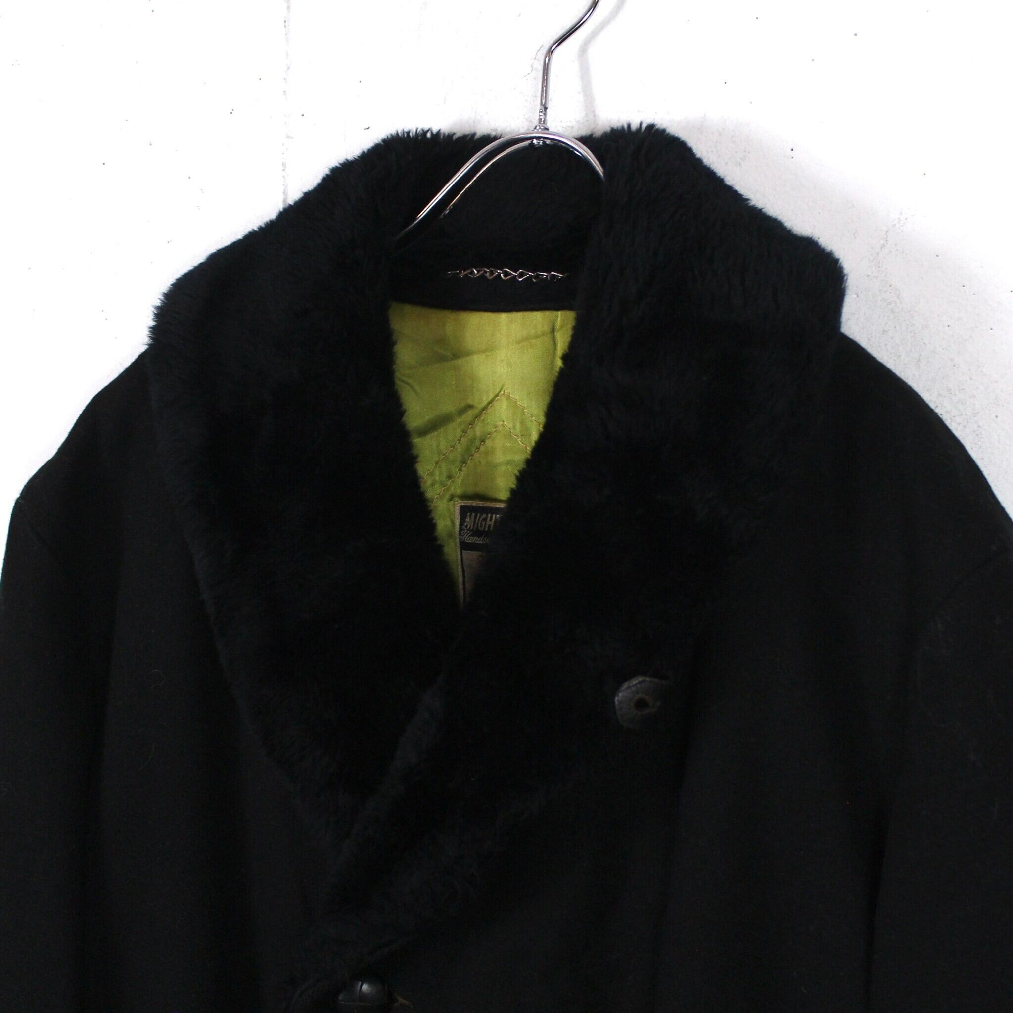 柔らかく目の詰まったウールを用いたボディに、ショールカラーをボアで切り替えた60〜70'sヴィンテージの通称"ギャングコート"。