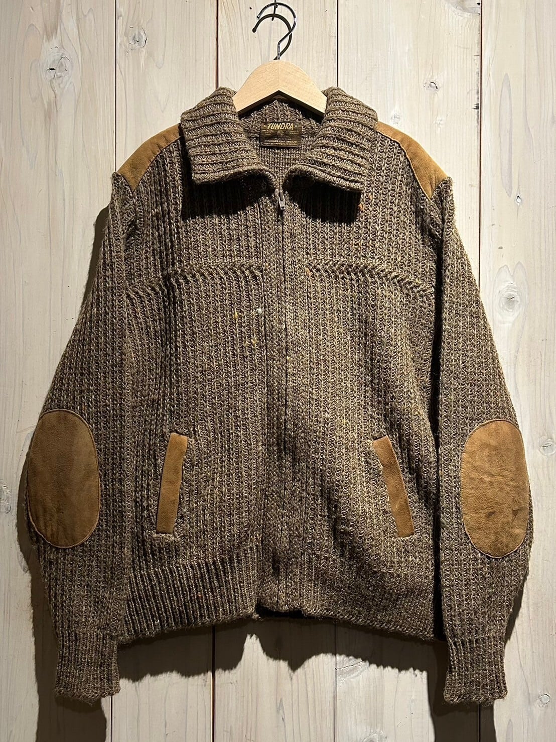 代名詞の3Dニットをはじめとし、市場でも著しい高騰を見せる"ツンドラ"。今回ご紹介させていただくのは、柔らかなブラウンカラーのニットボディの肩やポケット口、エルボーに滑らかなスエードレザーを切り替えたニットジャケット。