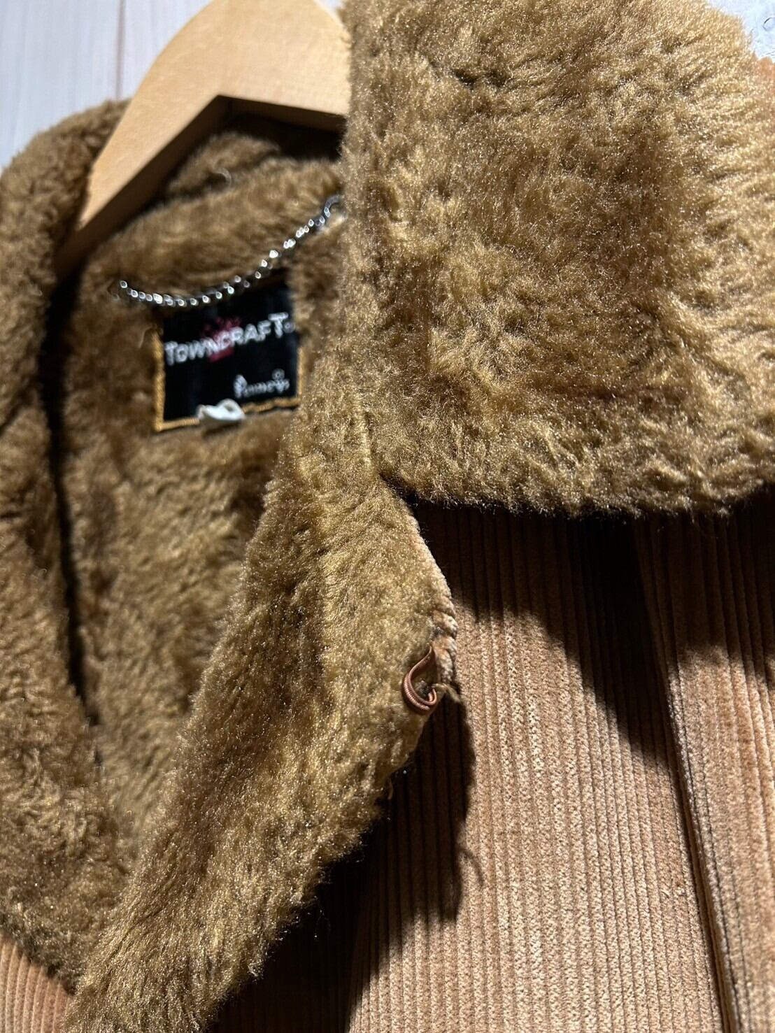 落ち着きのあるベージュカラーのコーデュロイ生地をボディに使用し、モッフモフのボアを掛け合わせた70's ヴィンテージのジャケット。