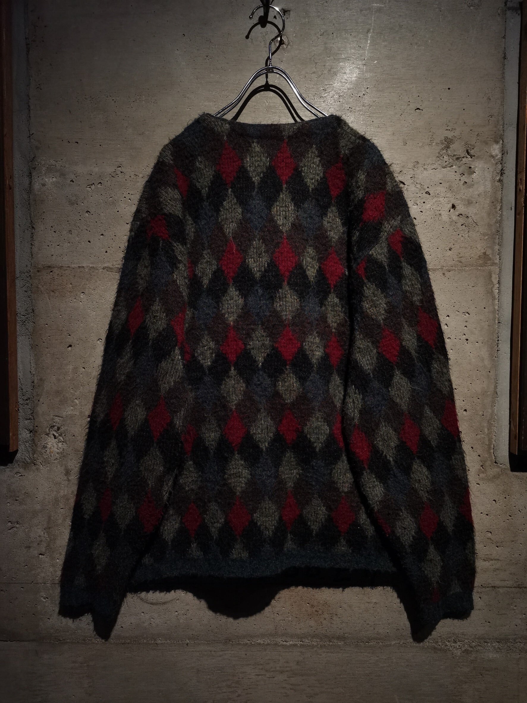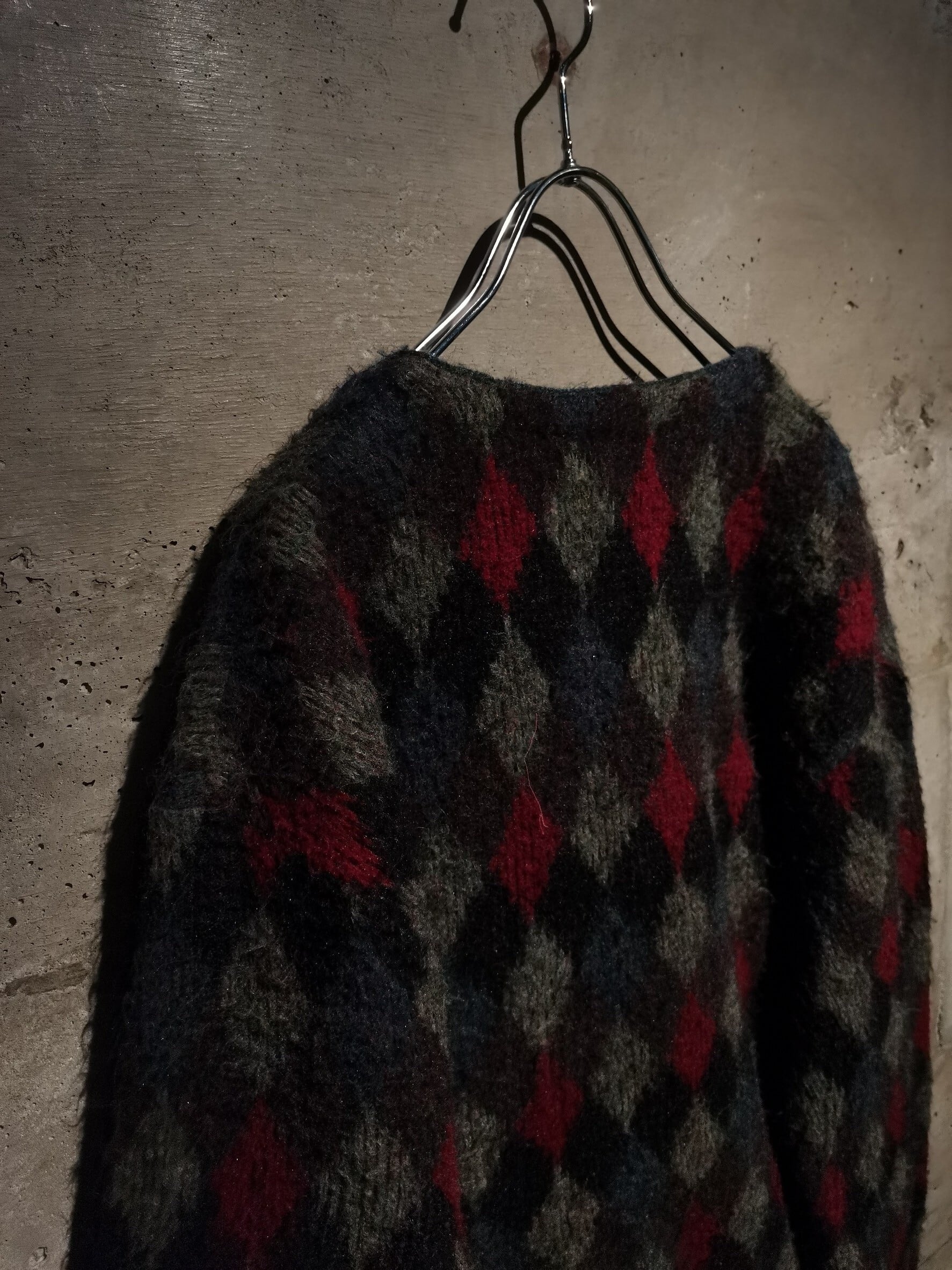 ボディはモヘアライクに仕上げられた、アクリル100%ニット生地を採用。フワッと柔らかな毛足の質感に、アーガイルの掛け合わせ。このヴィンテージ特有の表情にはやはり唆られますね。
