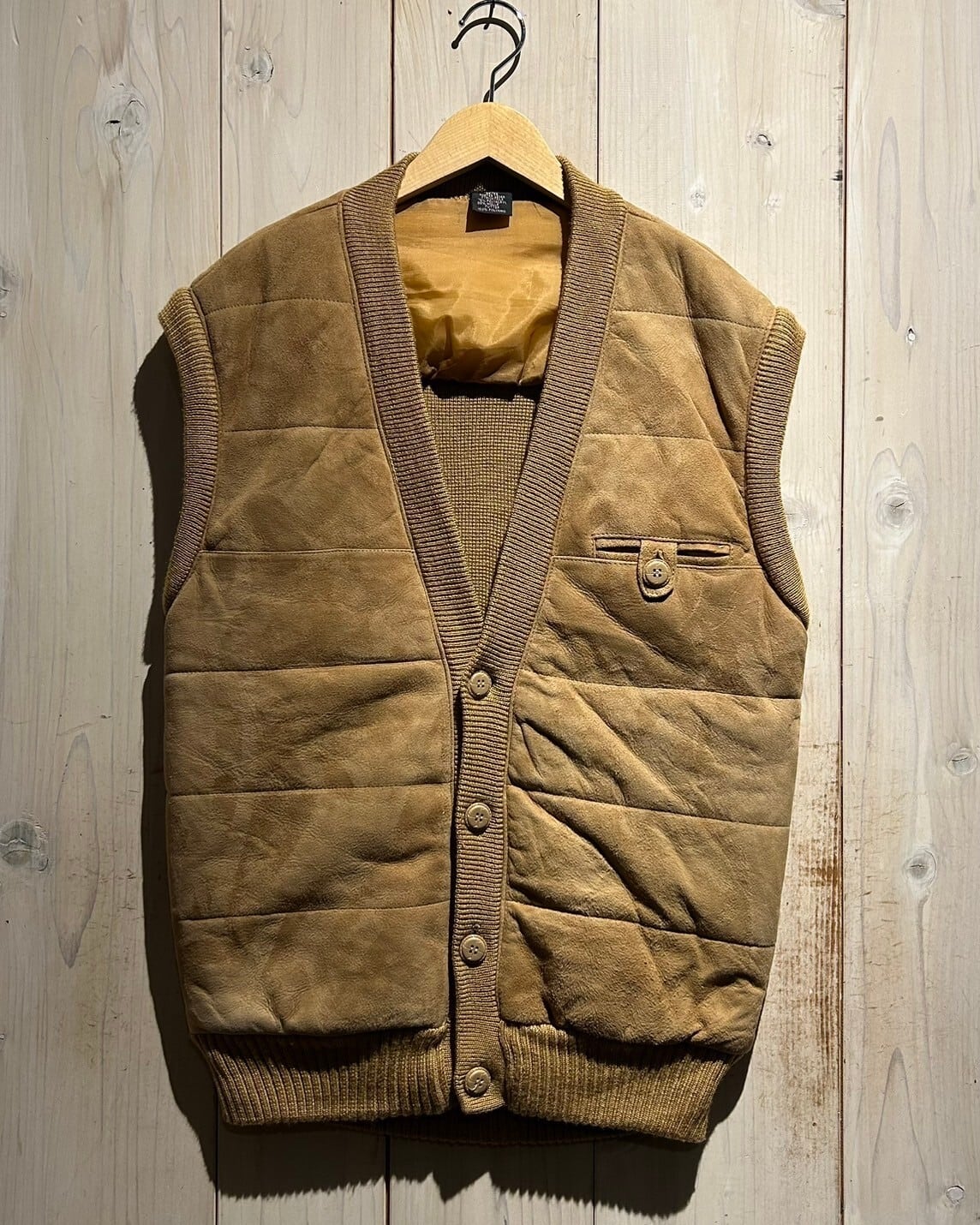 全体的にゆったりとしたルーズなサイジング。今時期はインナーとしてジャケットの下に差し込んだり、アームホールが広めなことを活かし、コートなどの上にベストとして着ても面白いスタイルになるかと。