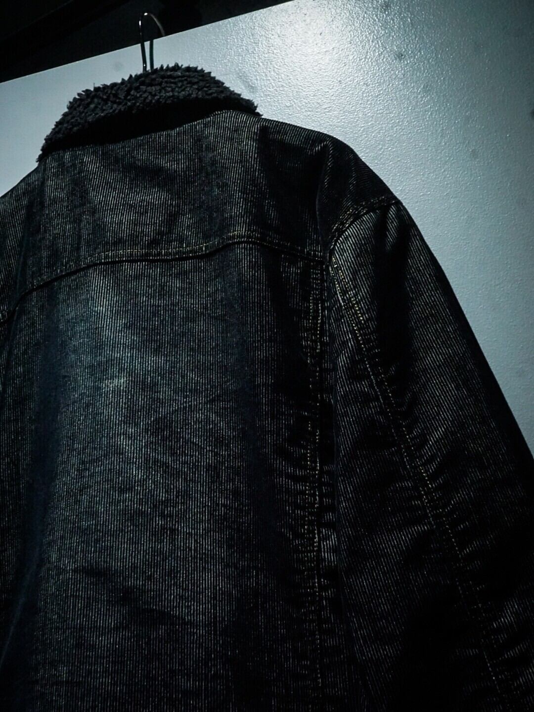 特有の光沢感を持ったブラックのコーデュロイ生地をボディに採用。両胸にはフラップポケット、両サイドにはスラッシュポケットを配したジャケット。