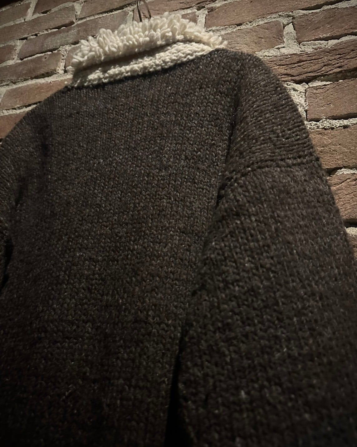 身幅を広く取ったルーズなサイジングで、上質なニット素材を用いたことによる保温力も素晴らしい。レイヤードも楽々可能で、スウェットやフーディーなど厚手のアイテムでもインナーに挟み込めちゃいます。