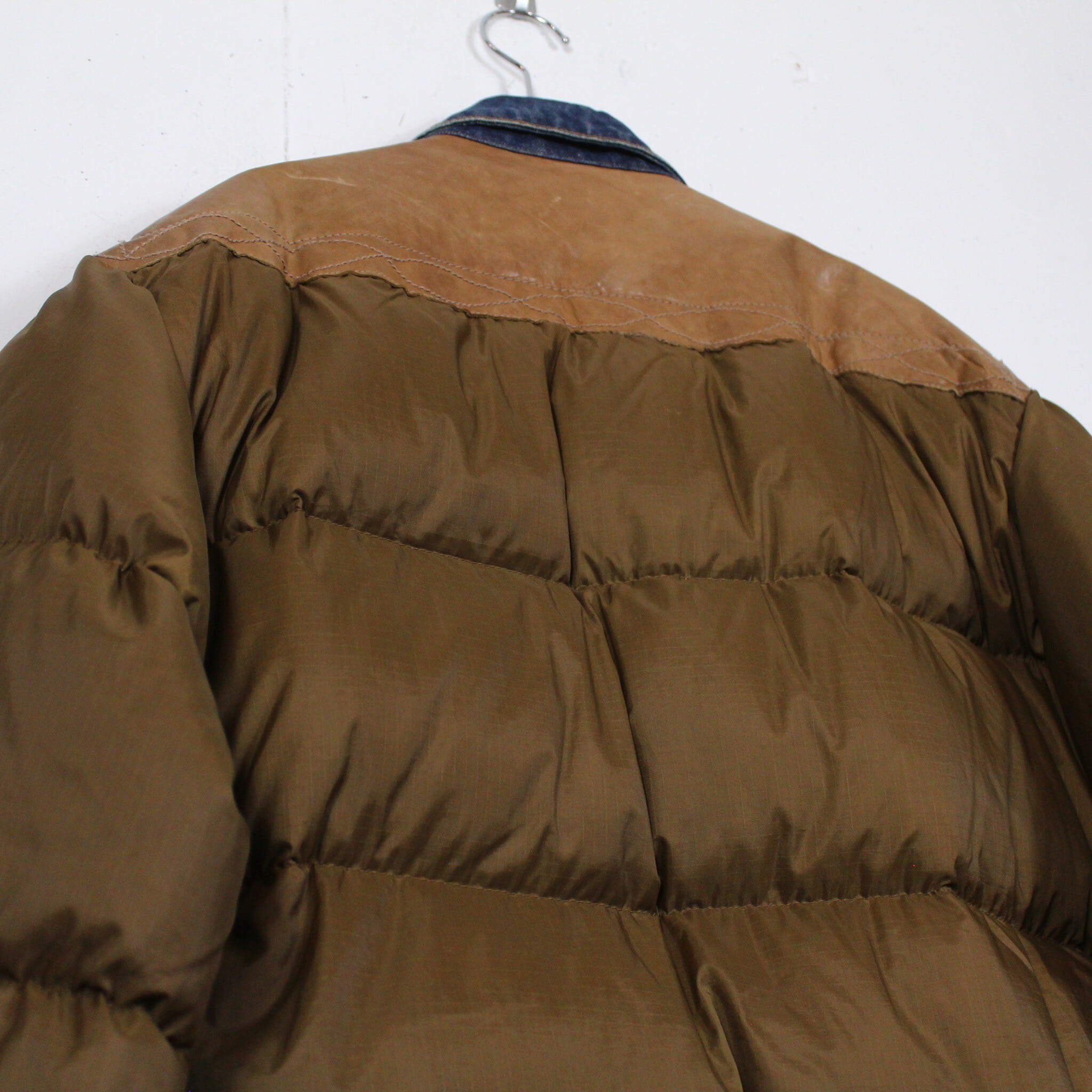 マスタードカラーのボディをベースに、トラッカージャケットを掛け合わせた稀有なダウンジャケット。