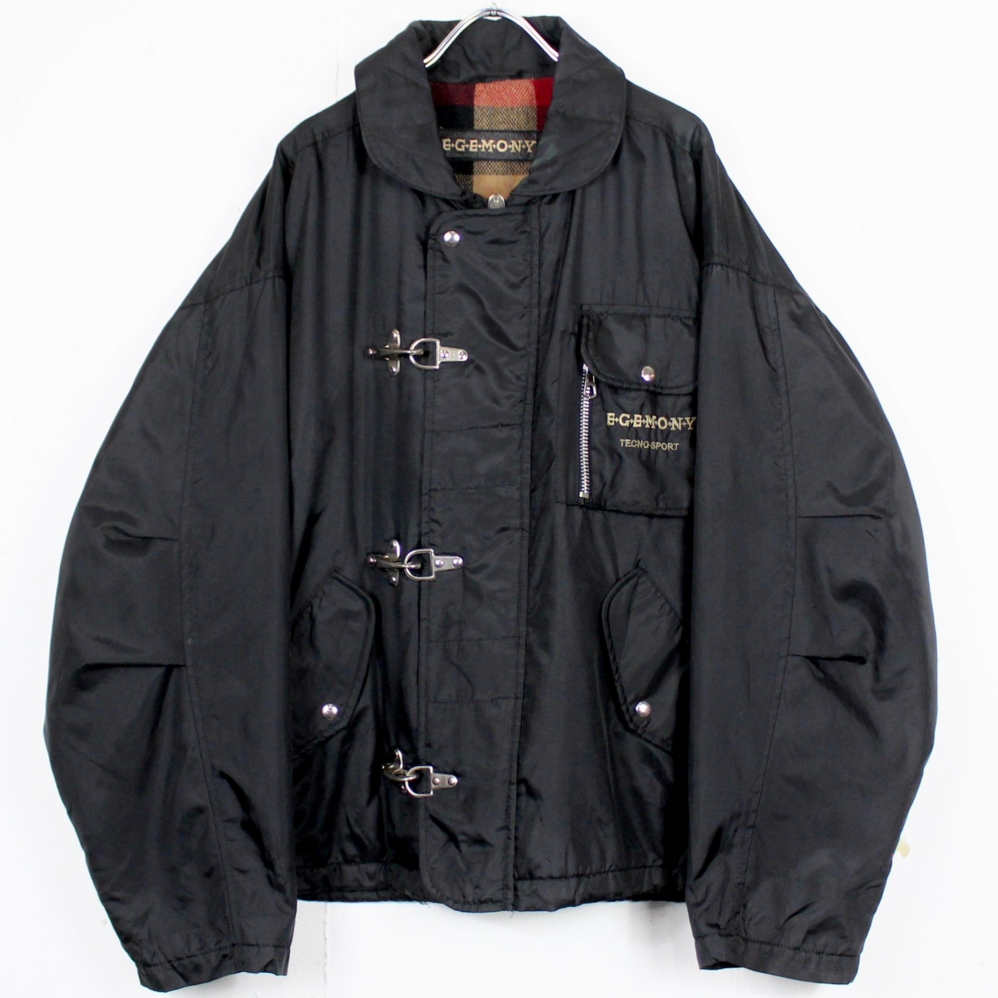 ハリのあるポリエステルを用いたボディに、名だたるブランドがサンプリングするファイアーマンバックルのギミックを載せたジャケット。
