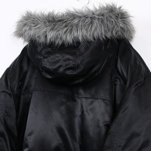 左アームにはユーティリティポケット、そしてボディの随所にはブランドネームを組み込んだワッペン。取り外し可能なモッフモフのファー付きのフードにはドローコードを施し、シルエットに変化を加えての着用もお楽しみいただけます。