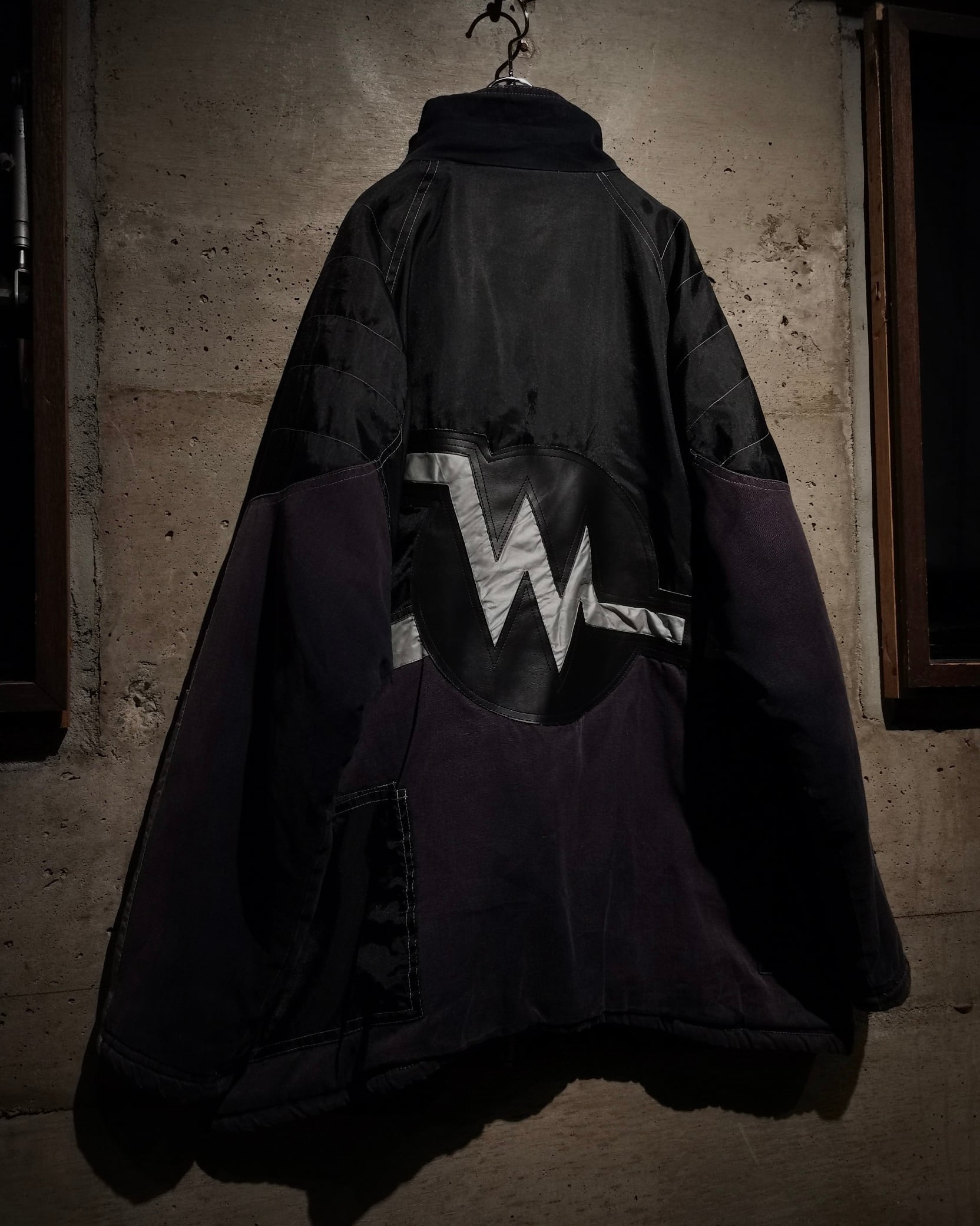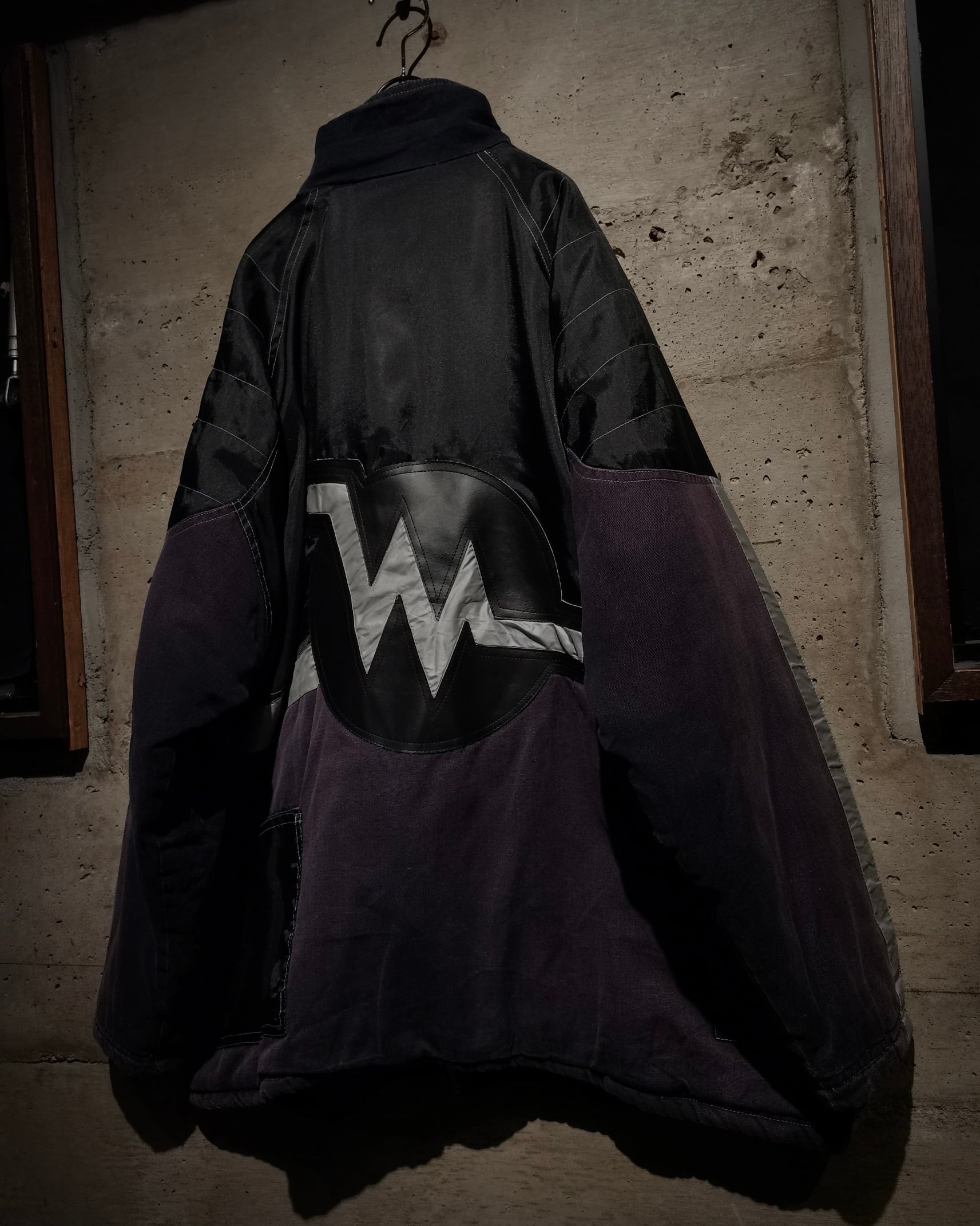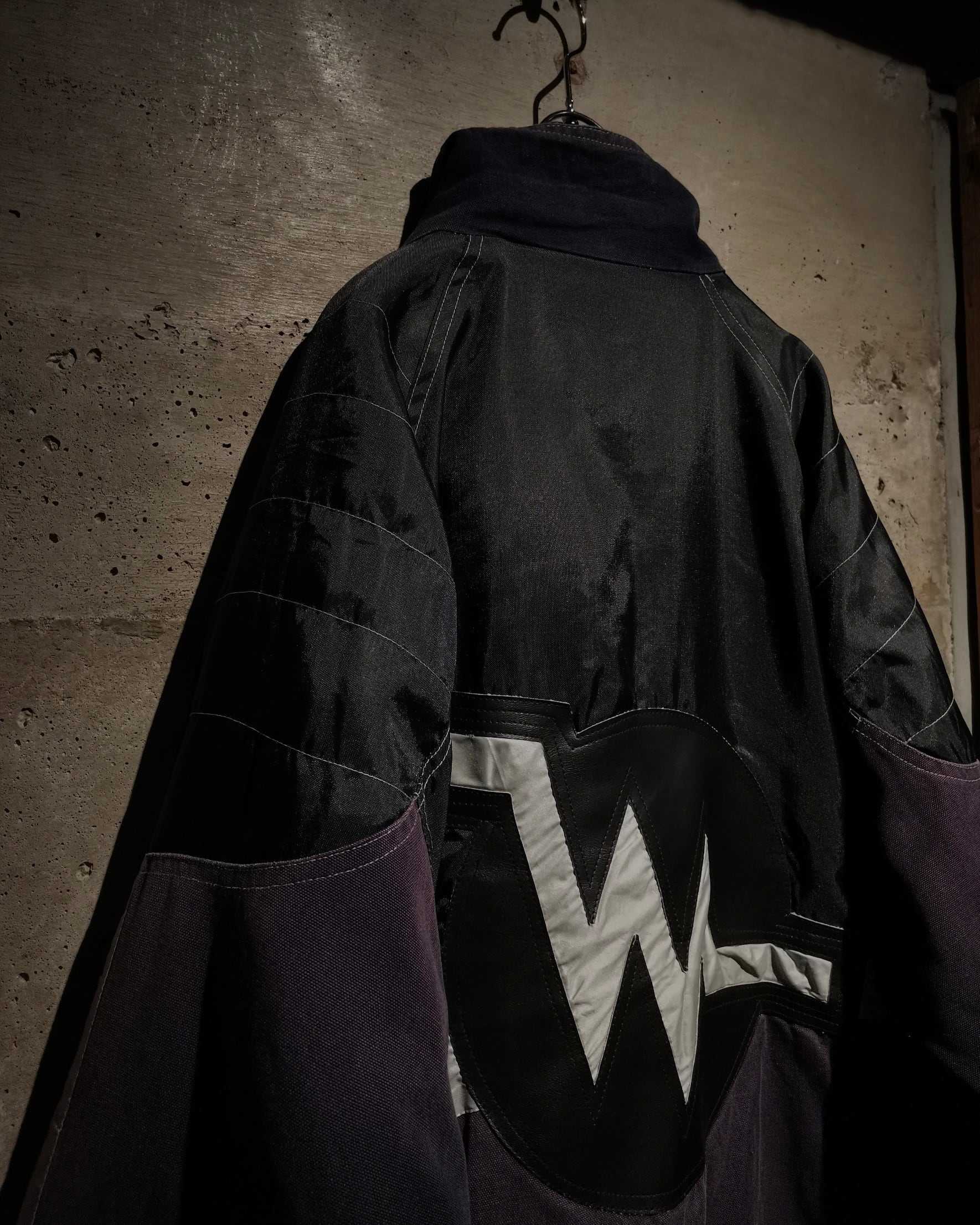 ハリのあるブラックのナイロンと、フェード感の美しい紫のコットン地を切り替えたギアジャケット。