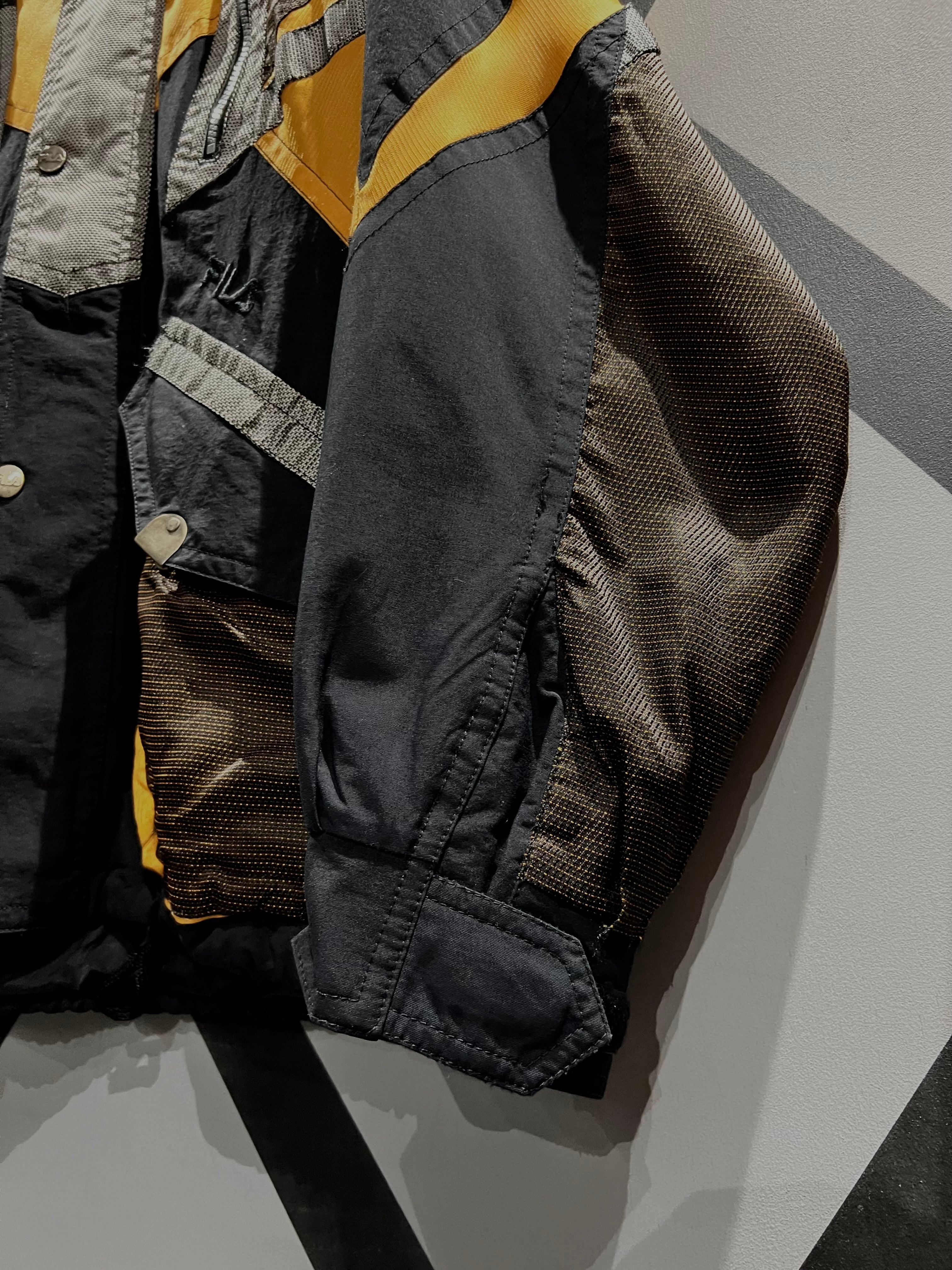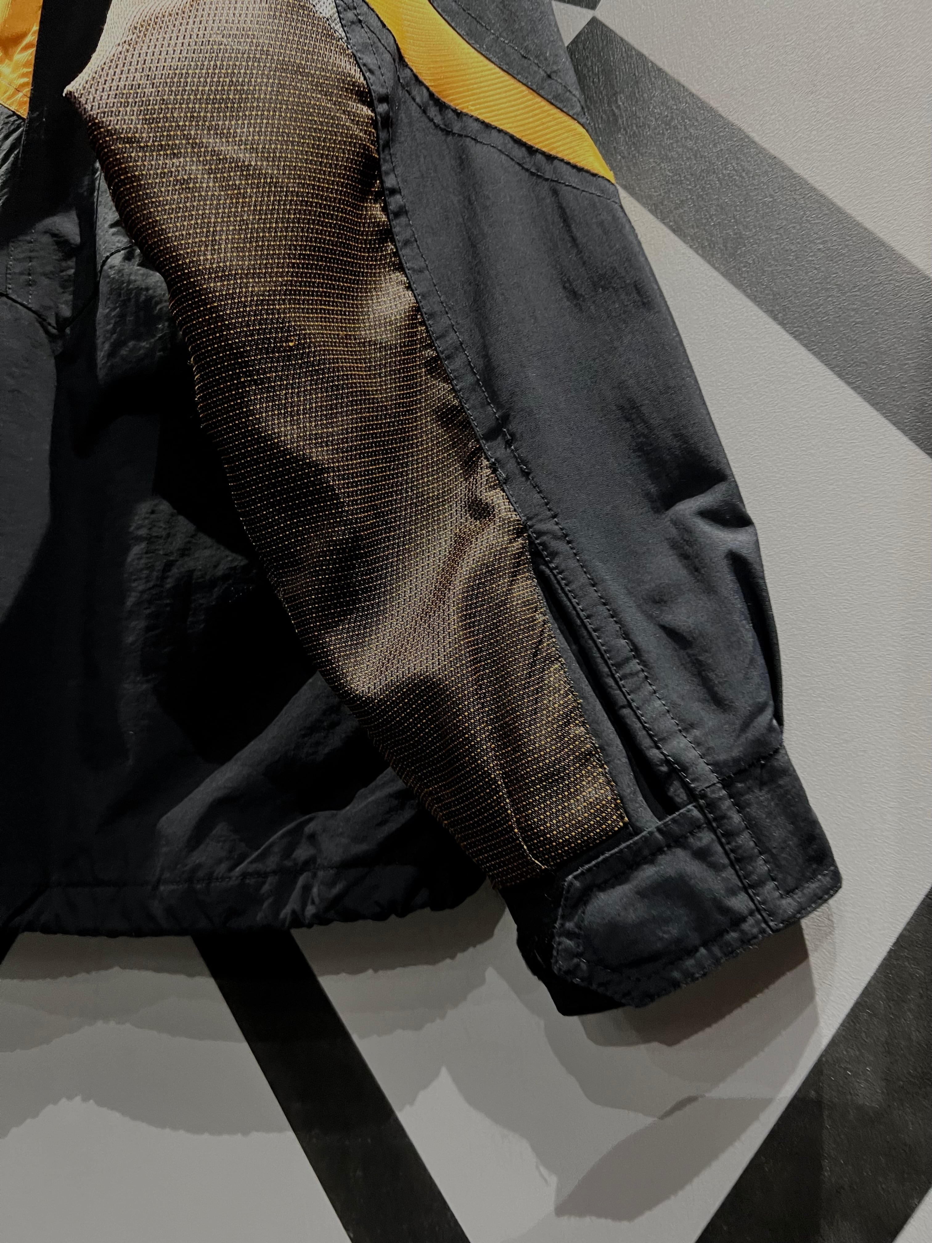 フロントにはジップポケット、フラップポケットをそれぞれ両サイドに装備。ジップ×スナップボタンの比翼仕立ての前立てに、袖口のベルクロなどギミックを盛りに盛り込み、機能性を引き上げると共に、高いデザイン性を演出したスペシャルな逸品。