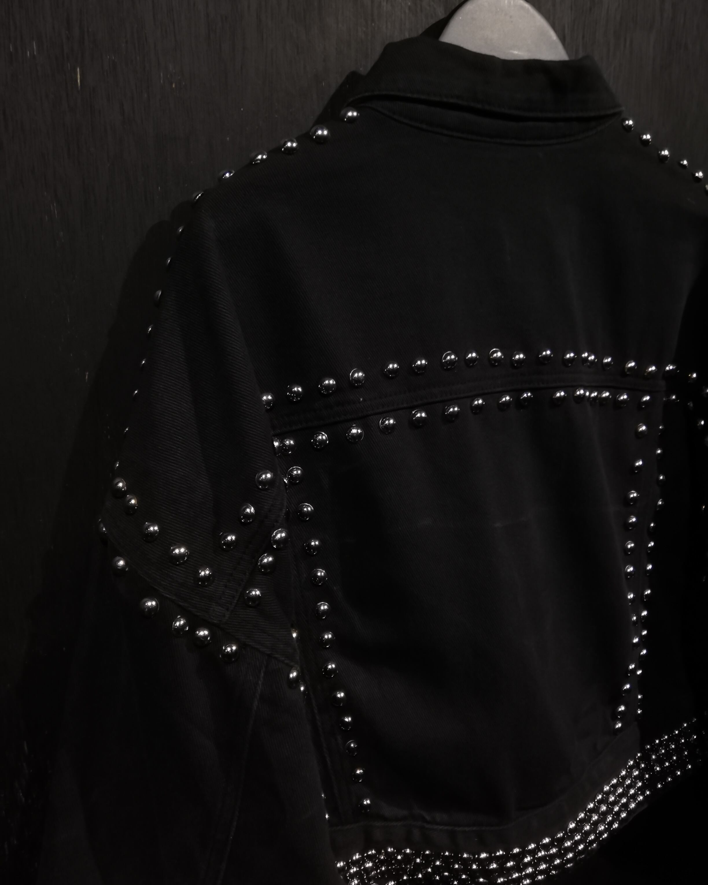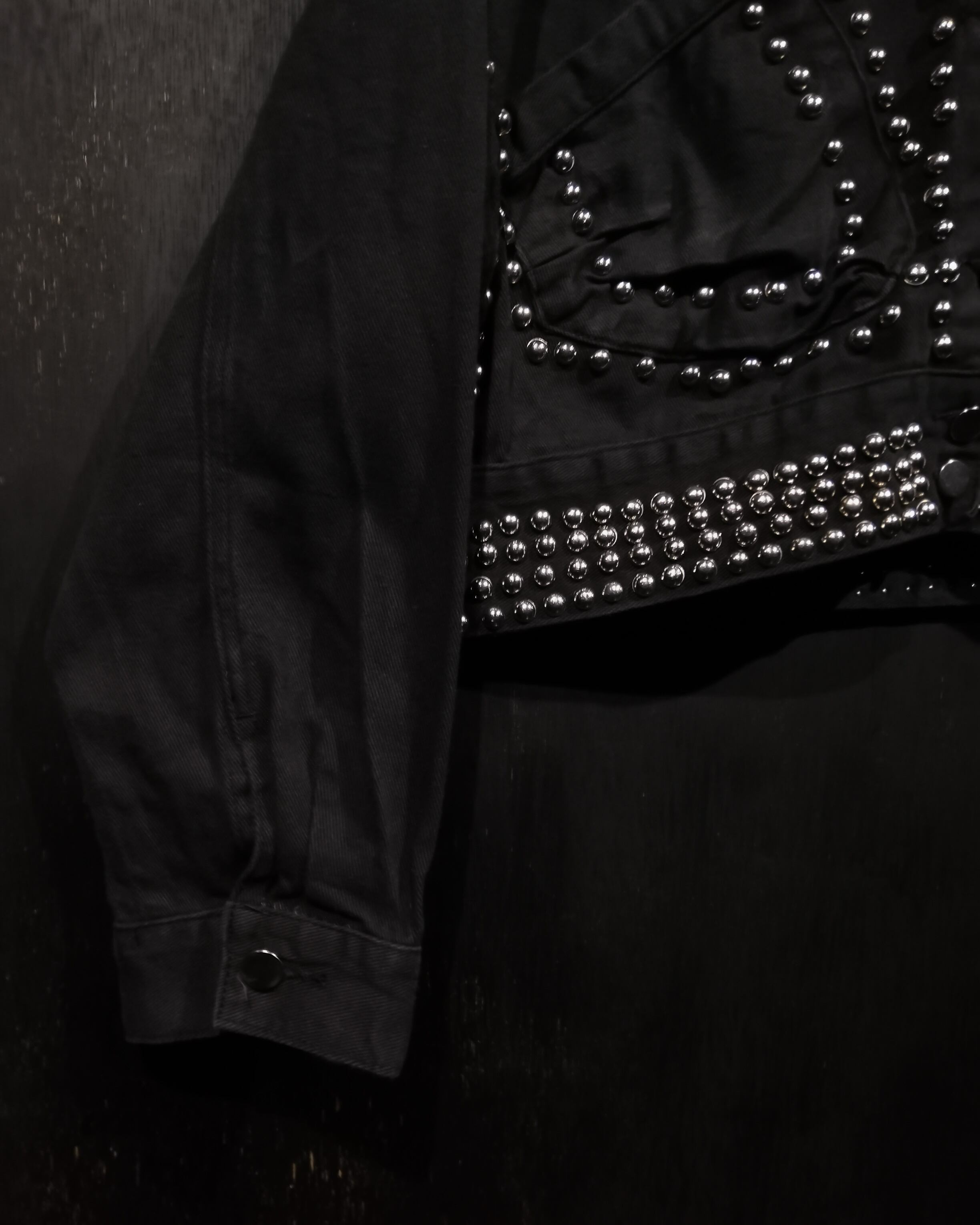 ヴィンテージでは稀少性の高いブラックデニムに、鋭く輝くスタッズを載せた稀有なデニムジャケット。