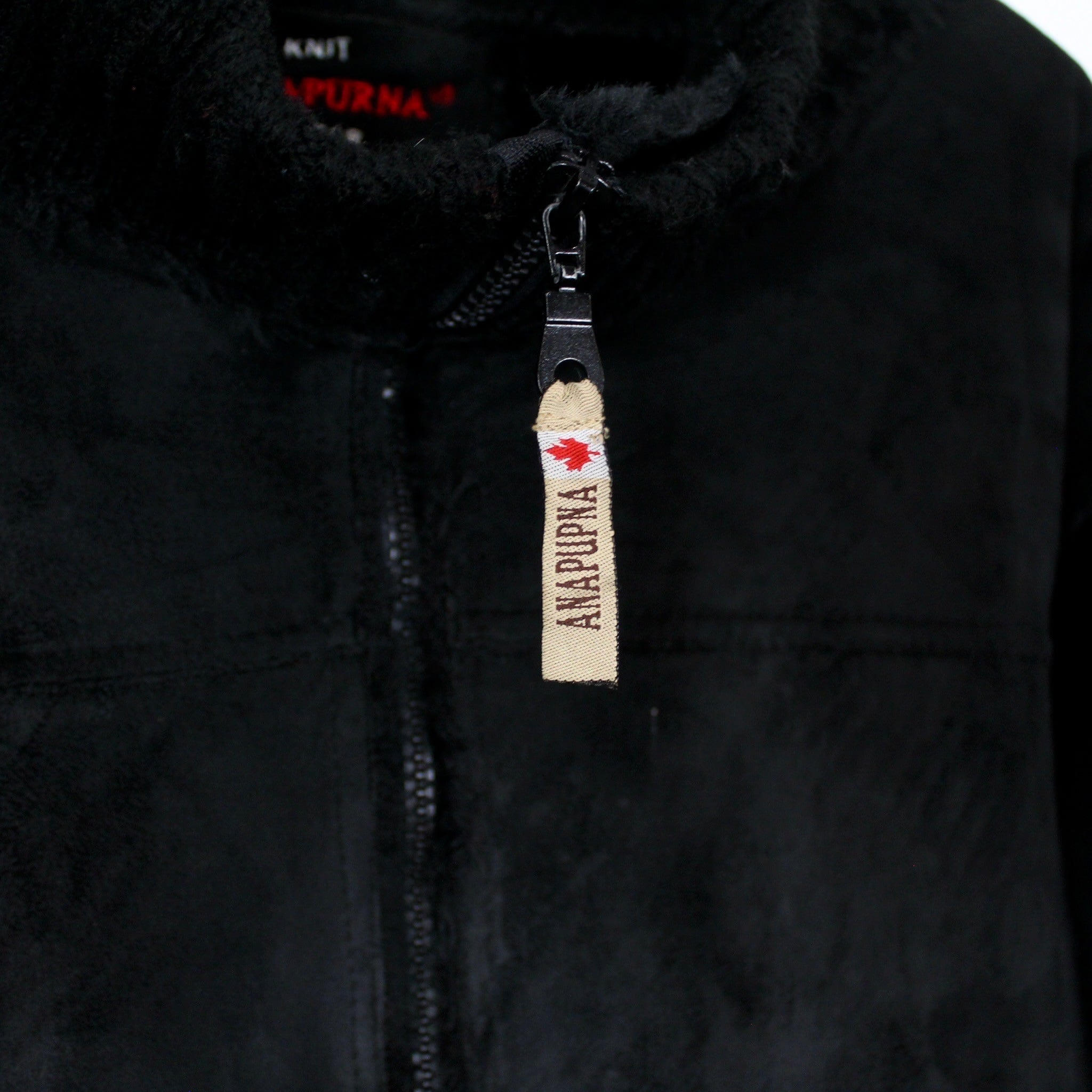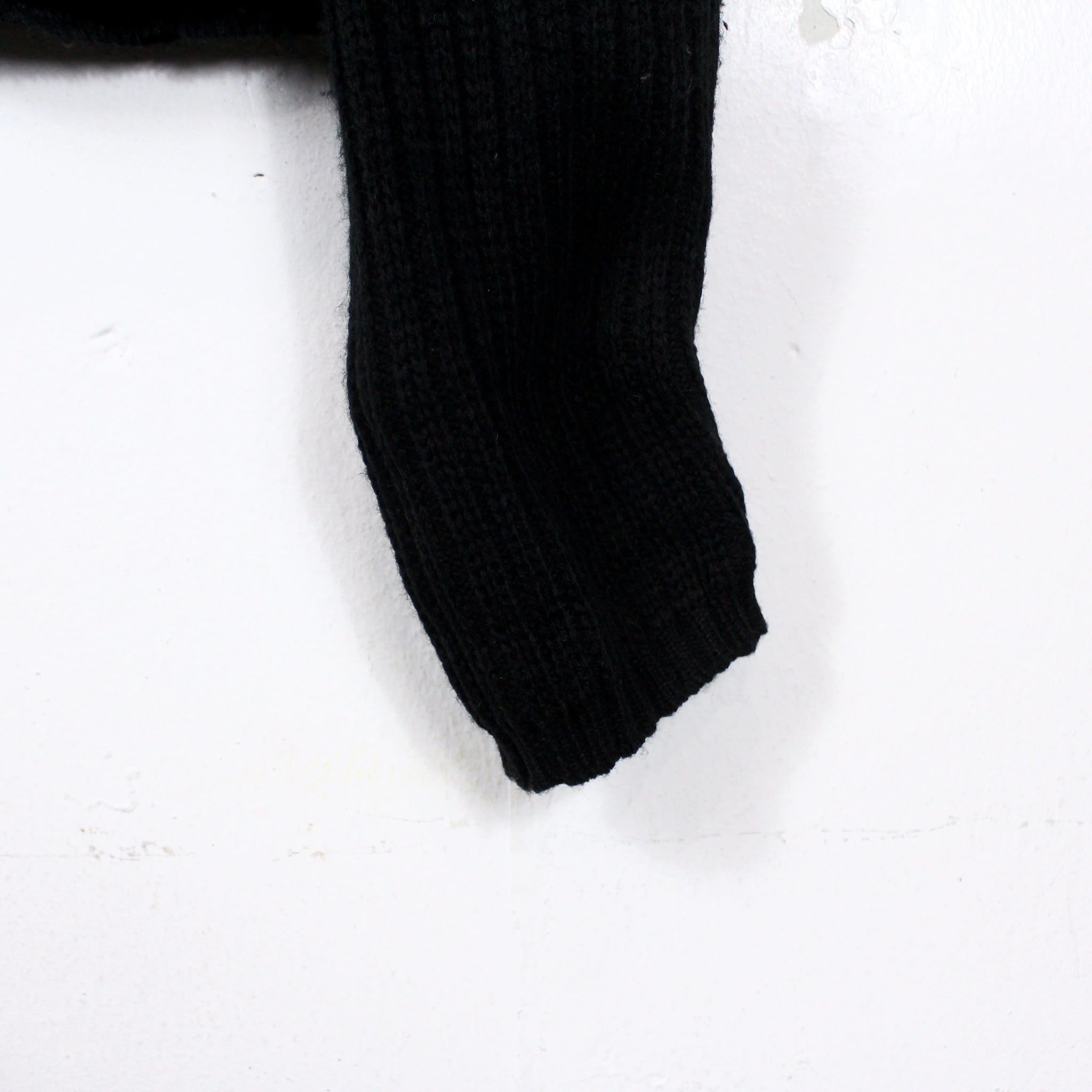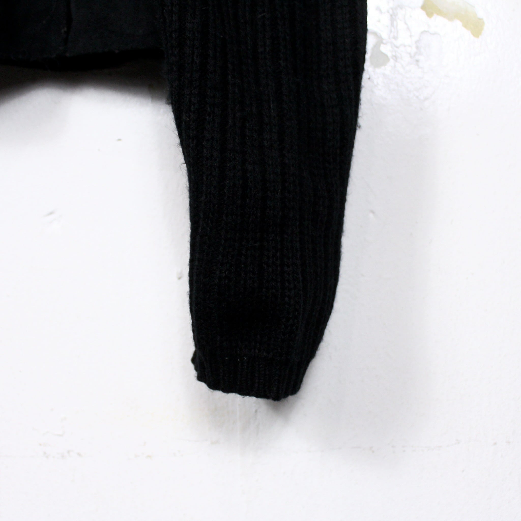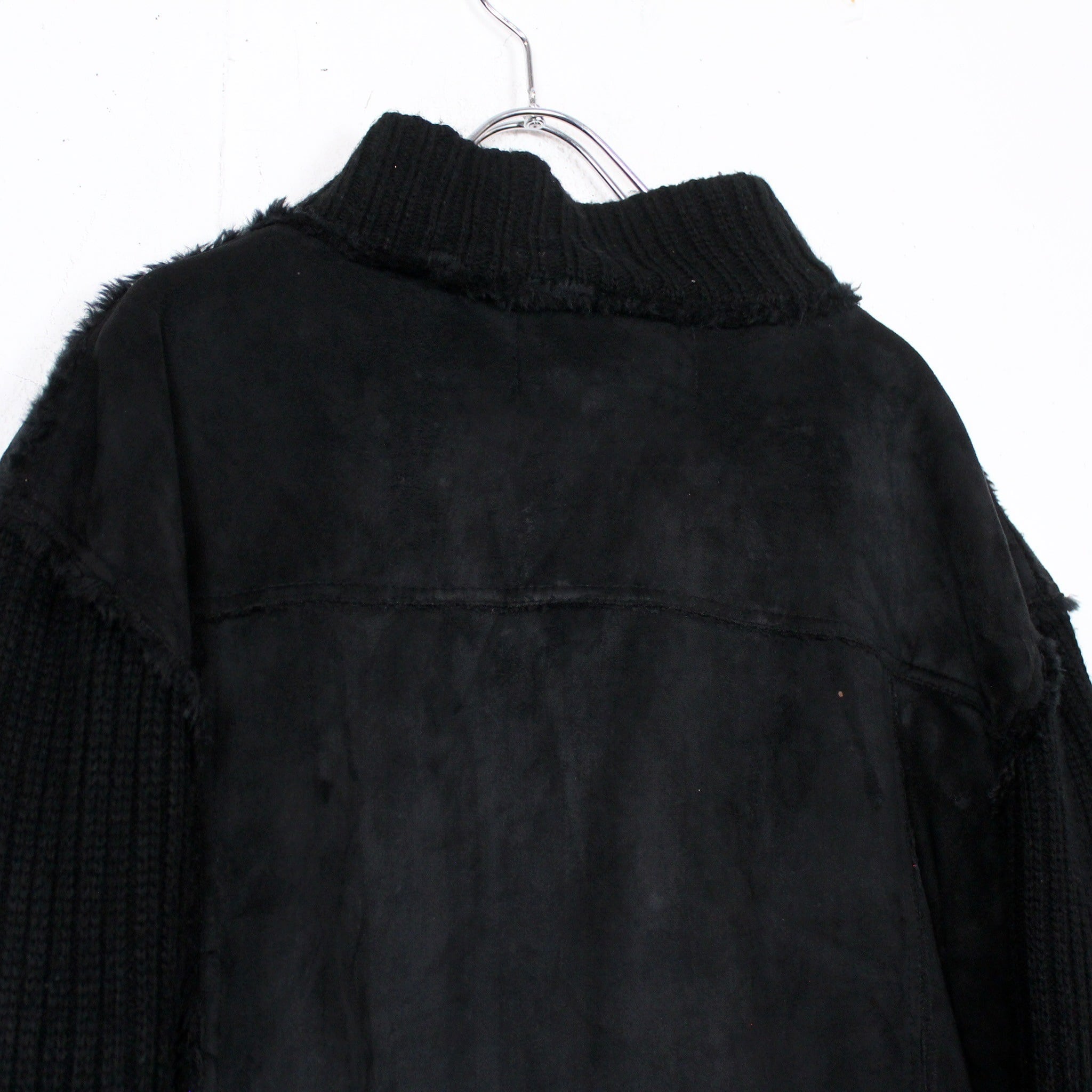 肉感のある上質なブラックのニットをベースに、フロントにフェイクムートンでの切り替えを施したドライバーズニット。