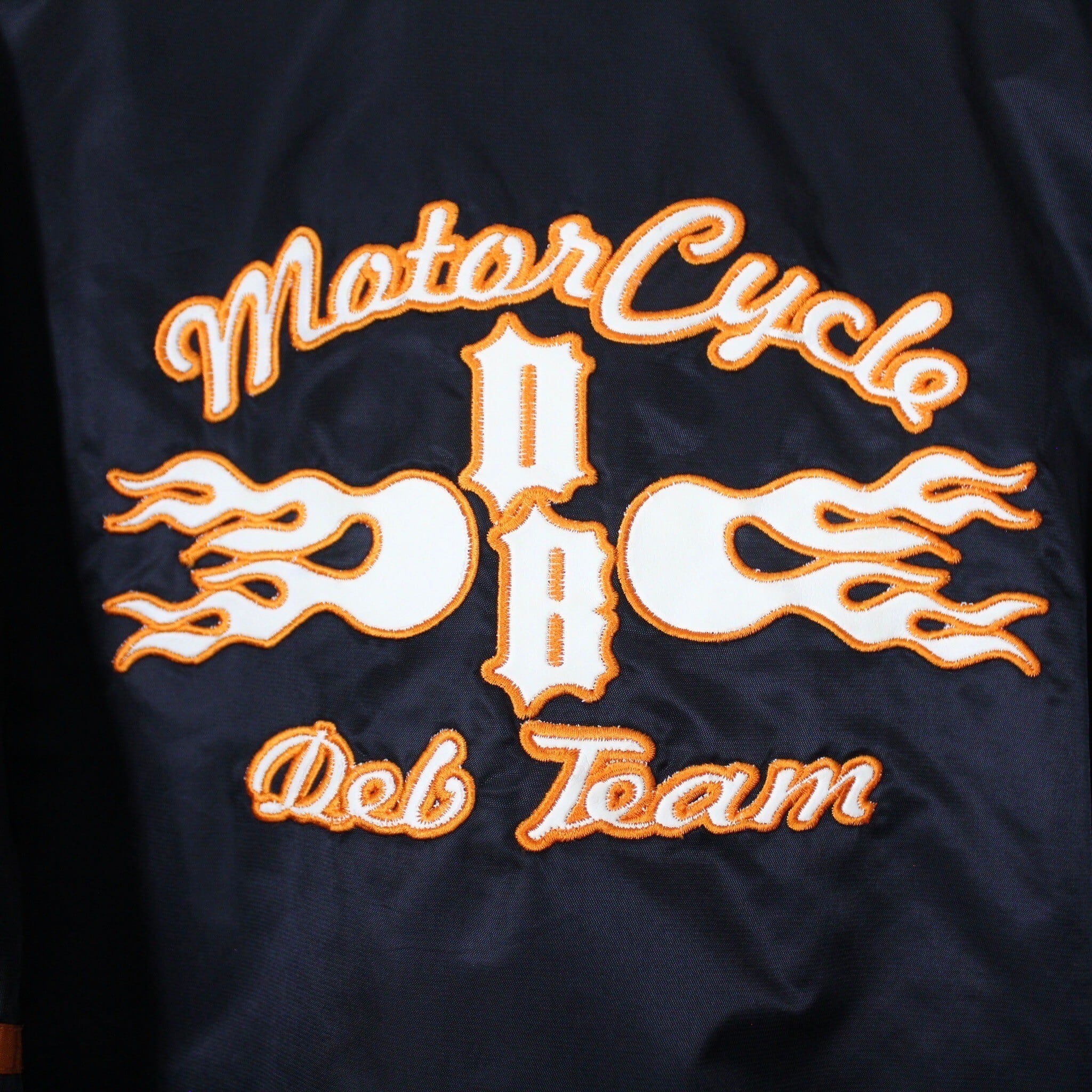 左胸にはブランドのロゴパッチ、背面にはレーシングらしいプリント、左袖にはDEB RACEの文字パッチを施したデザインを効かせつつ洗練された仕上がりに。
