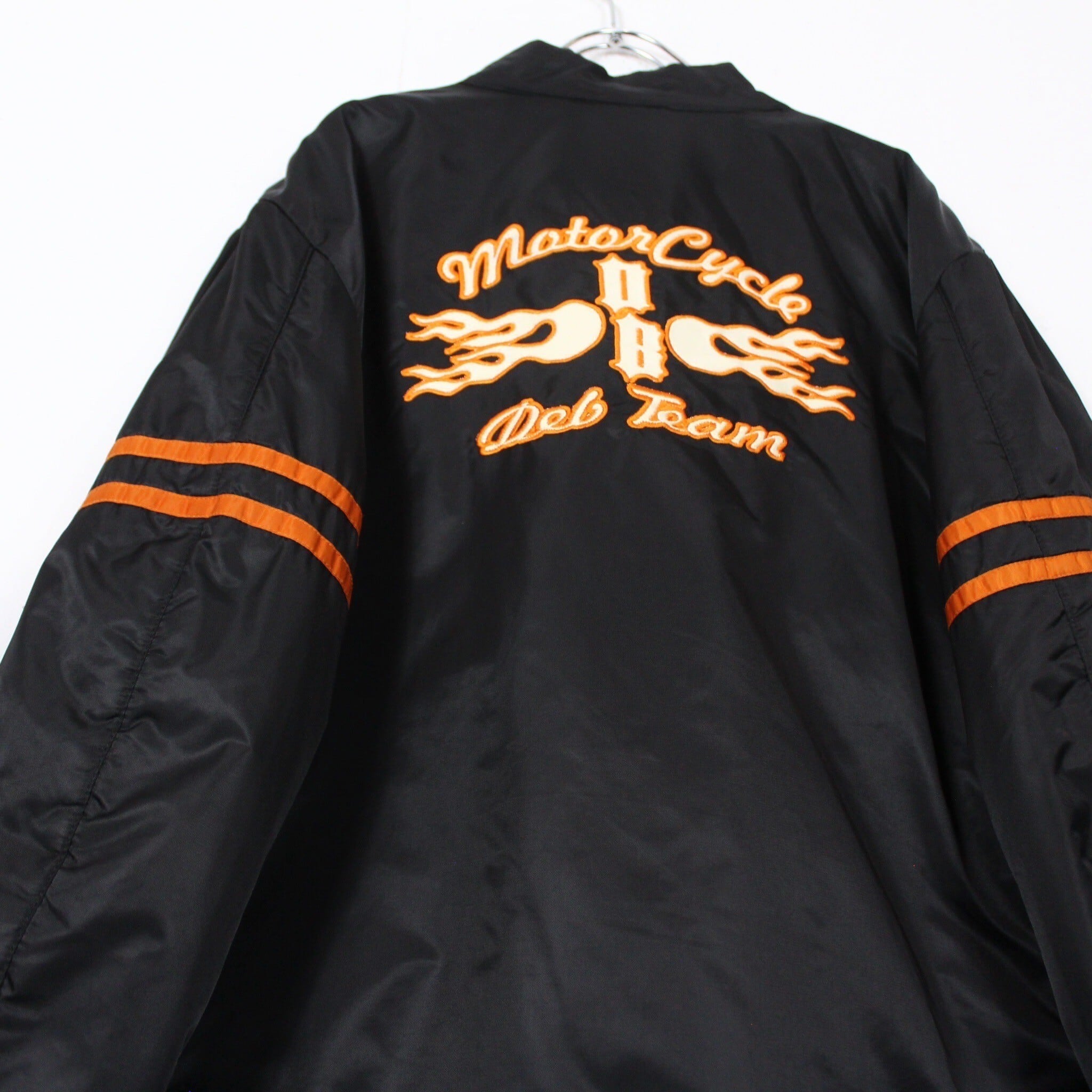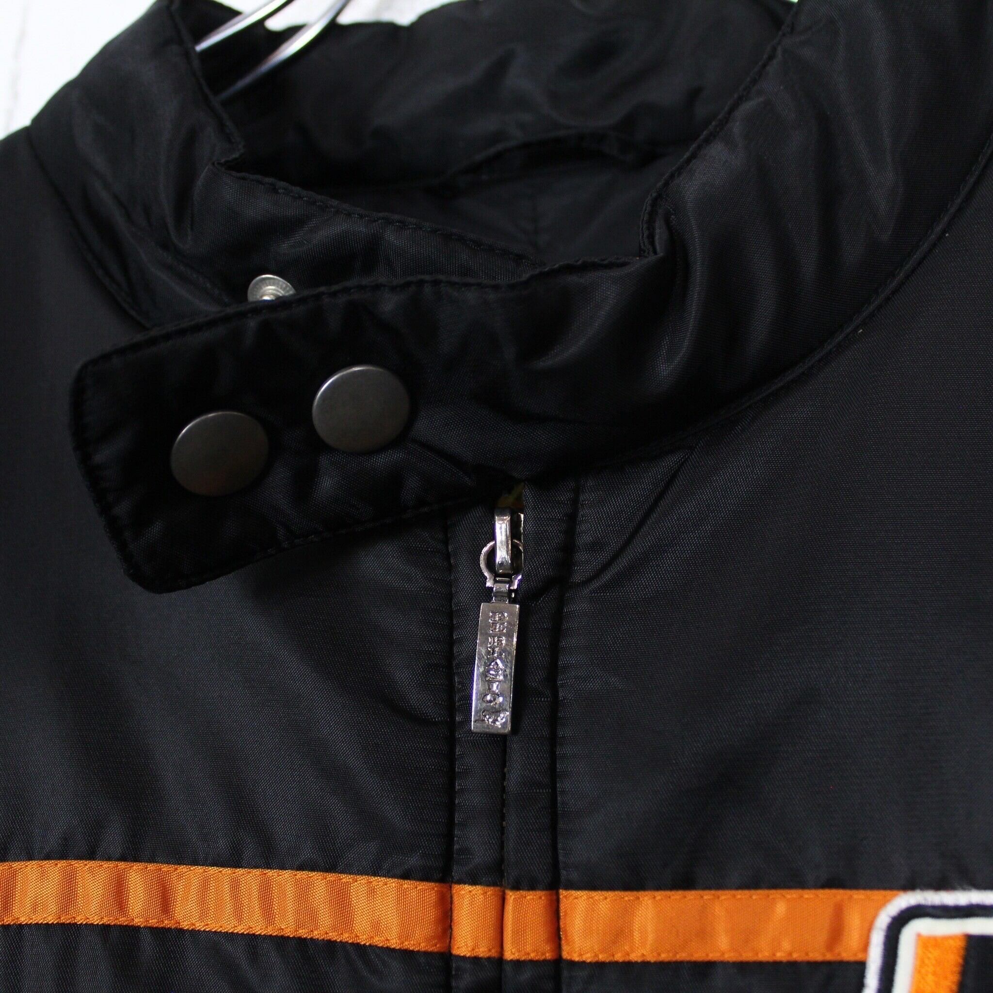 タフかつハリのあるナイロン素材をベースに、フロント、アームに鮮やかなオレンジのラインを走らせたレーシングジャケット。