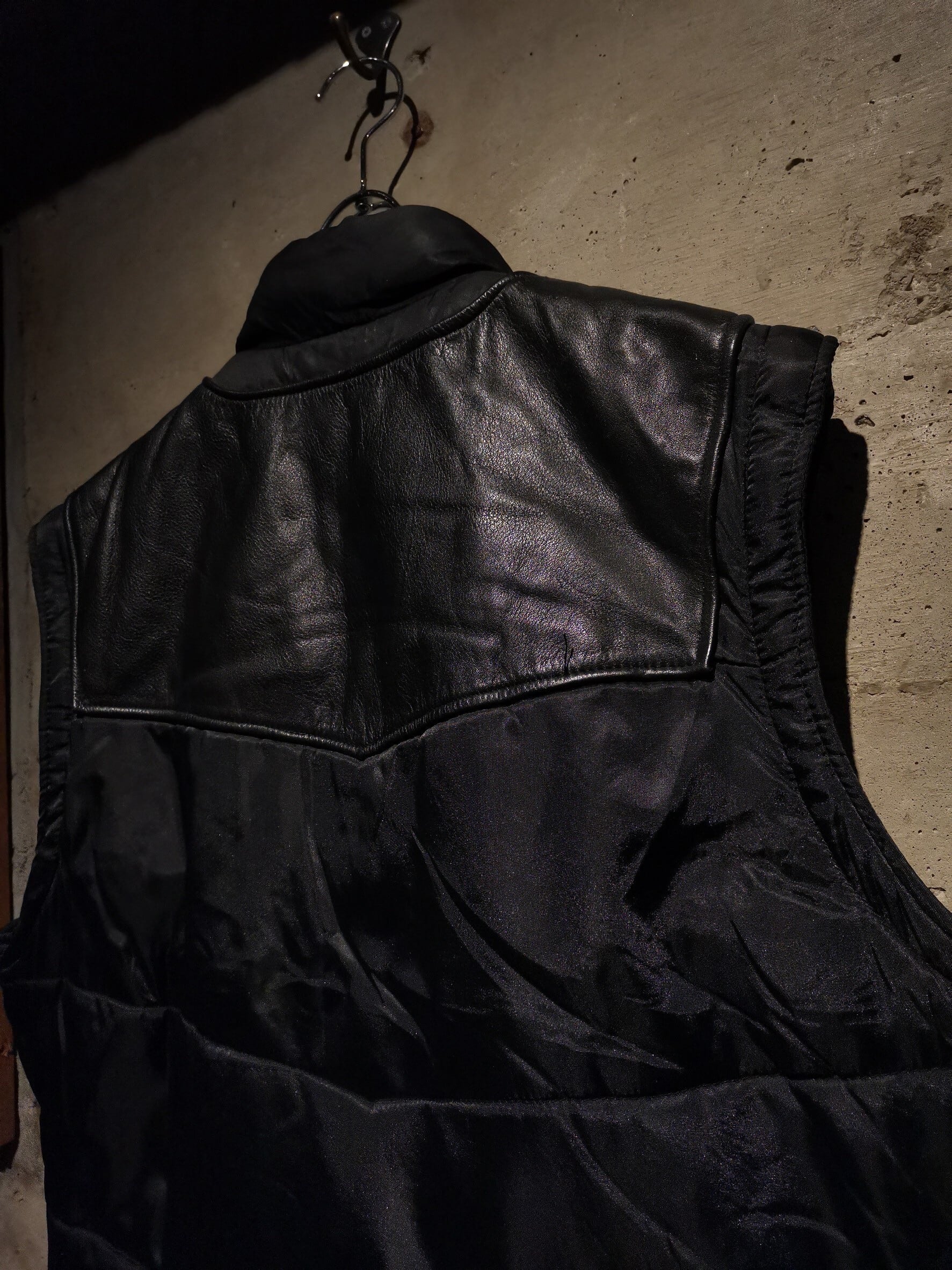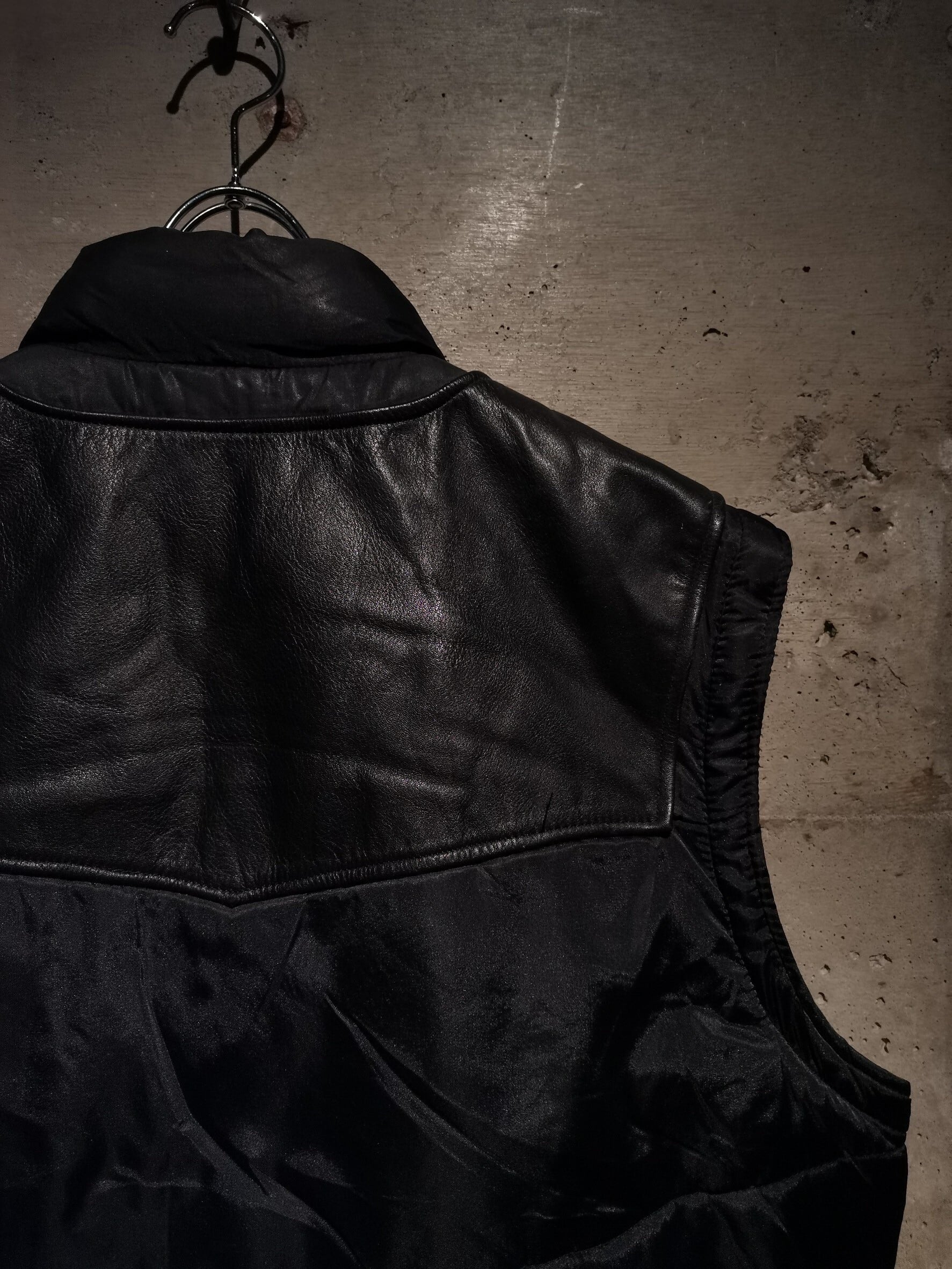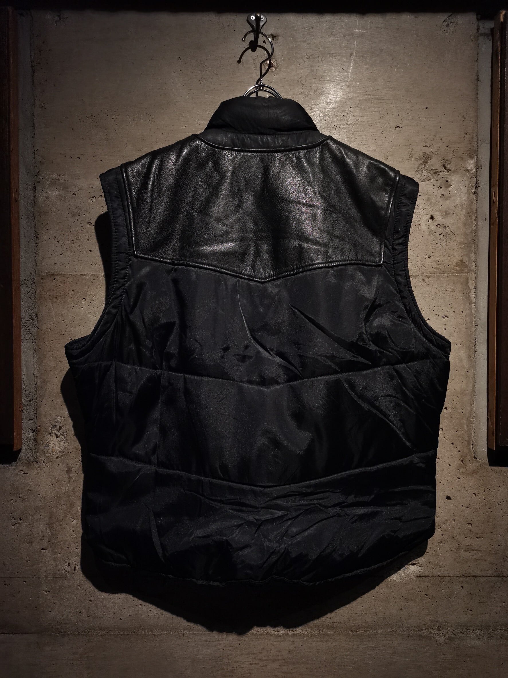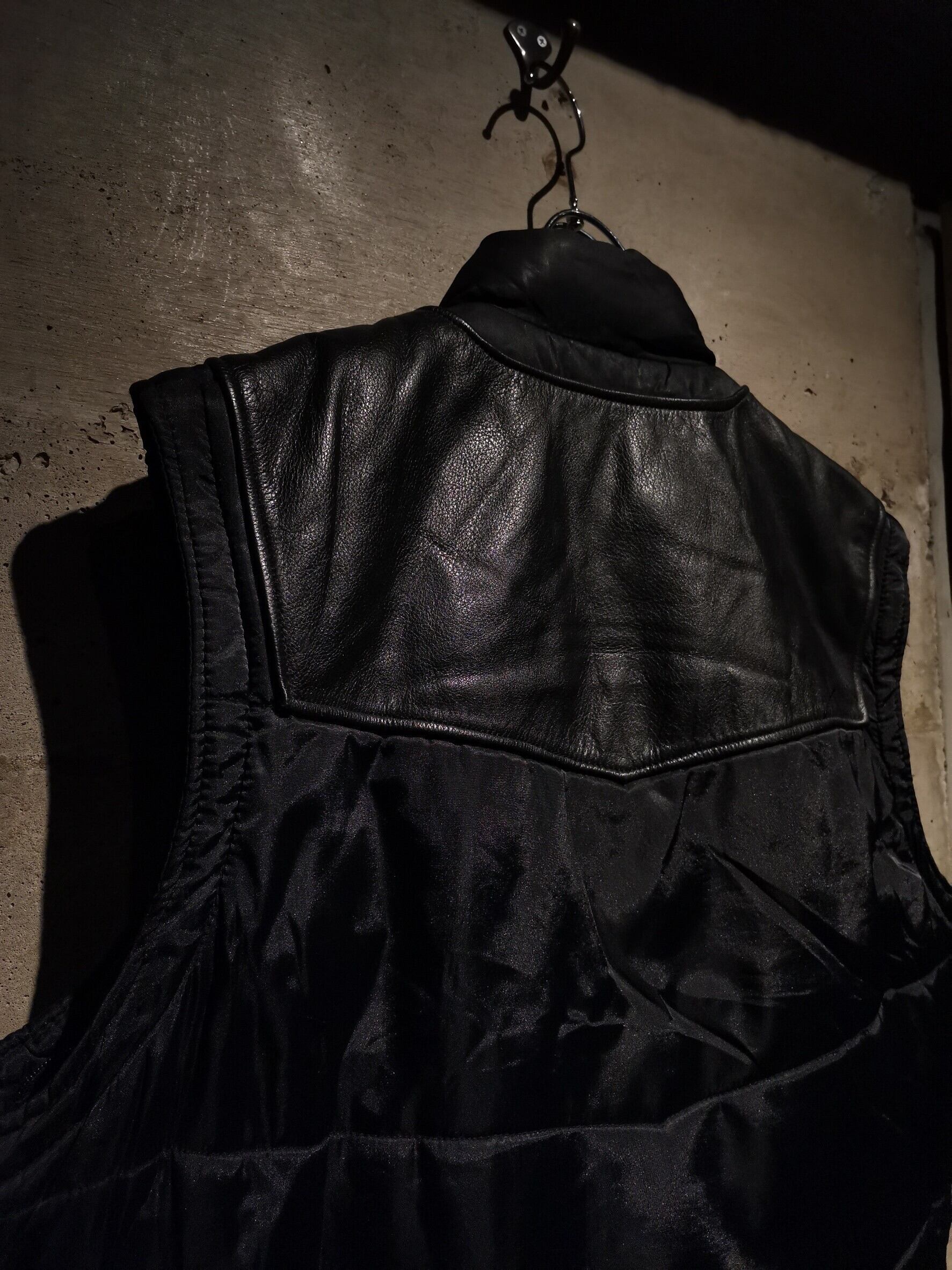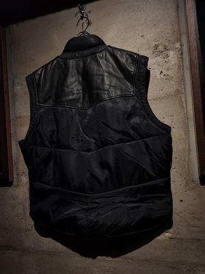 ダウンベストを筆頭にマルチな展開を見せるベストカテゴリーの1着ですが、前身頃から背面ヨークにはレザー、そこからナイロン生地を切り替えた稀有なパデット仕様のベスト。