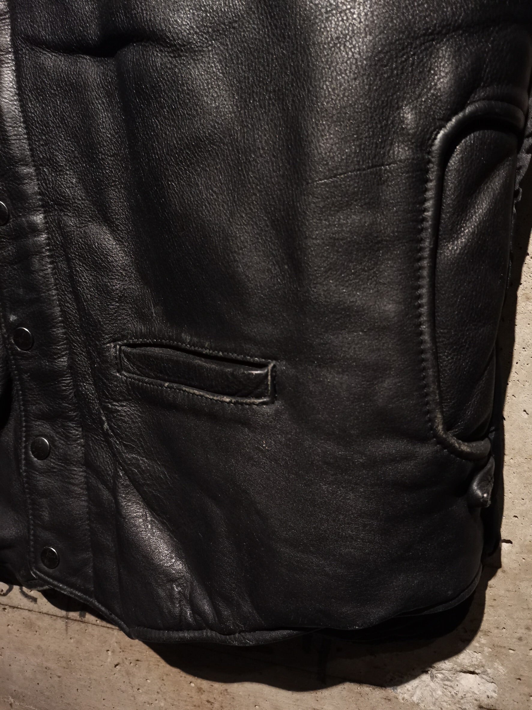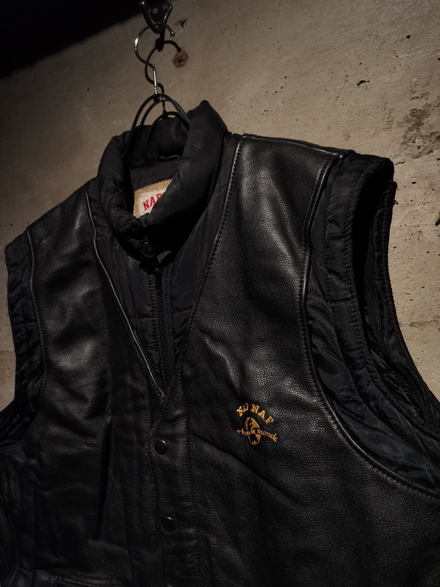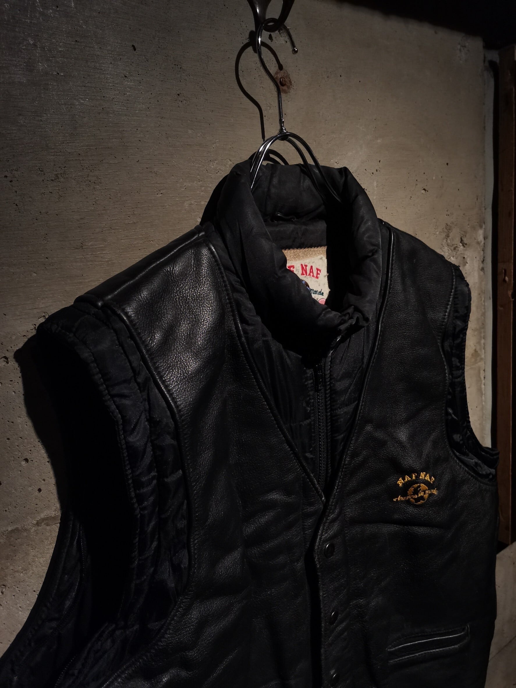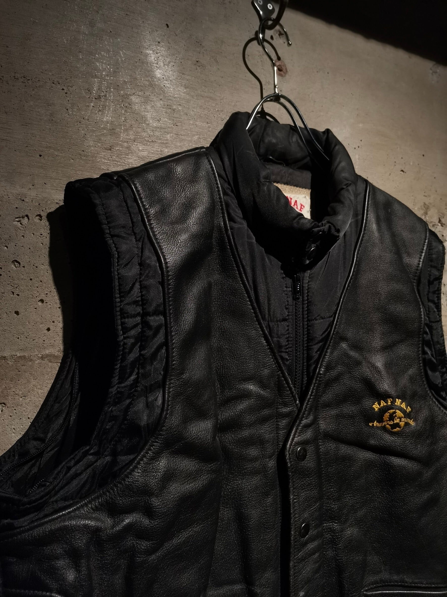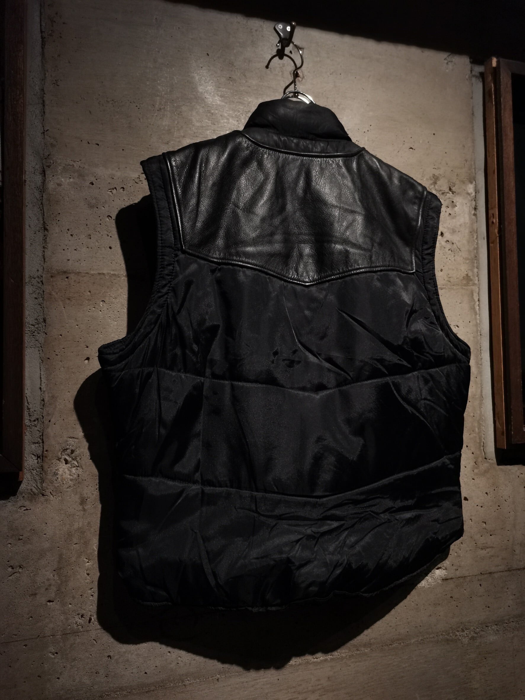 ダウンベストを筆頭にマルチな展開を見せるベストカテゴリーの1着ですが、前身頃から背面ヨークにはレザー、そこからナイロン生地を切り替えた稀有なパデット仕様のベスト。