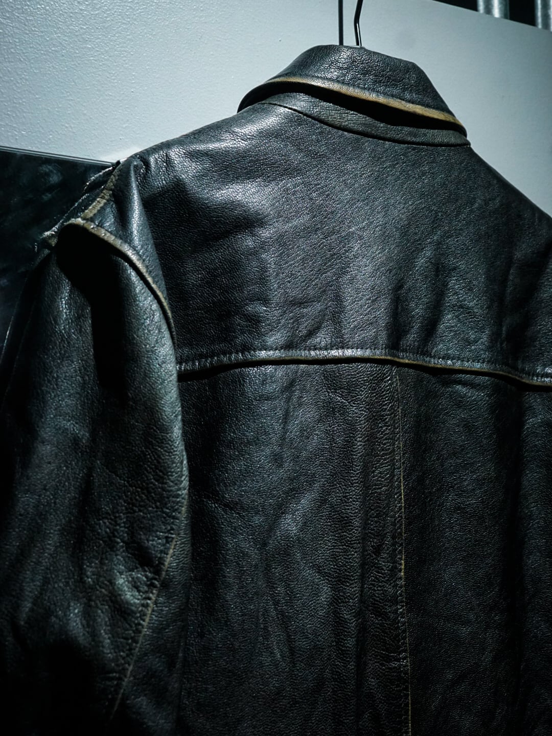 経年によるレザー特有のエイジングが味わい深く艶やかな光沢が雰囲気を醸し出しており、USEDならではの良さをこの1着で存分にお楽しみいただけます。