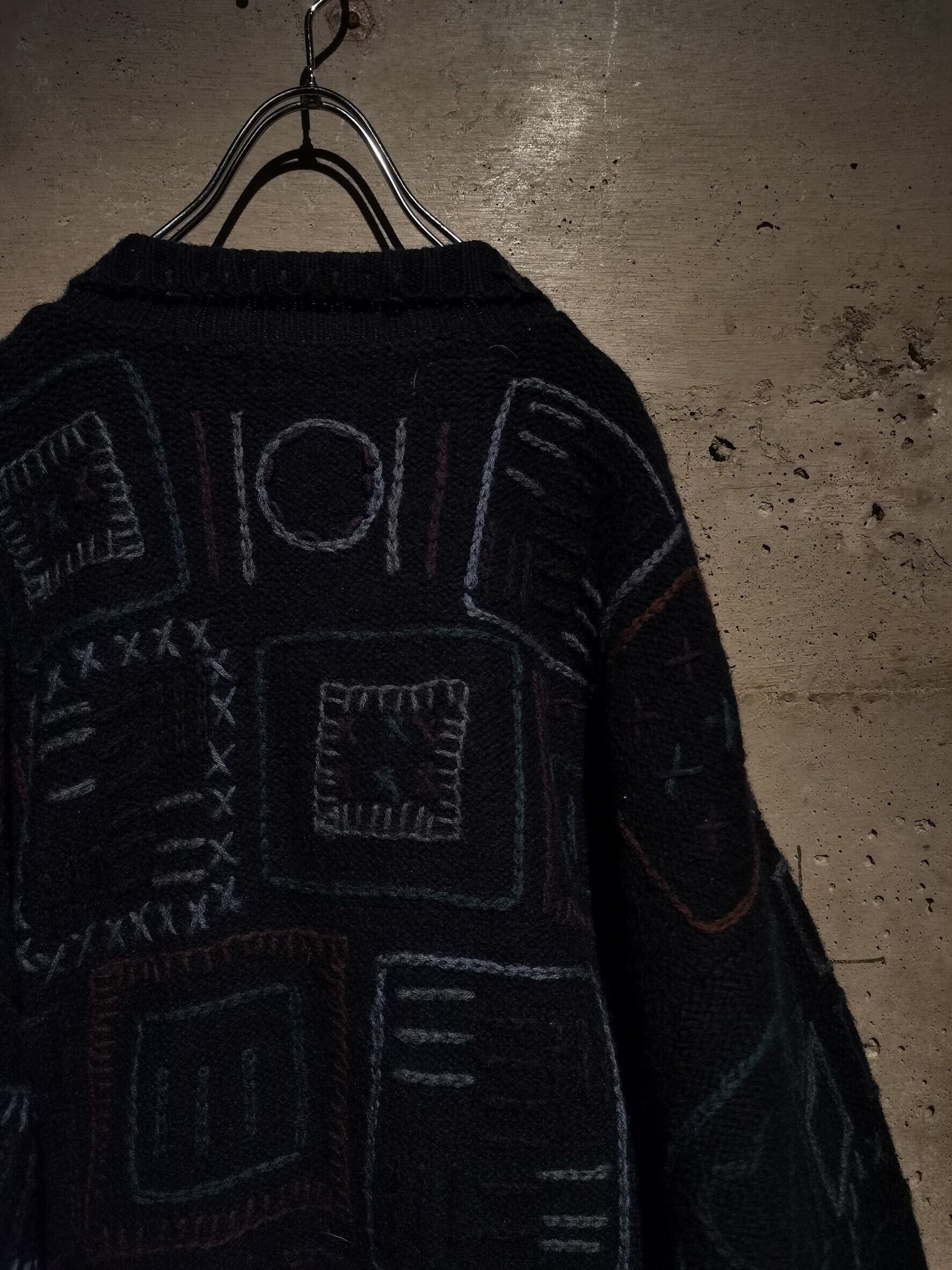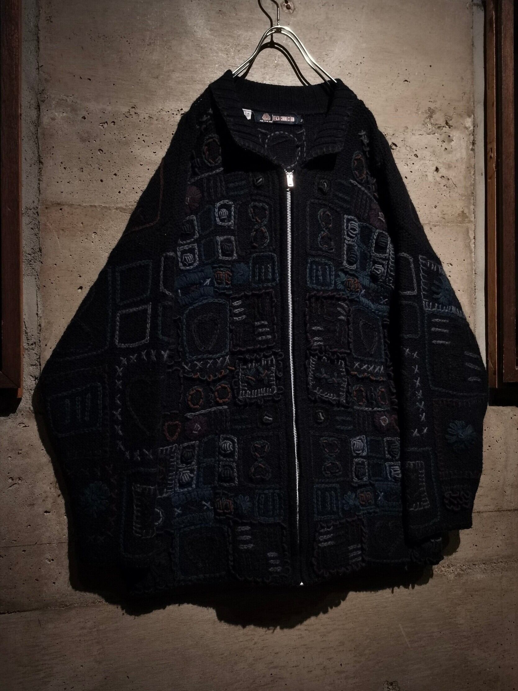 上質な素材感に上質なニッティングで表現された柄模様が相まって唯一無二な存在感を漂わせつつ、汎用性にも優れたニットジャケットの逸品です。