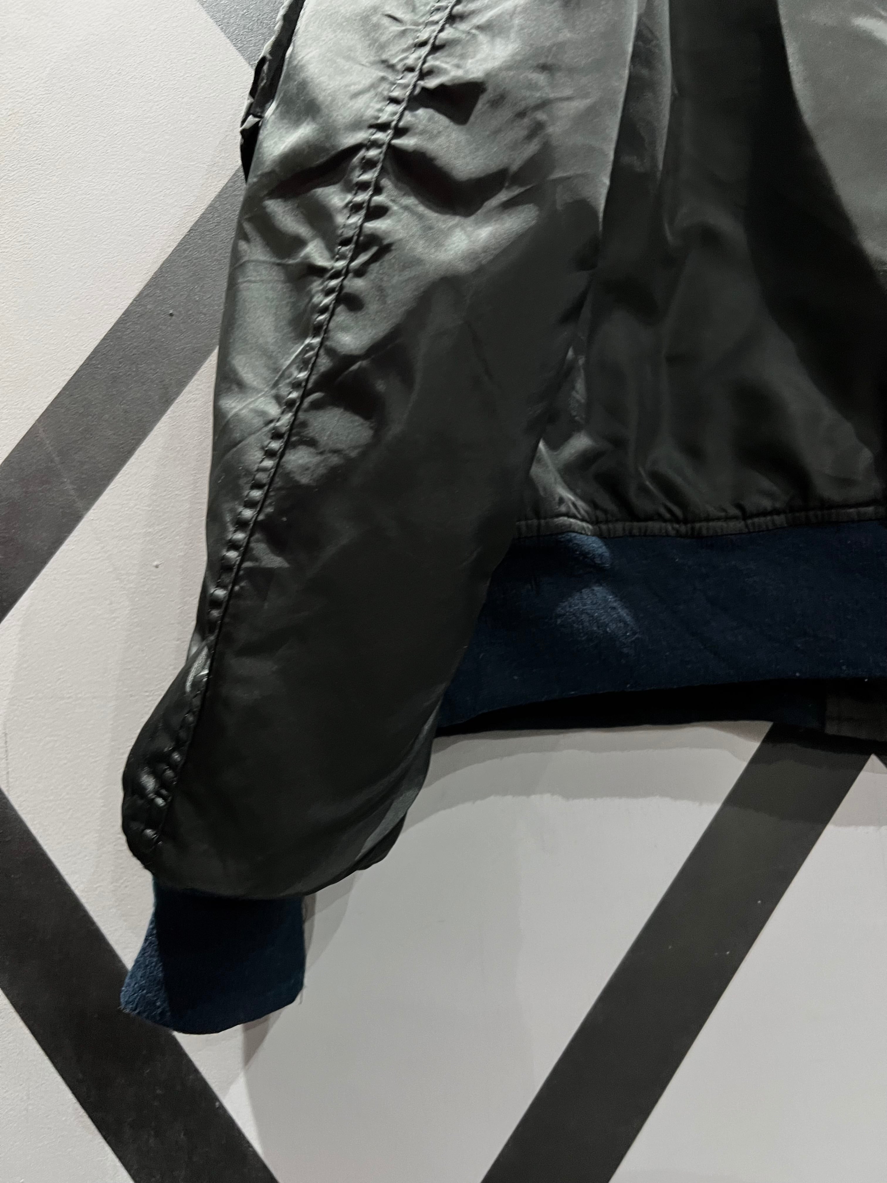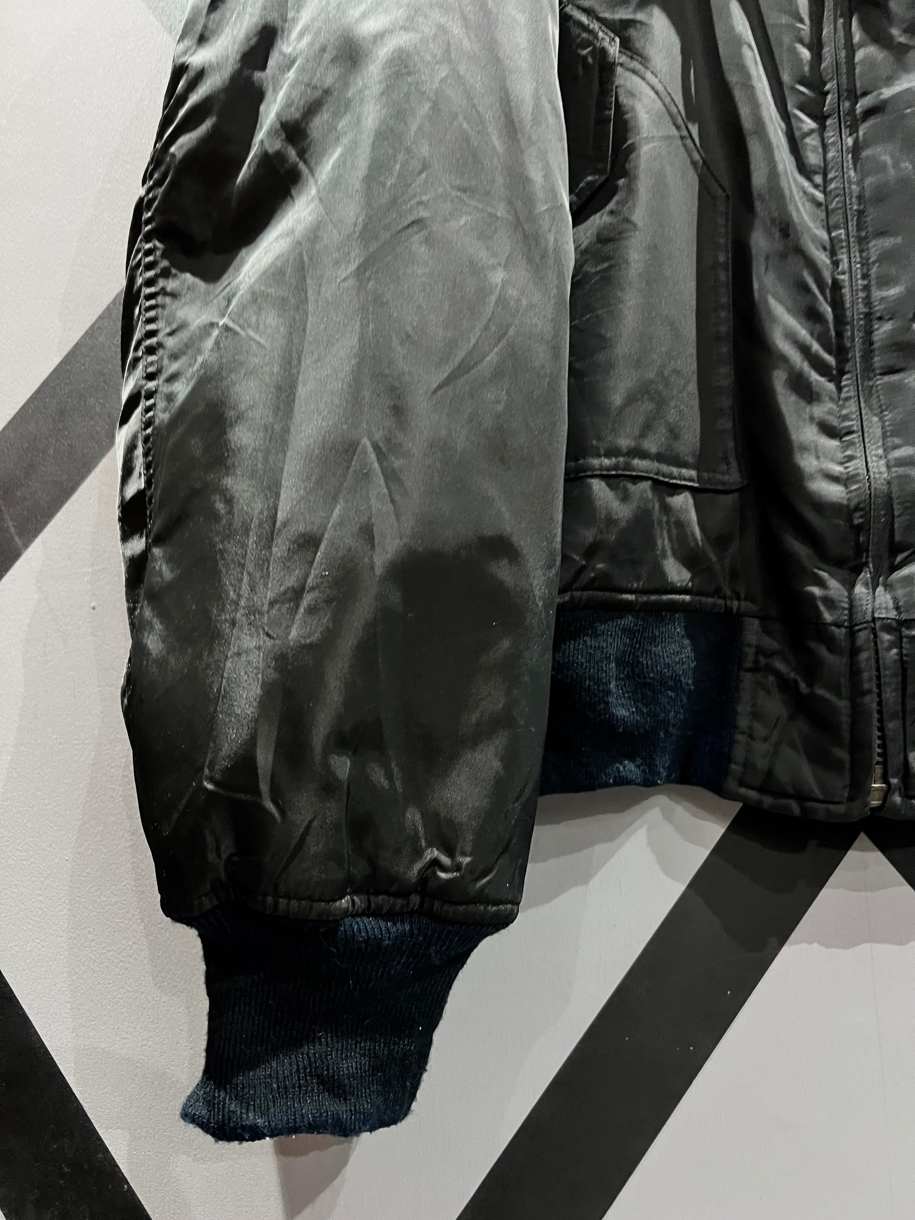 ツルッと鋭い光沢を放つブラックカラー1色のボディに、M-A1の後継モデルとして登場したCWUのディテールを落とし込んだブルゾンジャケット。