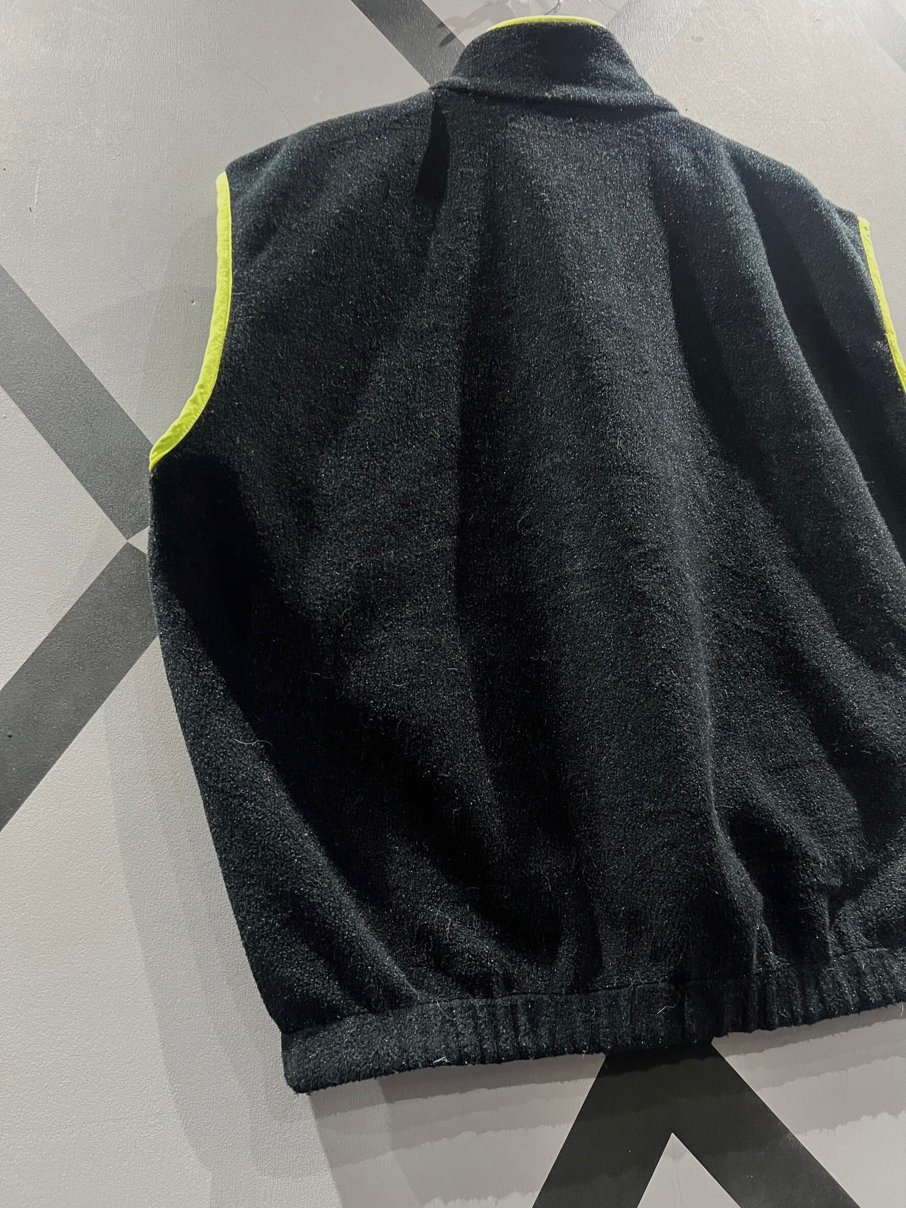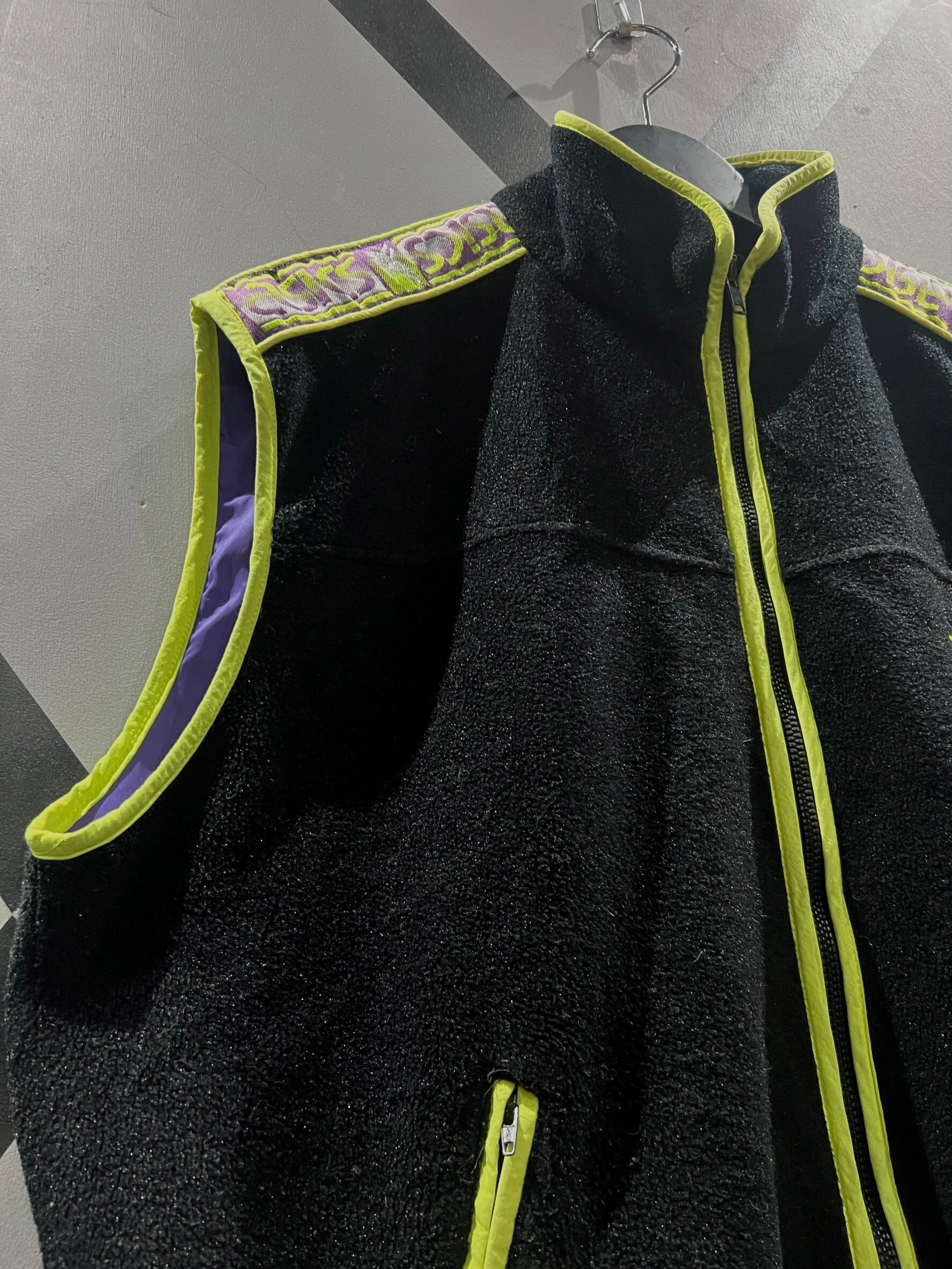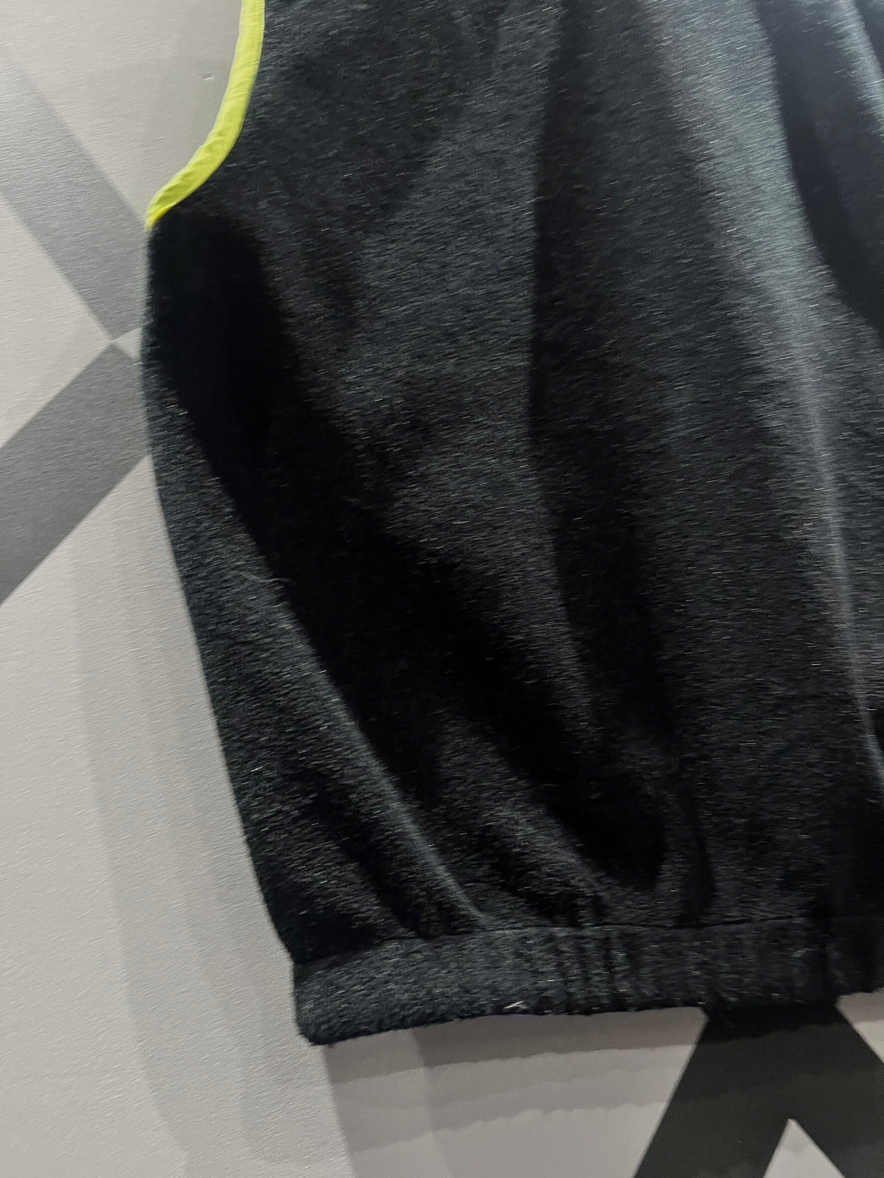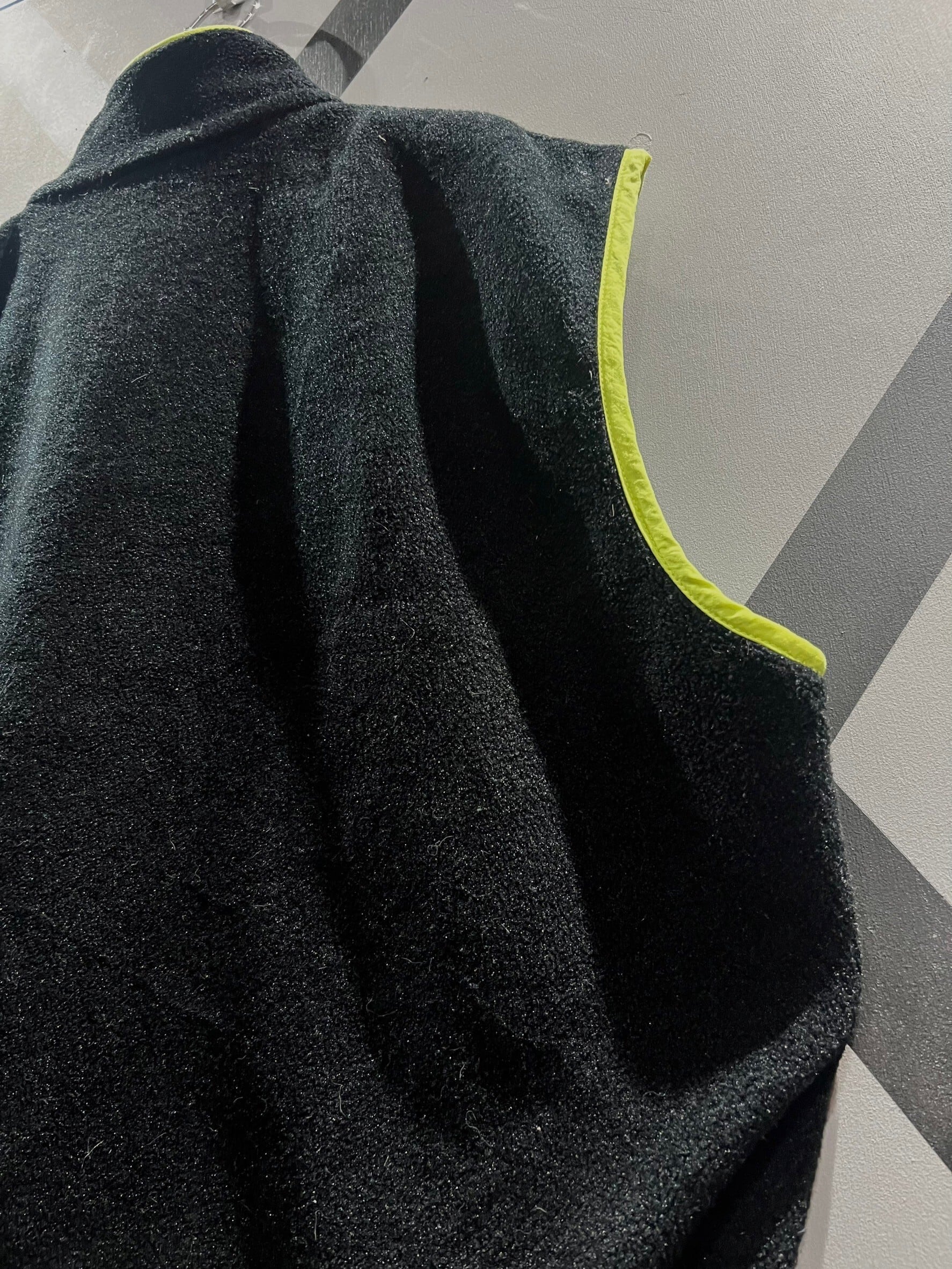 ブラックのボディをベースに、随所をネオンイエローで切り替えたフリースベスト。