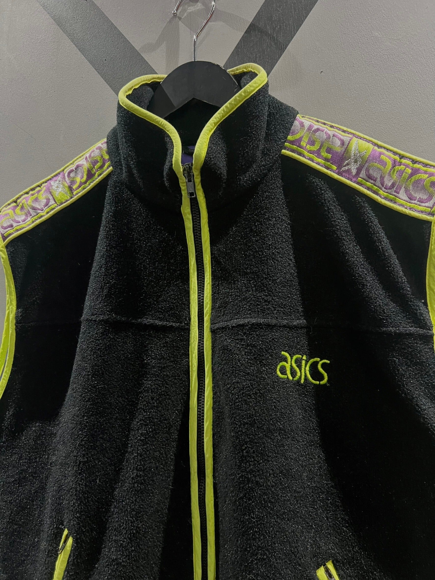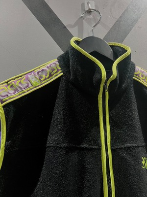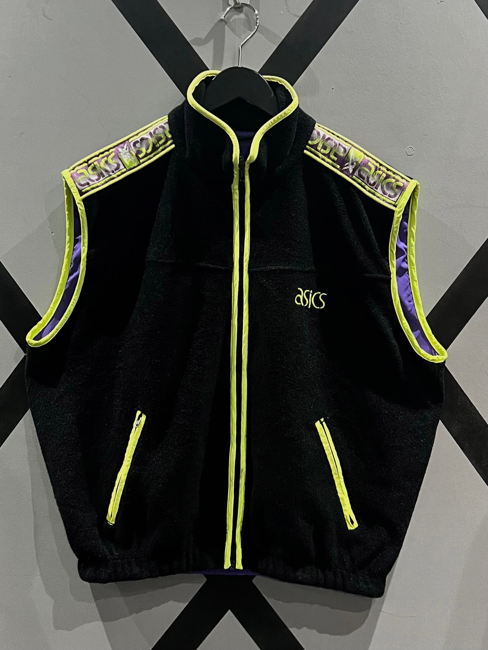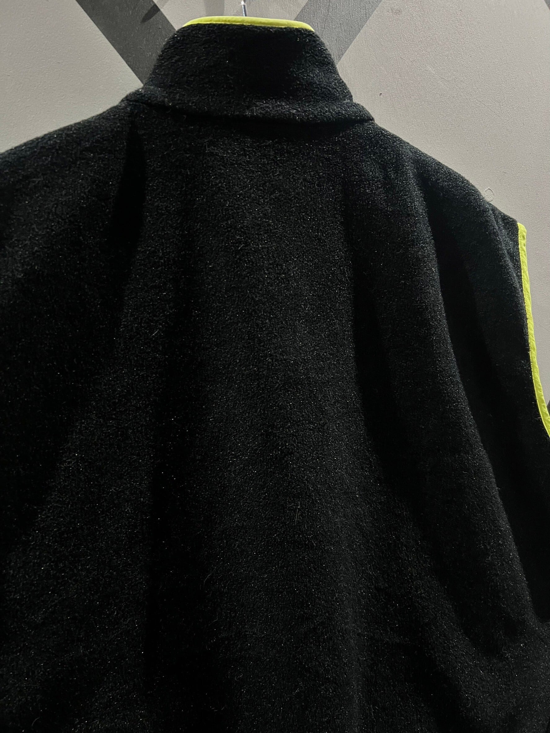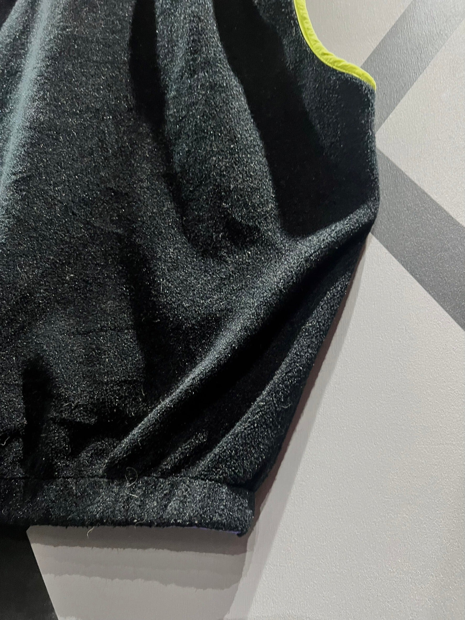 ブラックのボディをベースに、随所をネオンイエローで切り替えたフリースベスト。