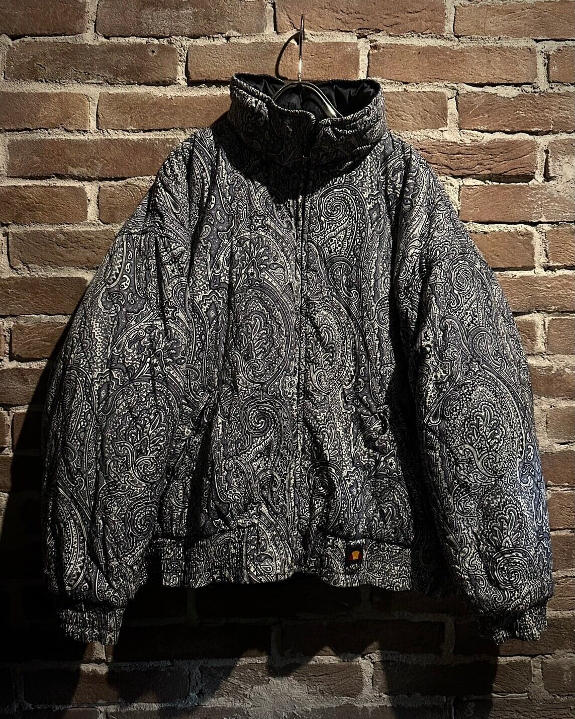 滑らかなナイロンを用いたボティに、ペイズリー柄を載せたパデットジャケット。