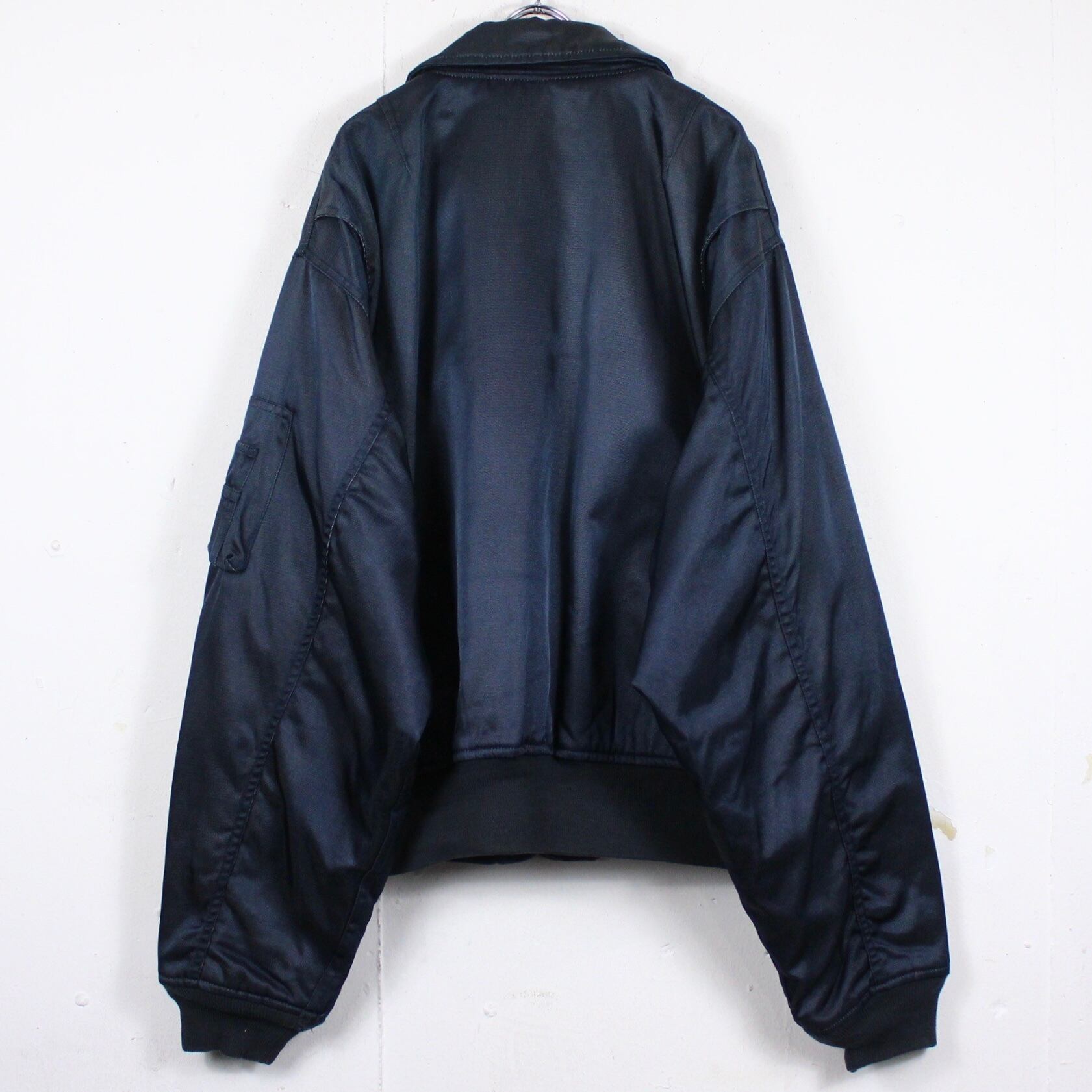 光沢を帯びた、ネイビーのタフなナイロン生地をボディに用いた、アメリカ空軍の名品"CWU-45P"フライトジャケットをサンプリングした1着。