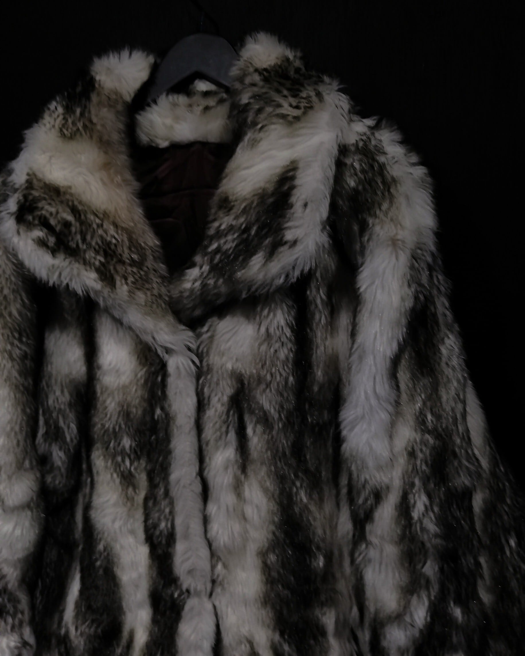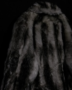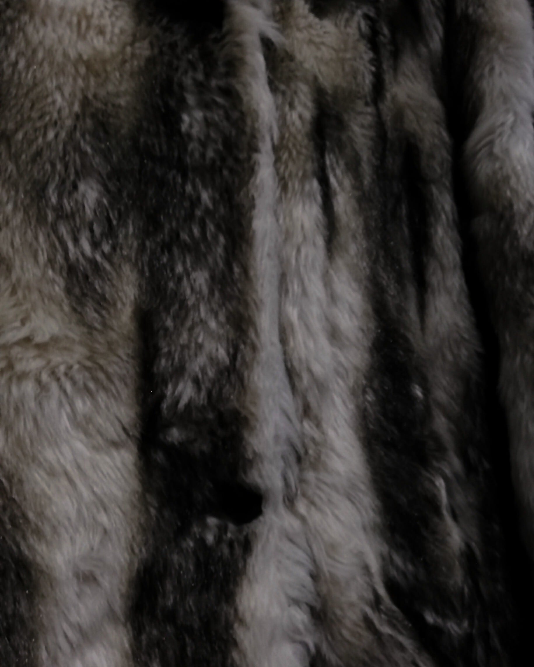 毛足が長くもっふもふのフェイクファーのボディに、グラデーションのかかったモノトーンのデザインを載せたファージャケット。