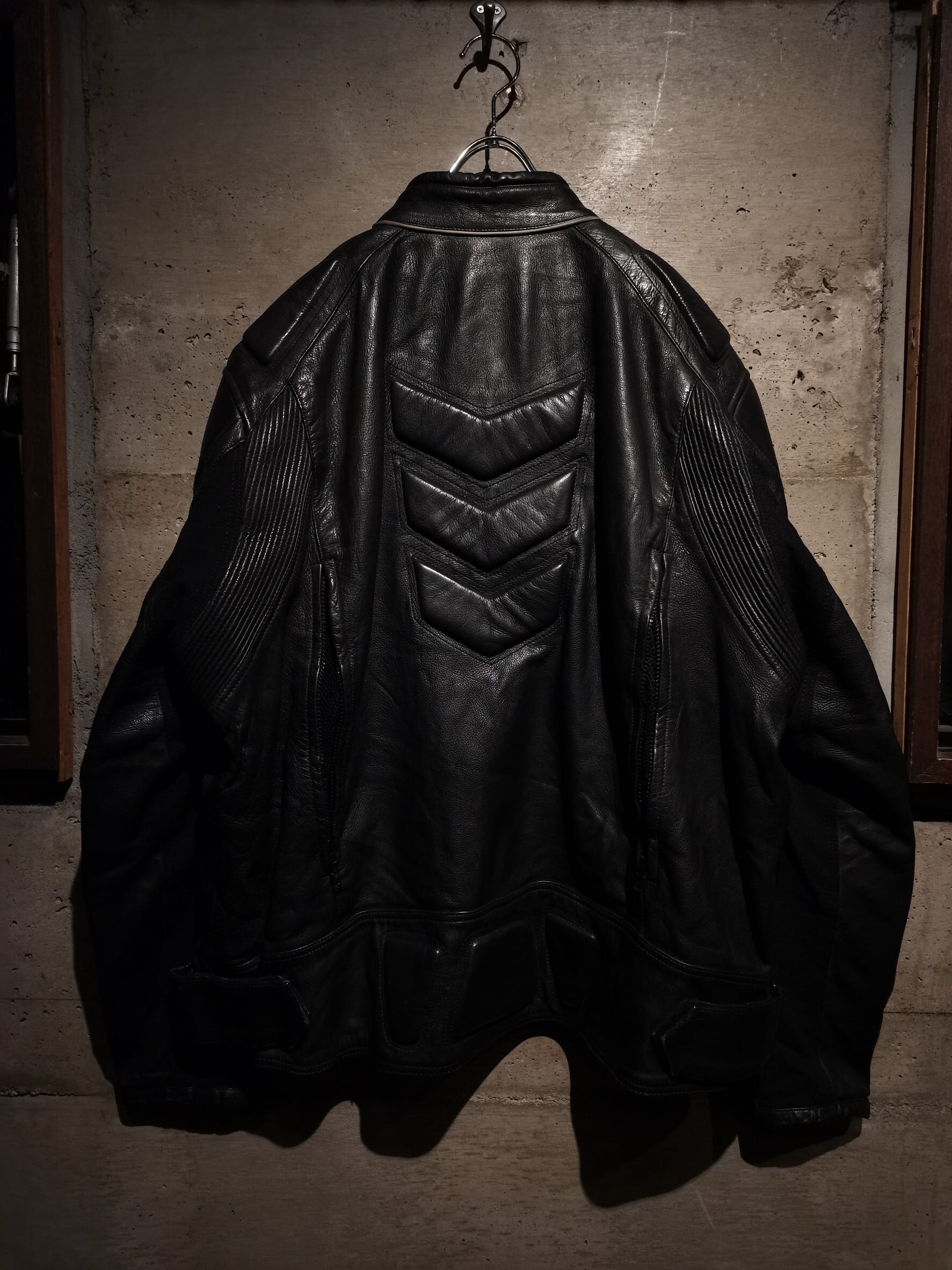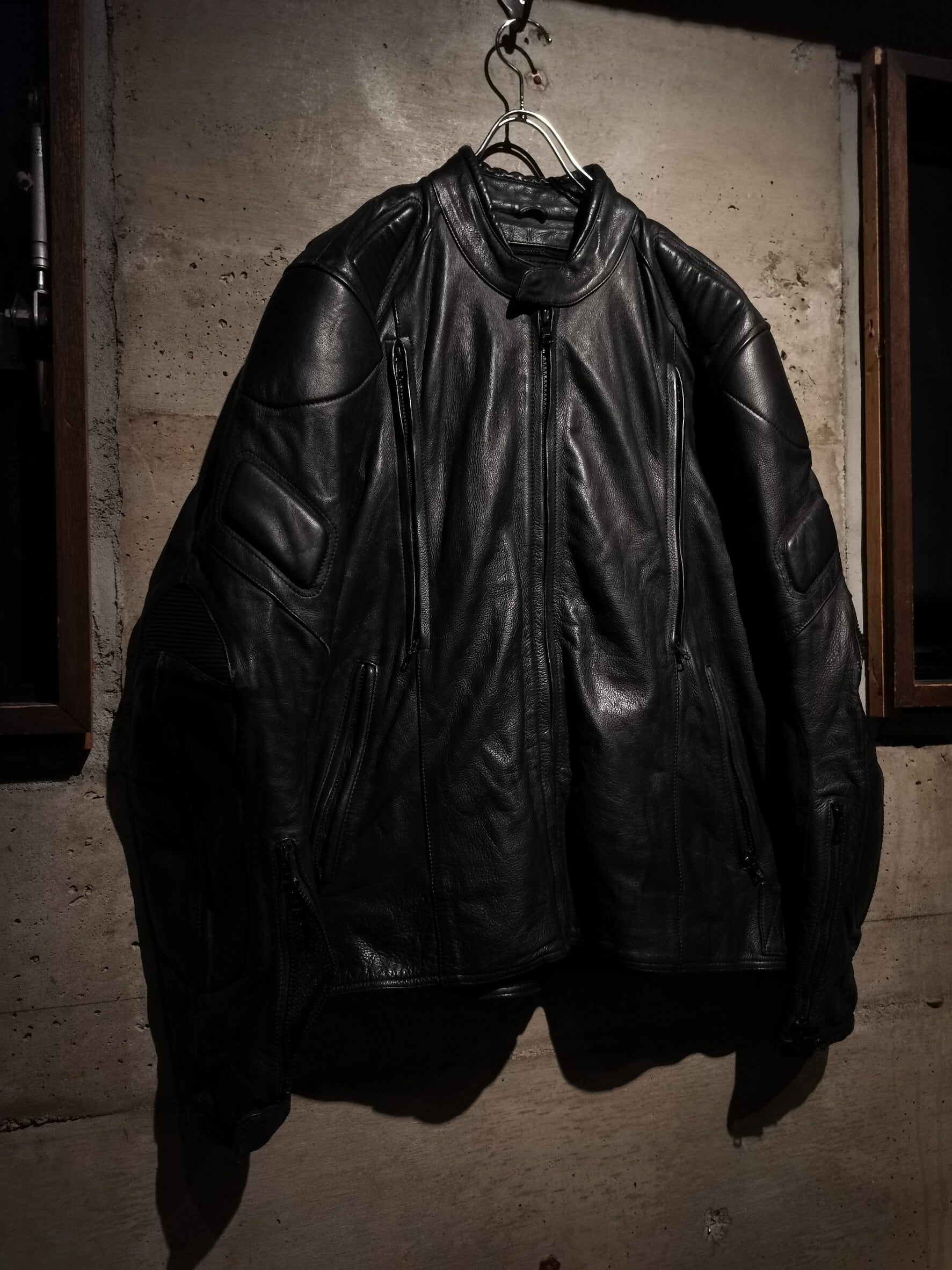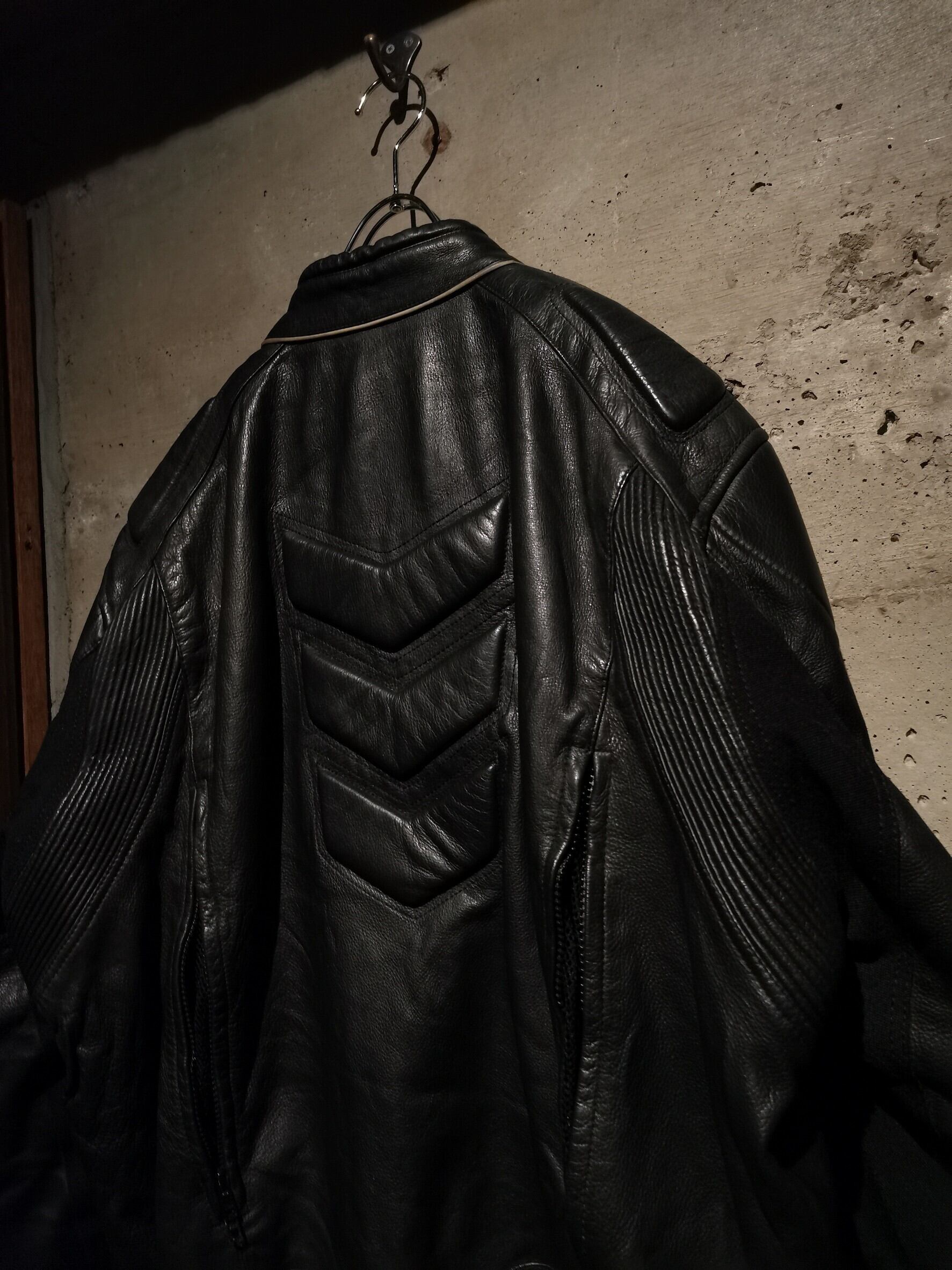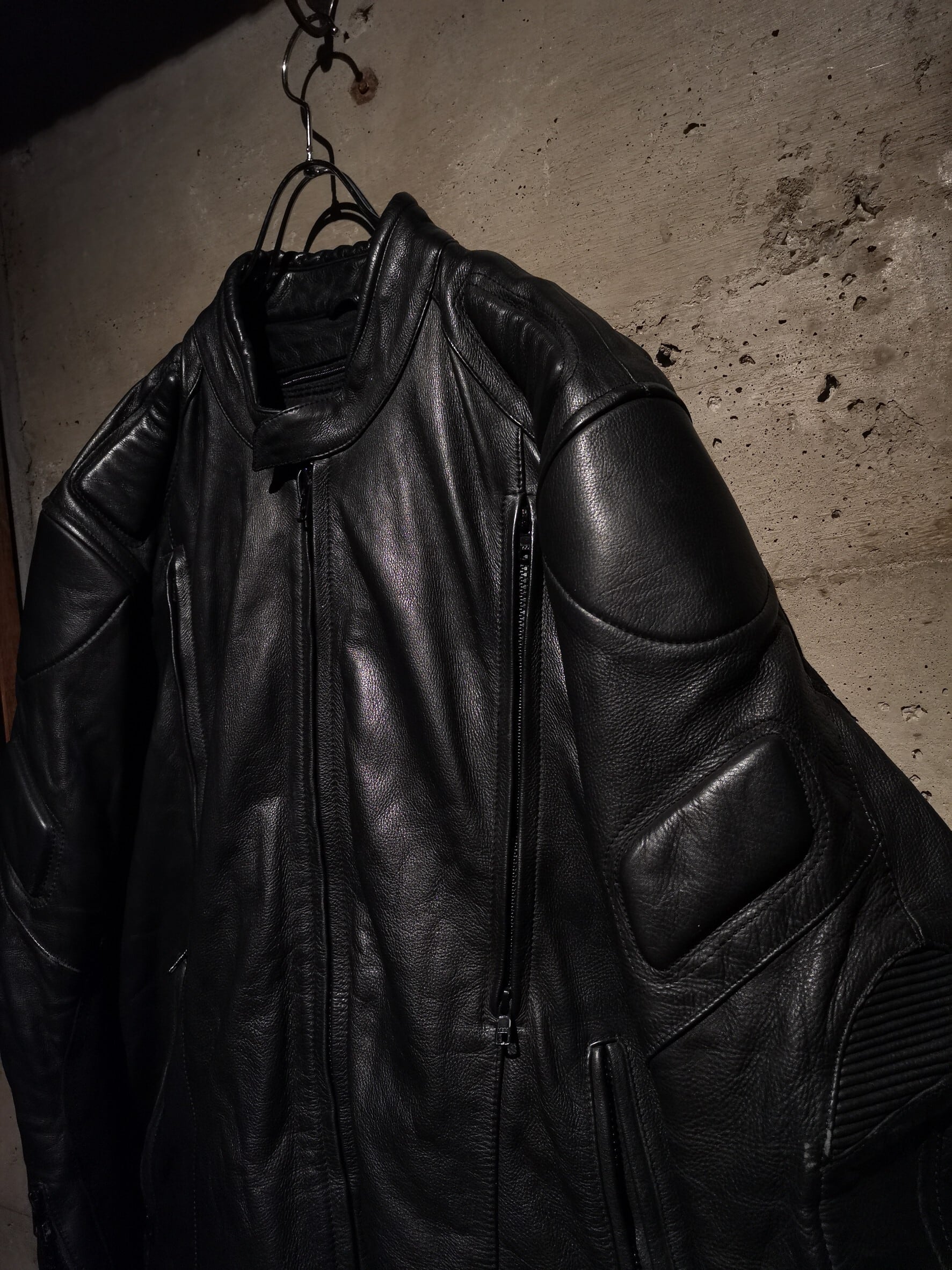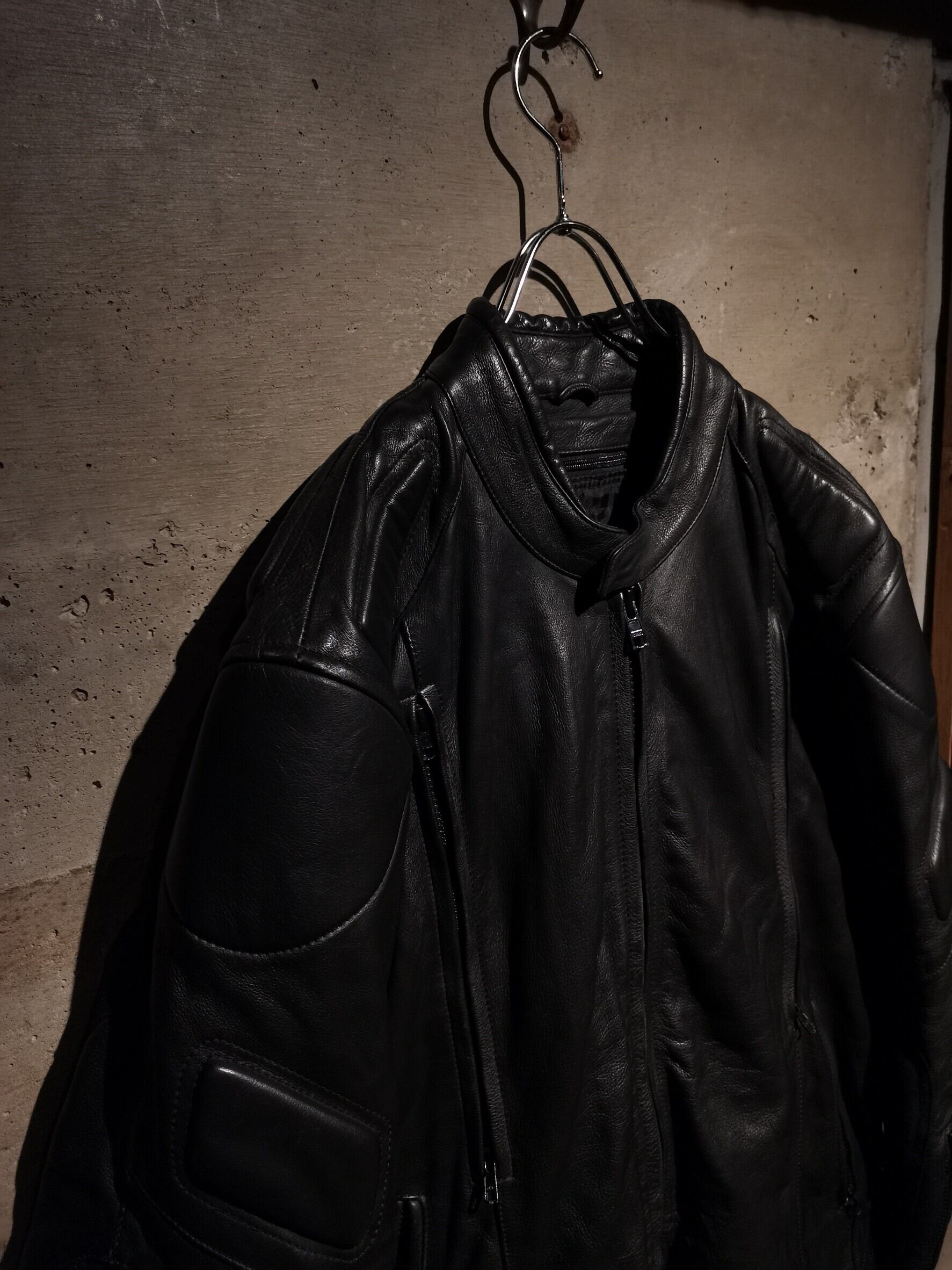 ハリのある上質なブラックレザーをボディに使用した、モーターサイクルレザージャケット。