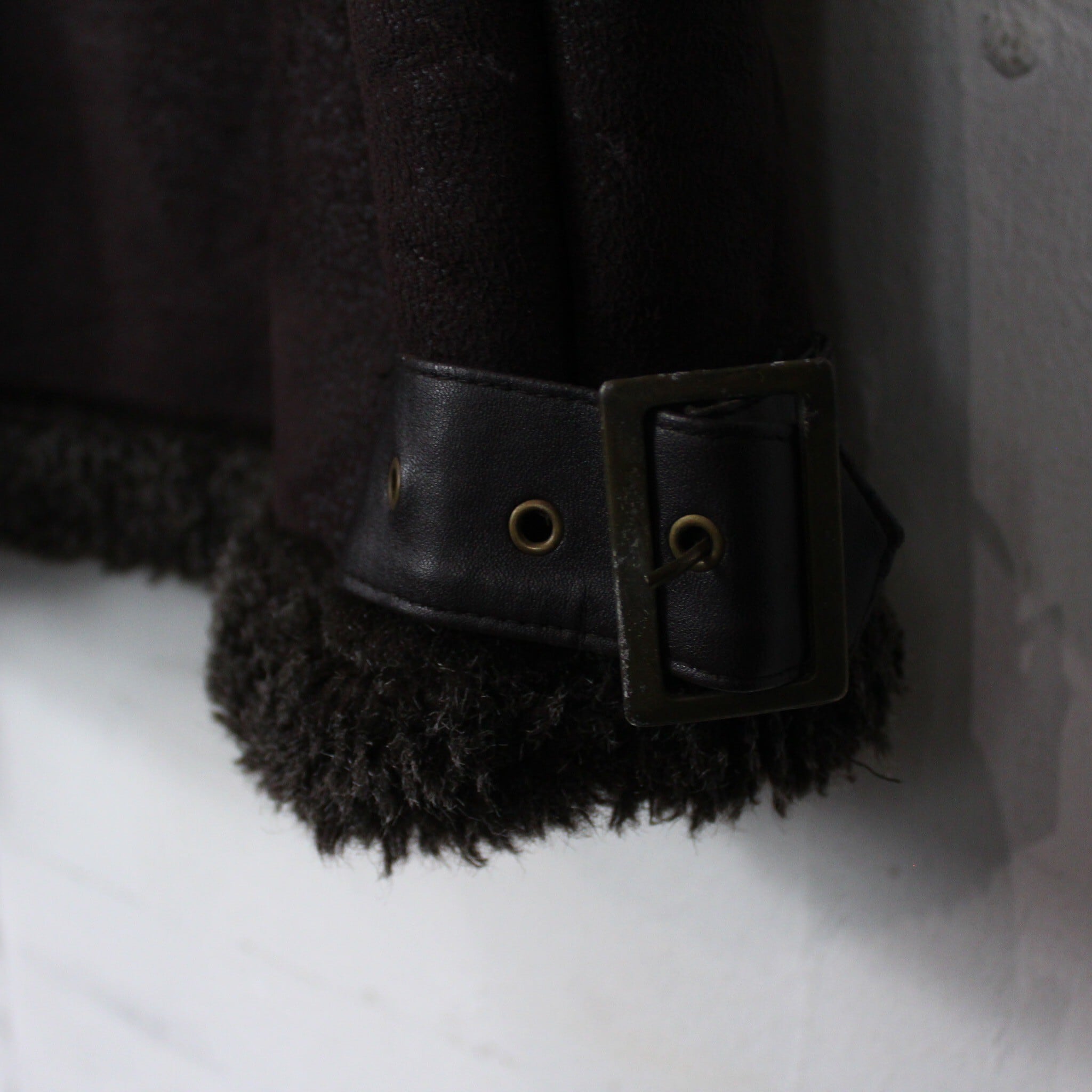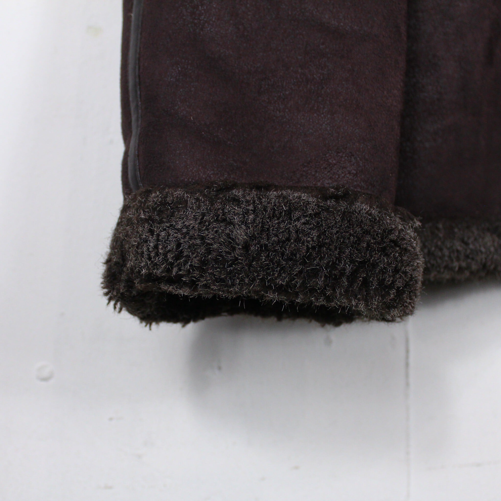内側にはフワッと柔らかなフェイクムートンが全体に敷き詰められ、その保温力は言わずもがな。更には首元にはベルト仕様のチンストラップを施し、襟を立ててハイネックでの着用も可能となり、首までをしっかりと包み込み、寒さの厳しい冬場でも暖かくご着用いただけます。