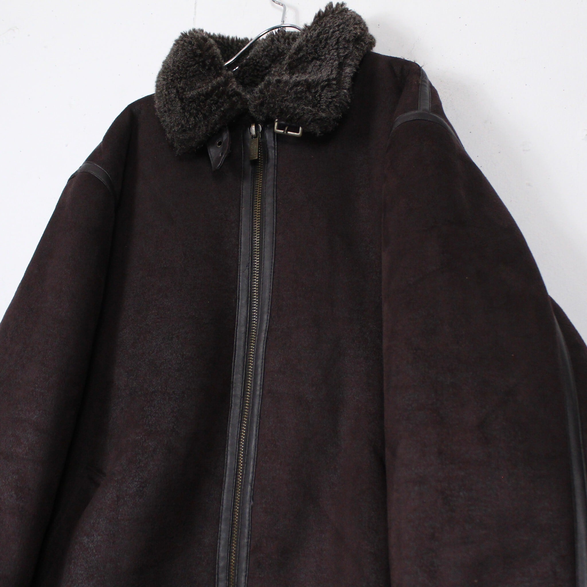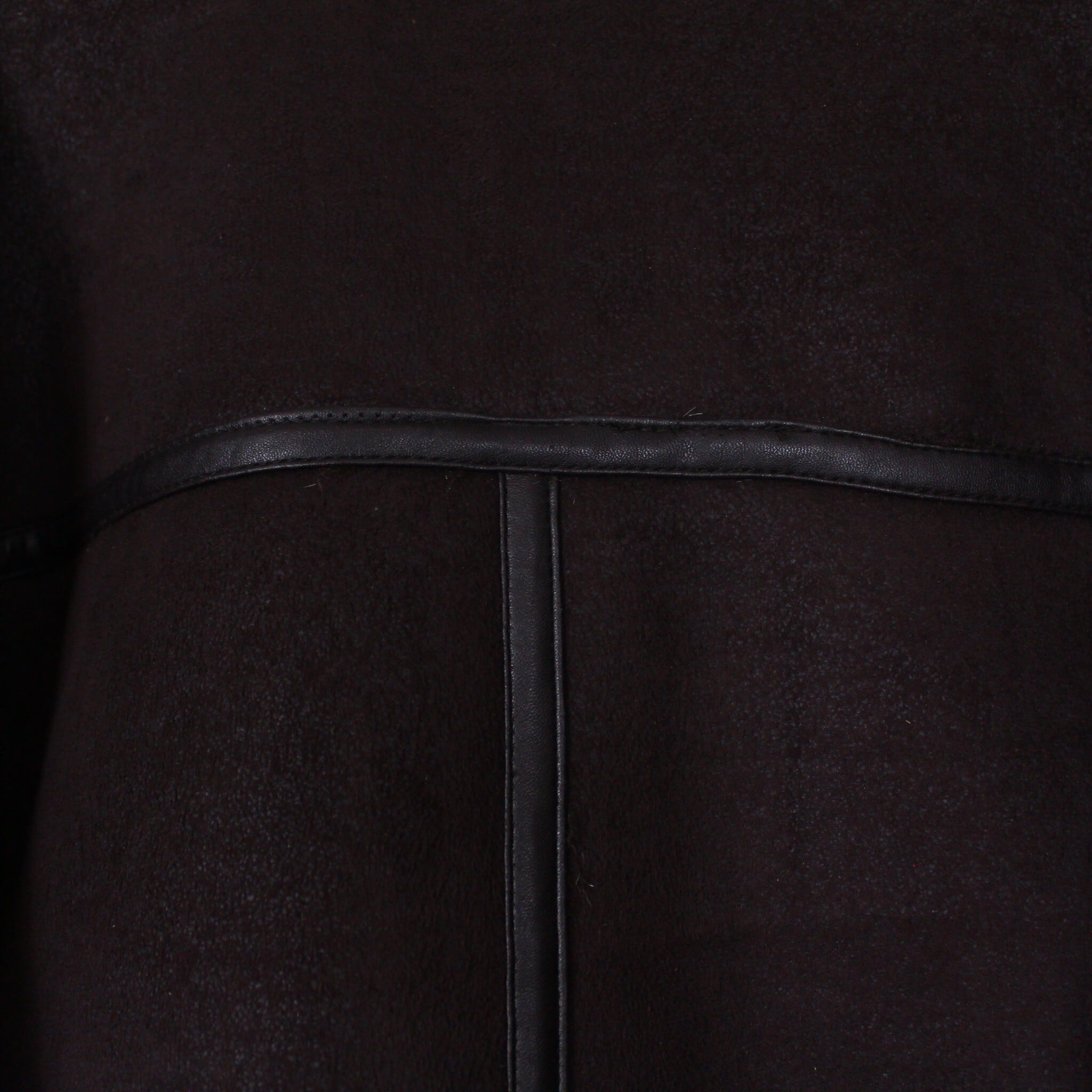 しっとりと滑らかな、ブラウンカラーのフェイクムートンをボディに使用。袖や背面にはスムースレザーでラインのデザインをON。