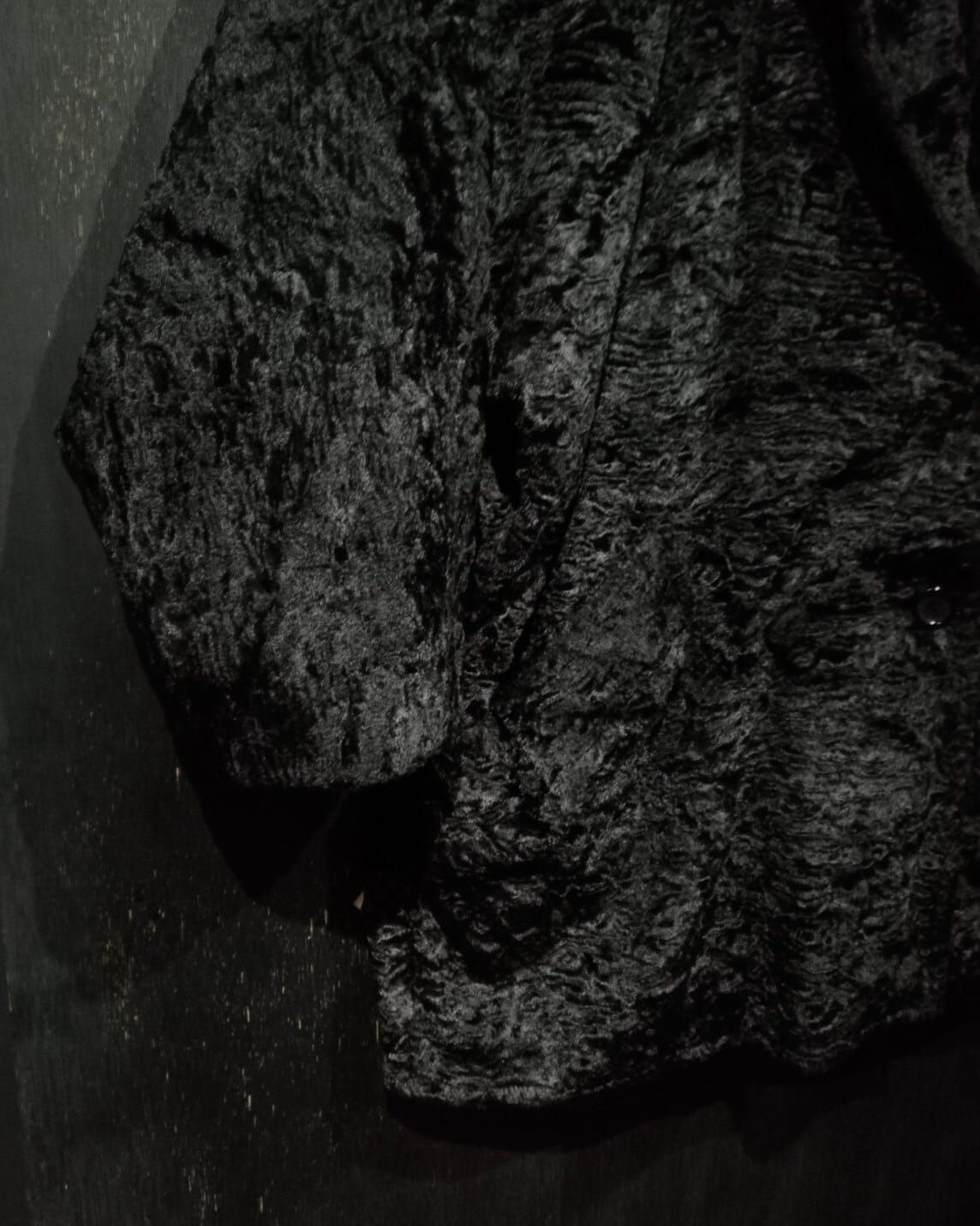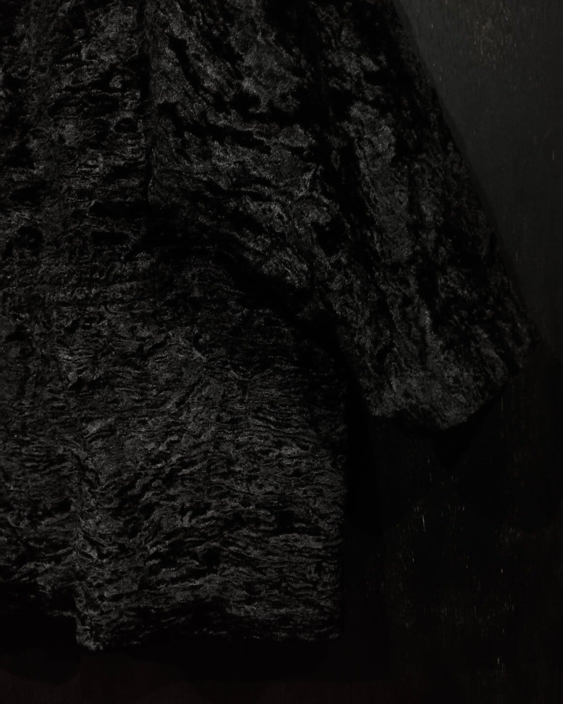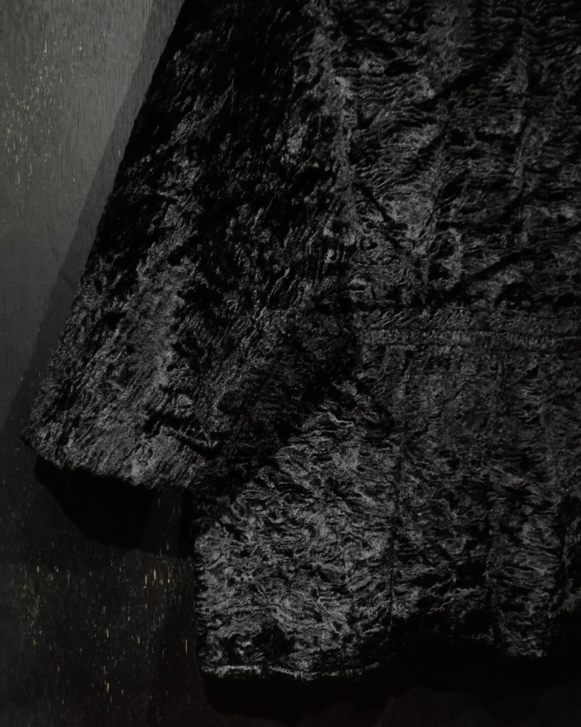 光の当たり加減でファーの凹凸がより深い陰影を生み、オールブラックながら表情豊かな仕上がりに。