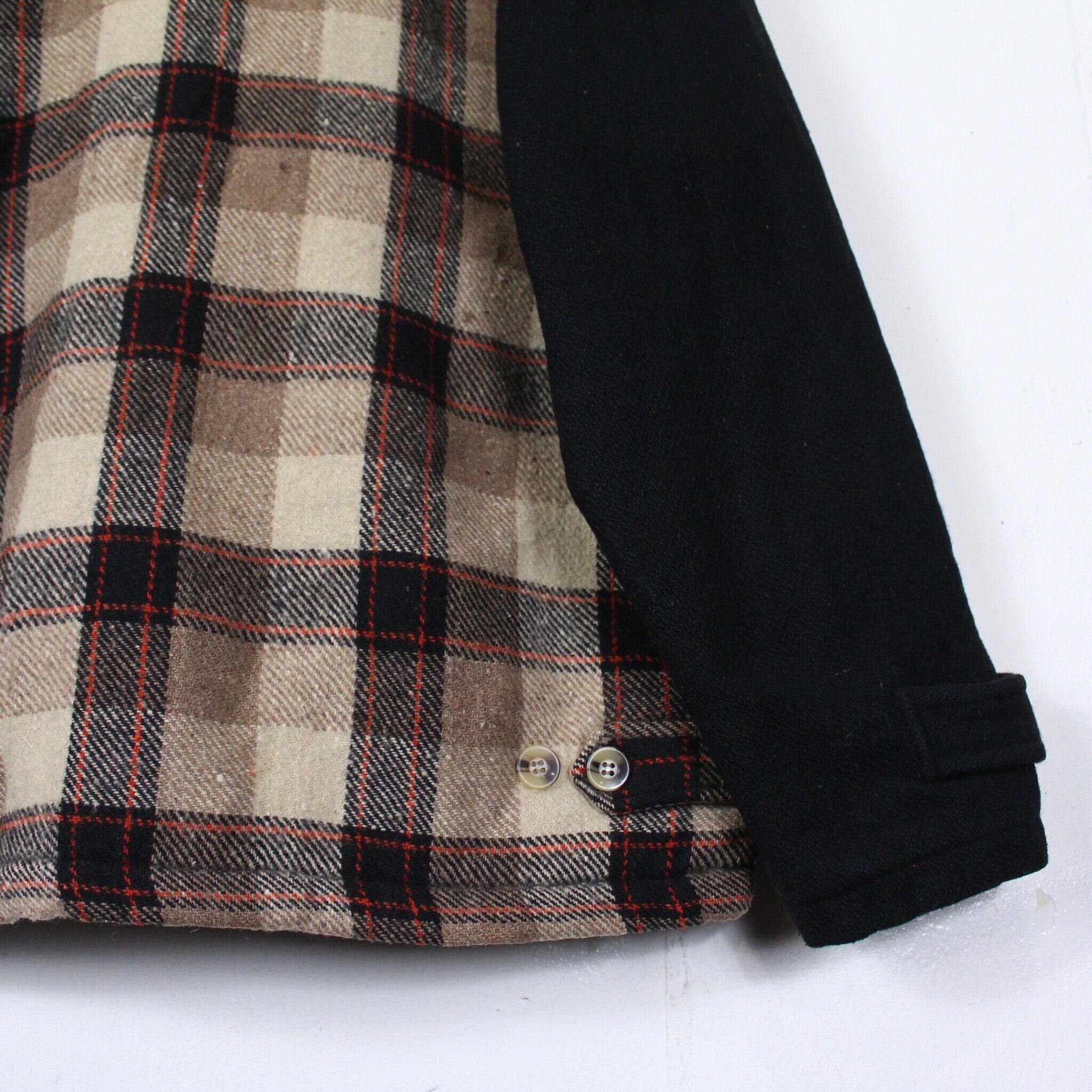 上質なウールを混紡した素材を用いて、身頃にレトロなチェック柄を切り替えたジャケット。
