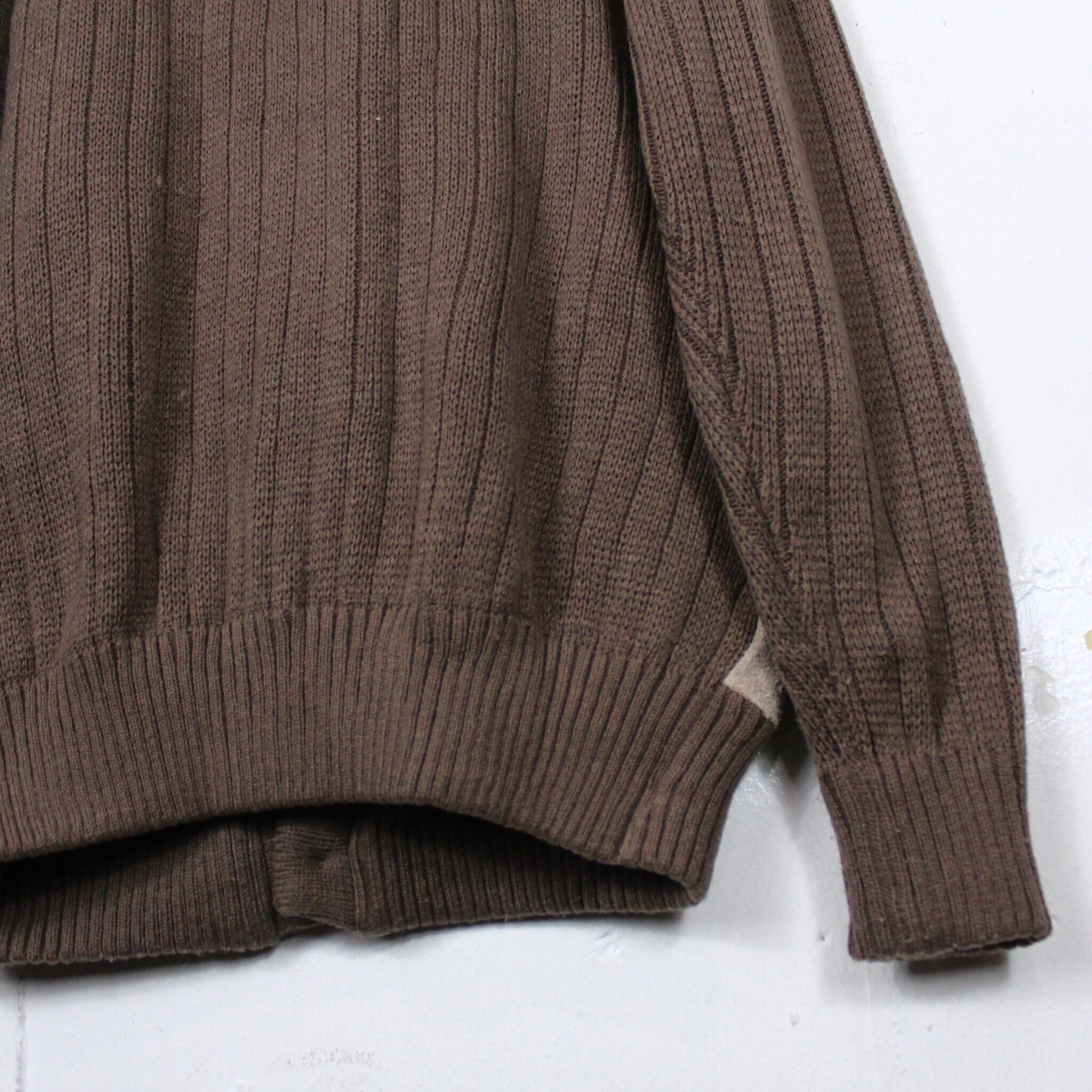 上品なベージュカラーで仕上げたニット素材をベースとし、前身頃に同色のスエードレザーを切り替えしたヴィンテージのニットカーディガン。