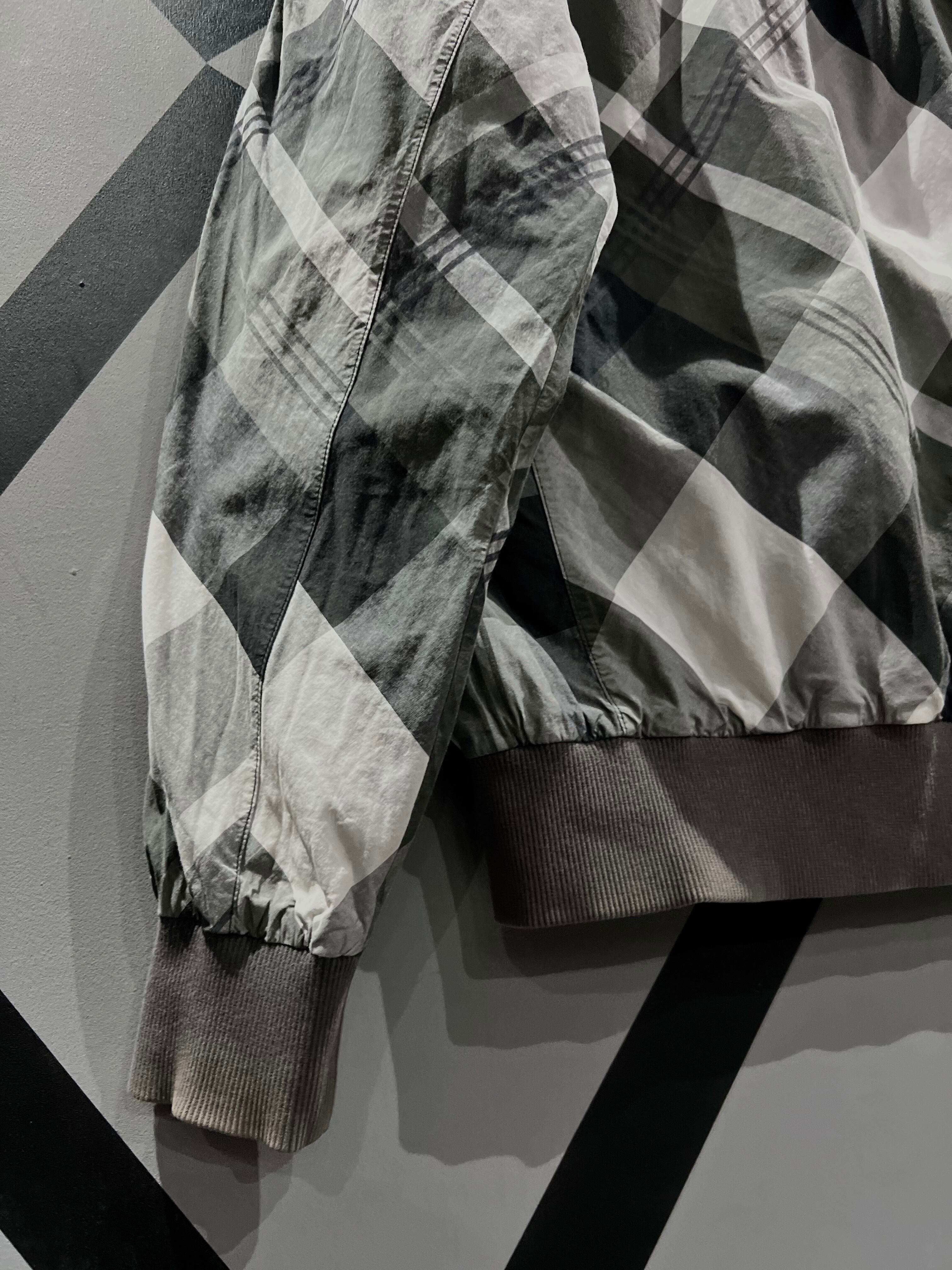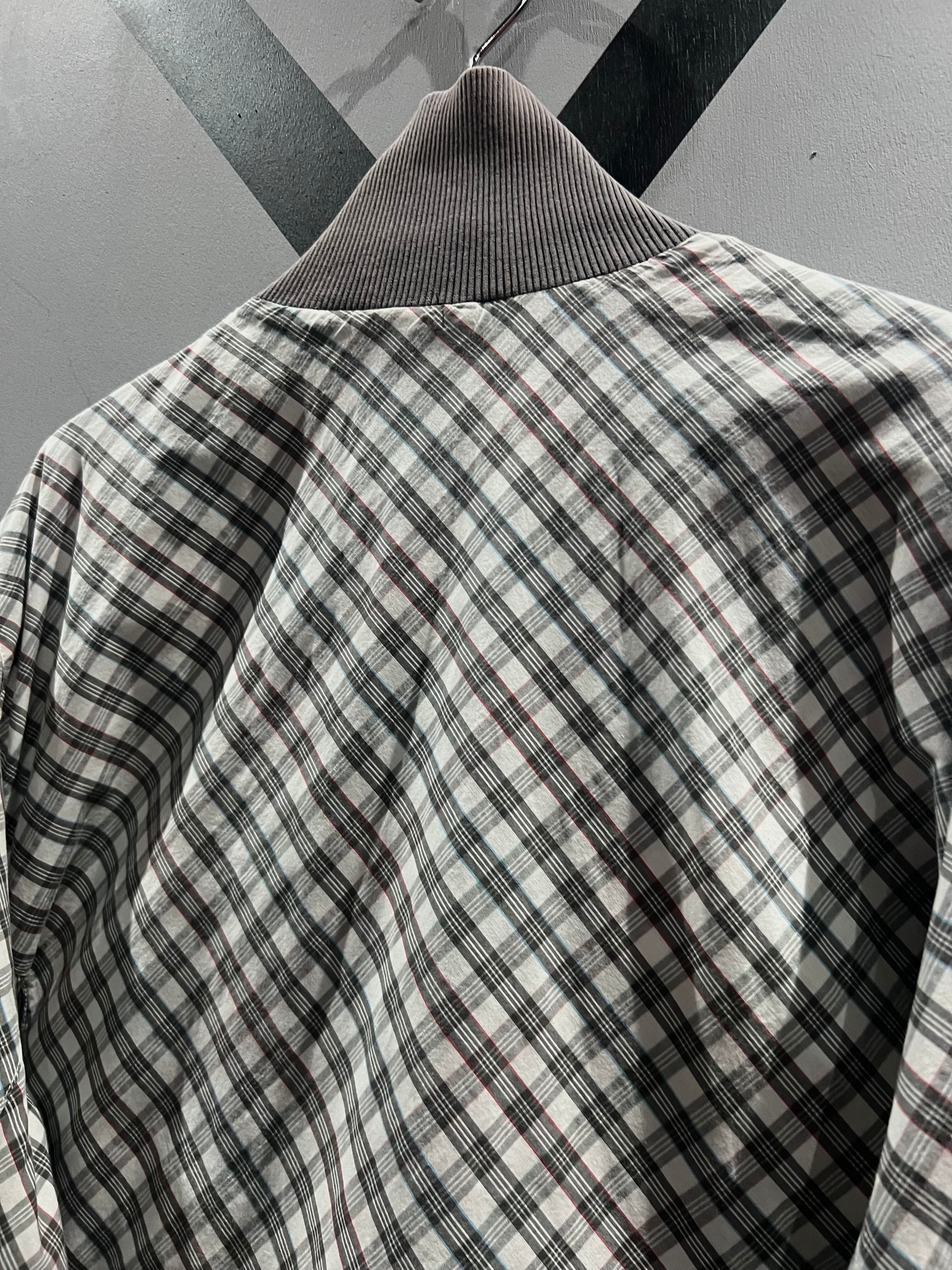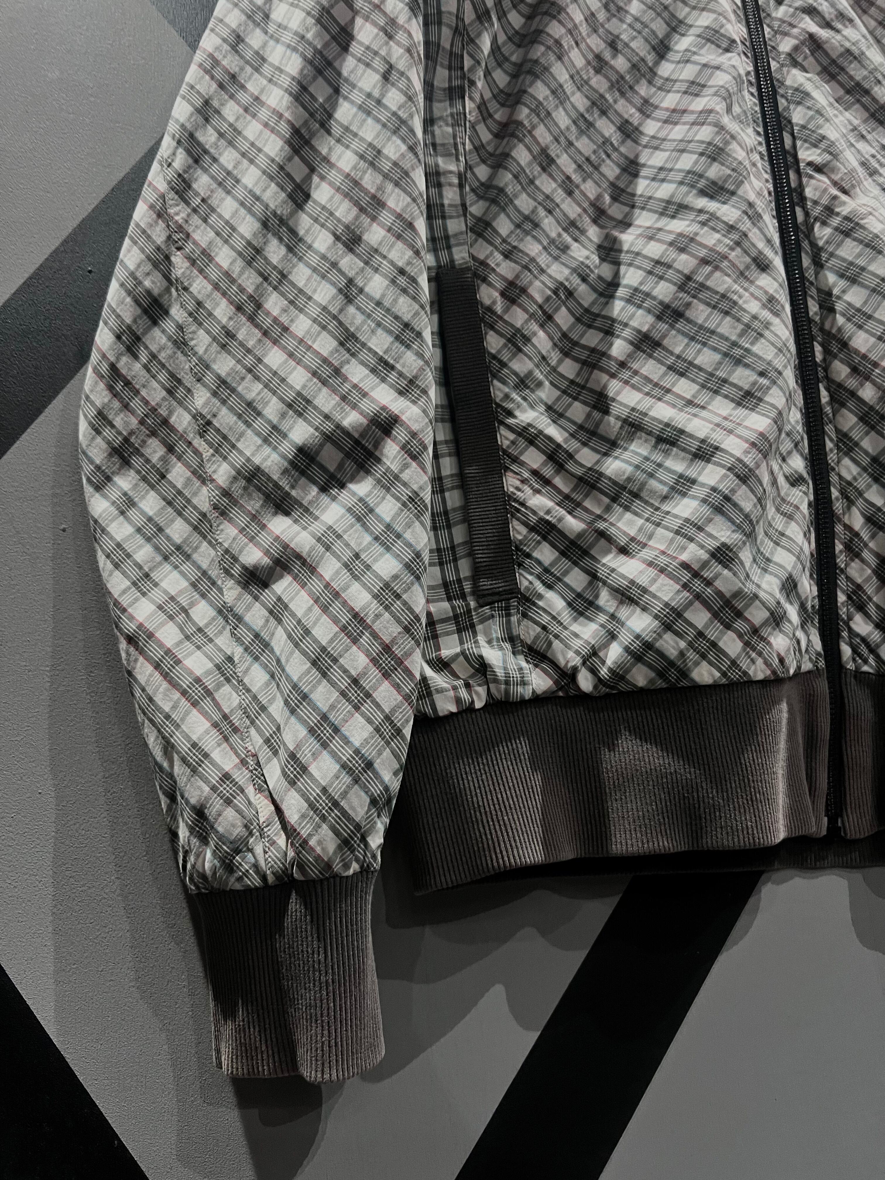 ハリのあるボディをベースに、表裏にピッチを変えたチェック柄をモノトーンで載せた、稀有なリバーシブル仕様のトラックジャケット。