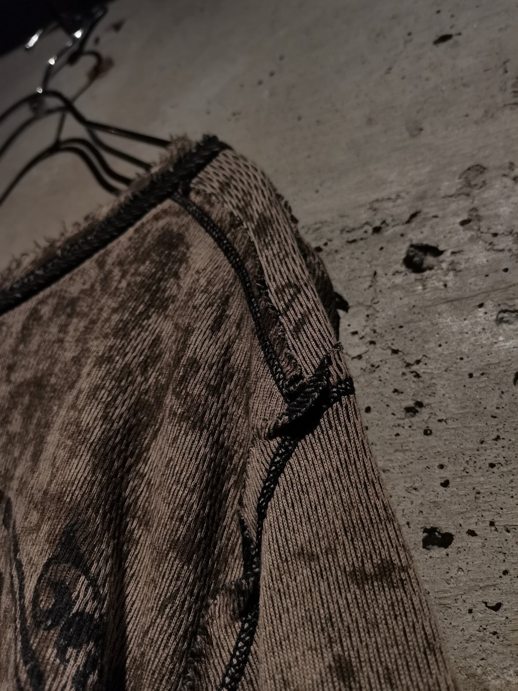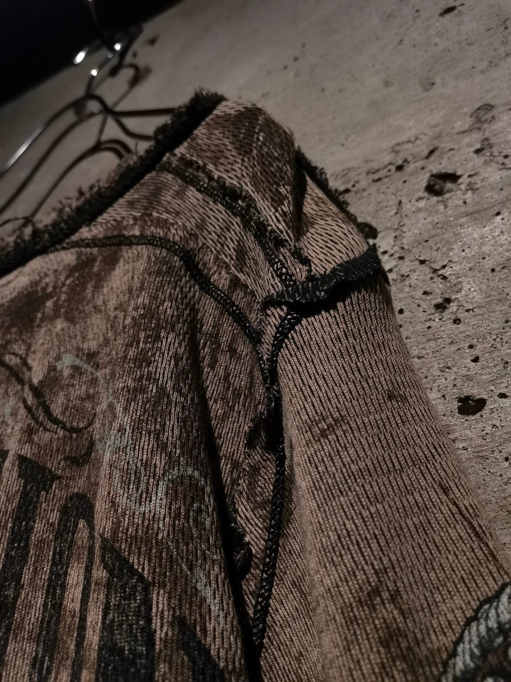ブラック面、ブリーチの様な退廃感を漂わせる面をリバーシブルで切り替えらそれぞれにゴシックなデザインを載せたサーマルロンT。