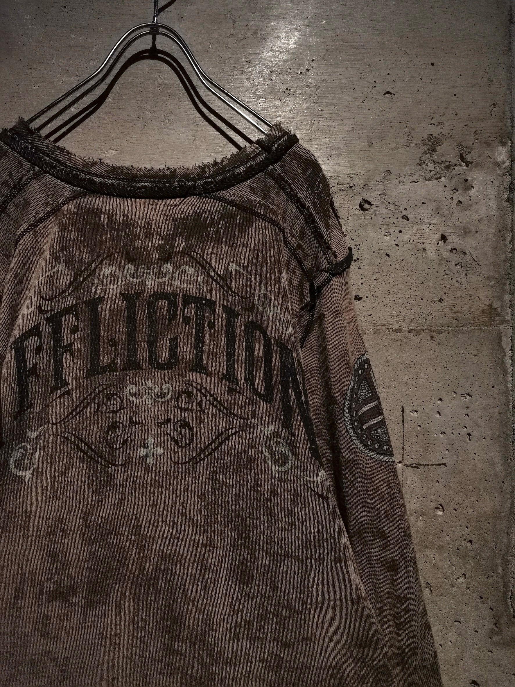 引き続きこの手のジャンルは当店でも非常に気分で力を入れて店頭でも展開中ですが、その中でも"Affliction"の稀有なリバーシブル仕様のサーマルロンTです。