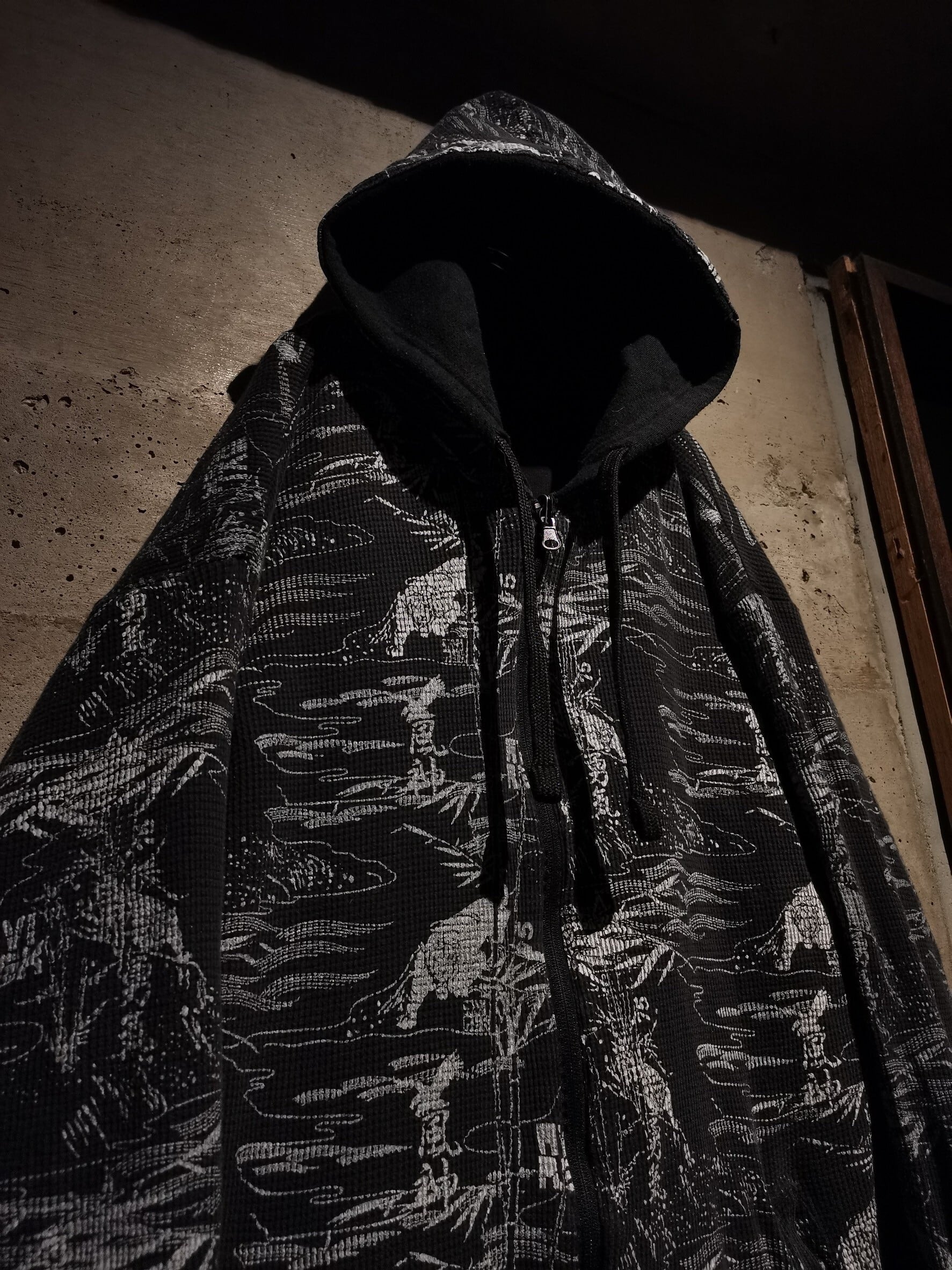 サーマルを用いたボディに、オリエンタルな虎、"風神" "男気"などの漢字をプリント。裏返すとスウェット生地をベースに左胸にはブランドロゴを刺繍で刻んだ、稀有なリバーシブル仕様の1着。