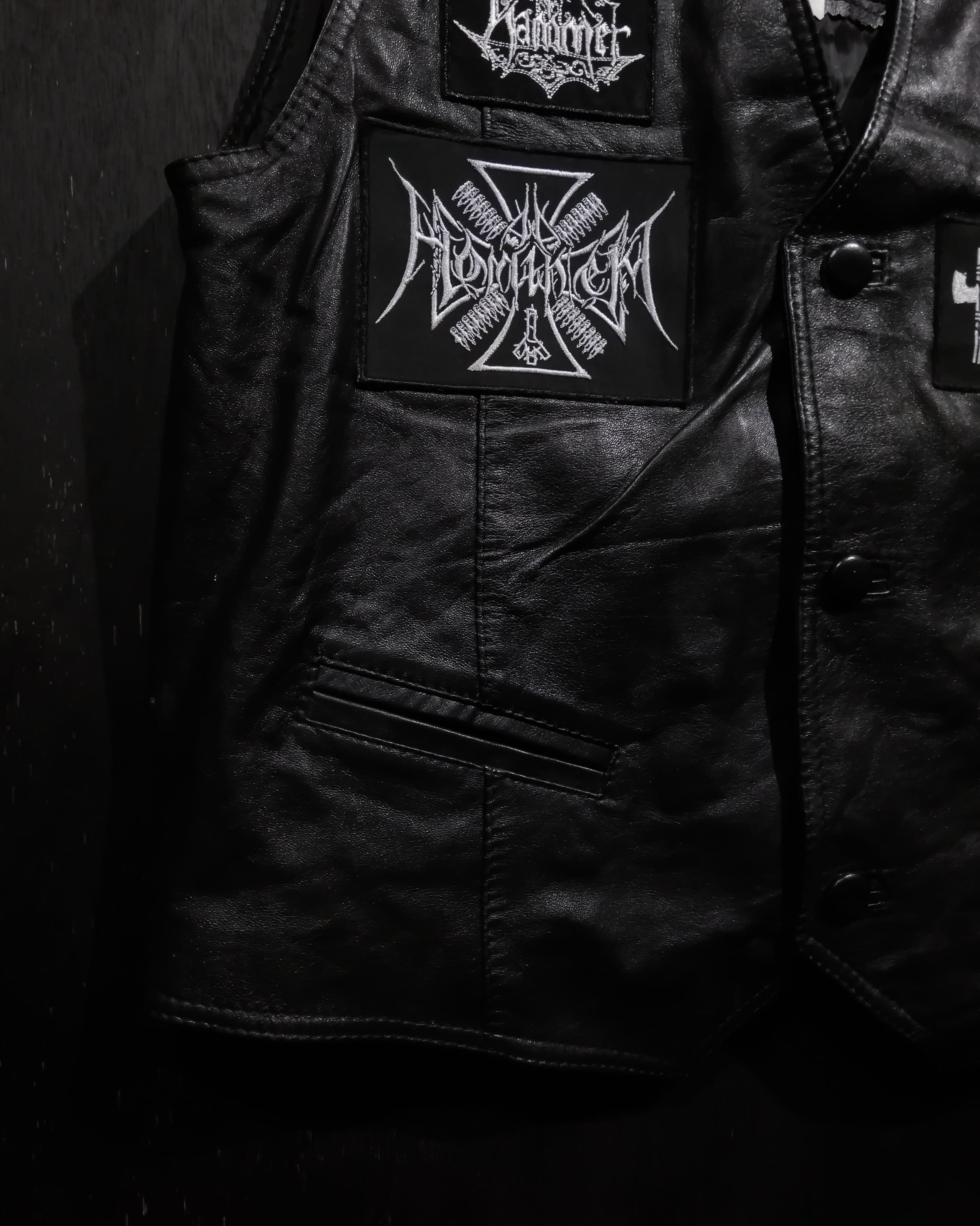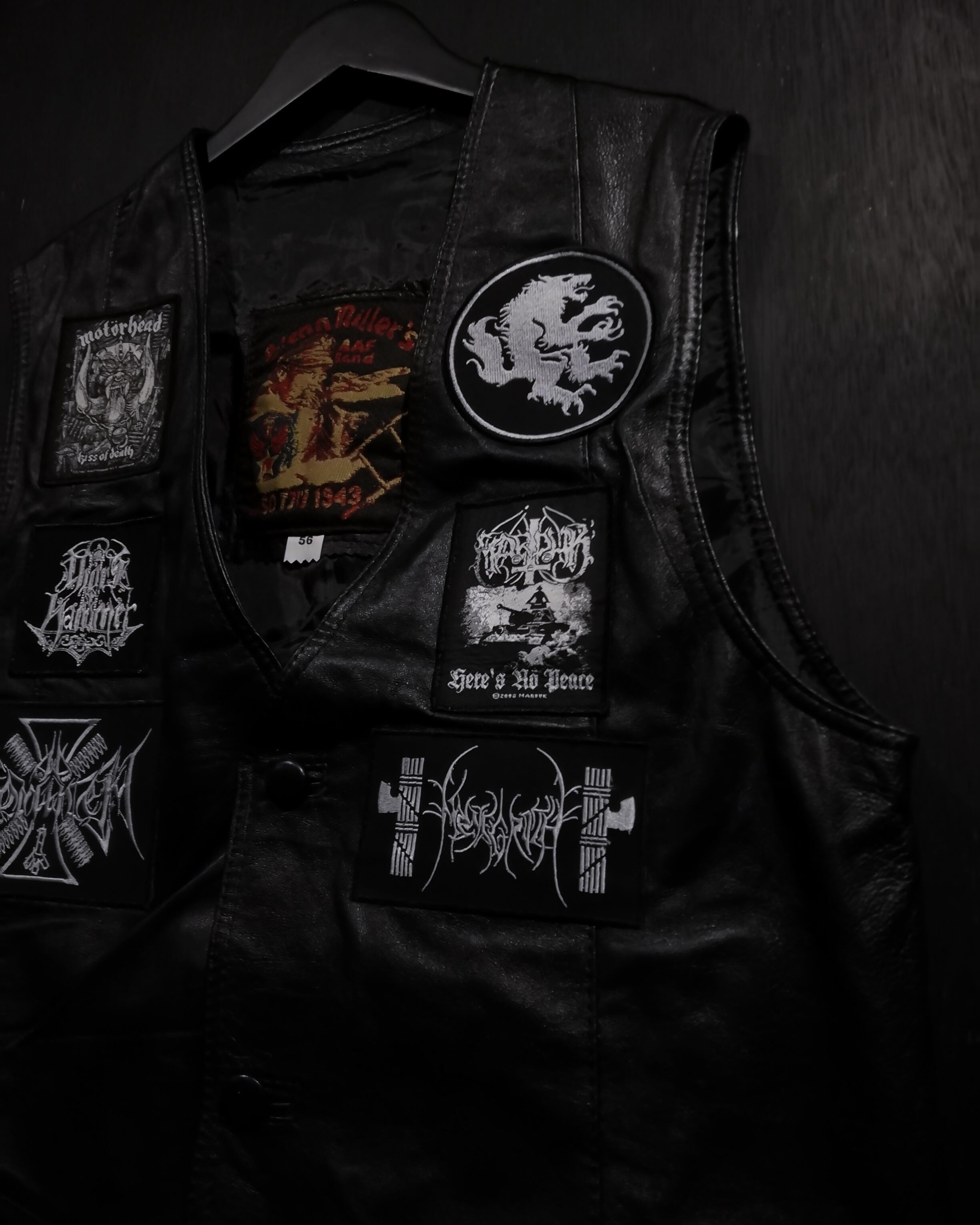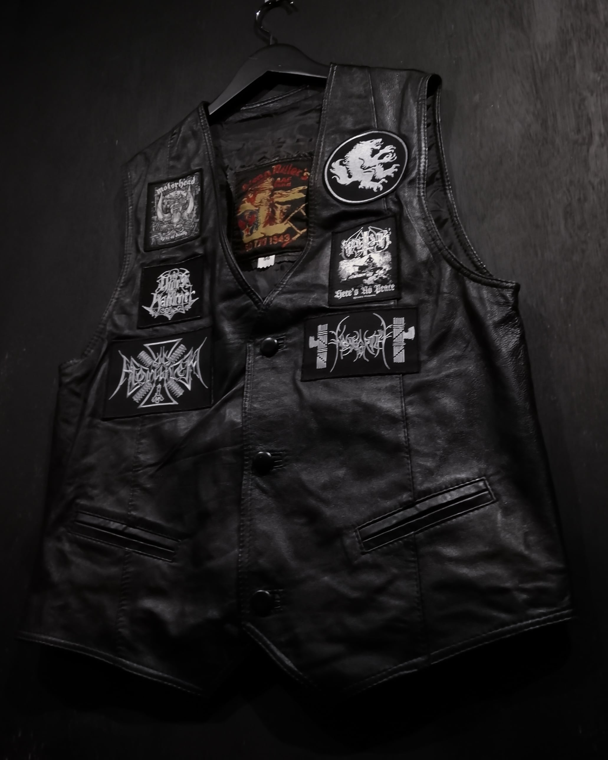 しっとりと柔らかい上質なブラックレザーのボディに、当店らしい、エッジの効いたワッペンカスタムが施されたレザーベスト。