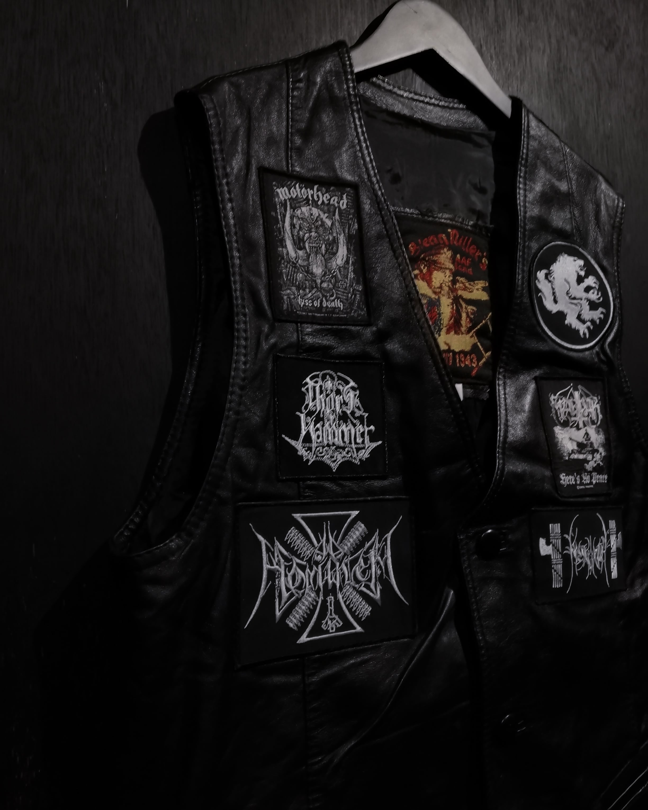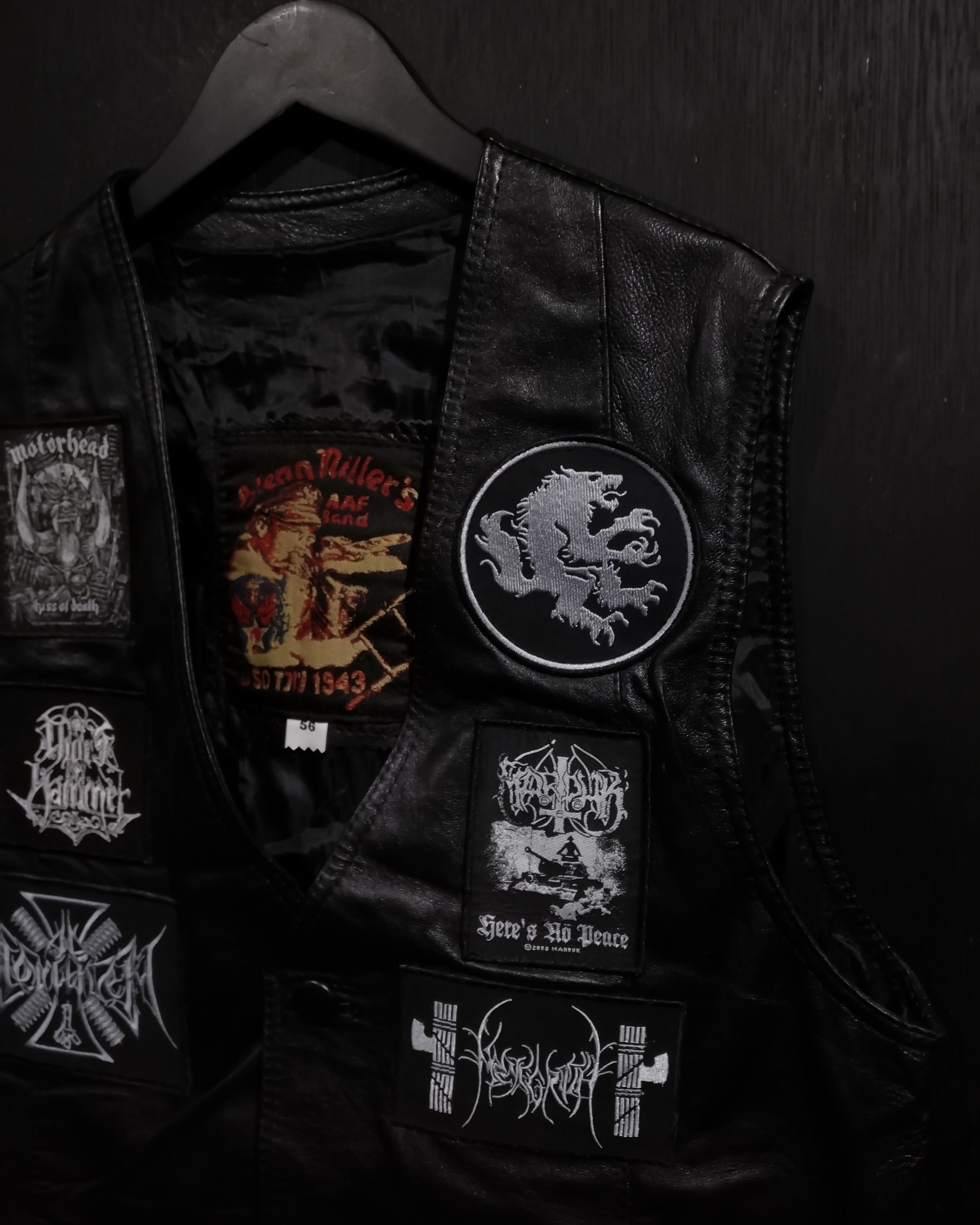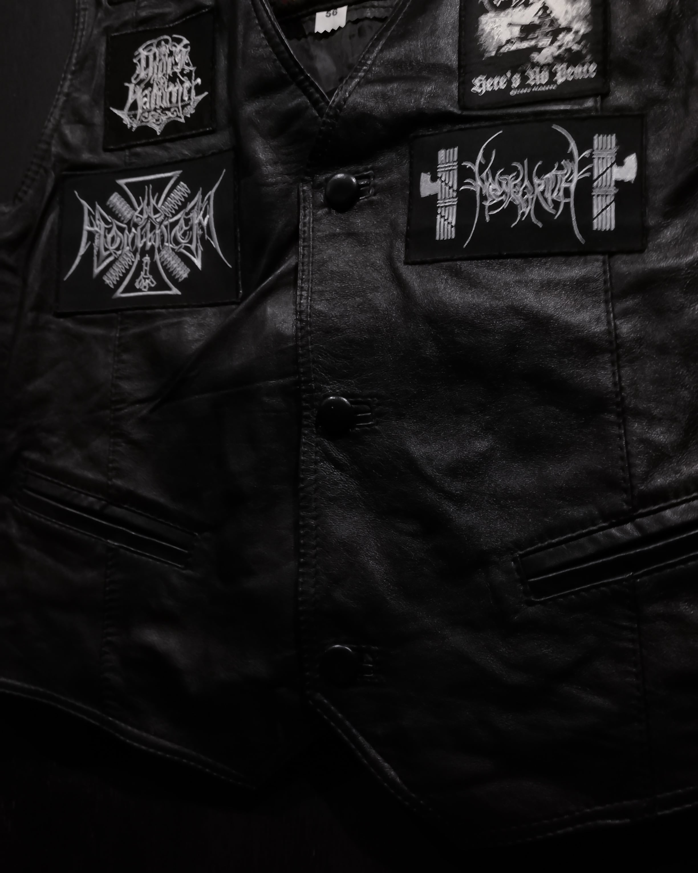 しっとりと柔らかい上質なブラックレザーのボディに、当店らしい、エッジの効いたワッペンカスタムが施されたレザーベスト。