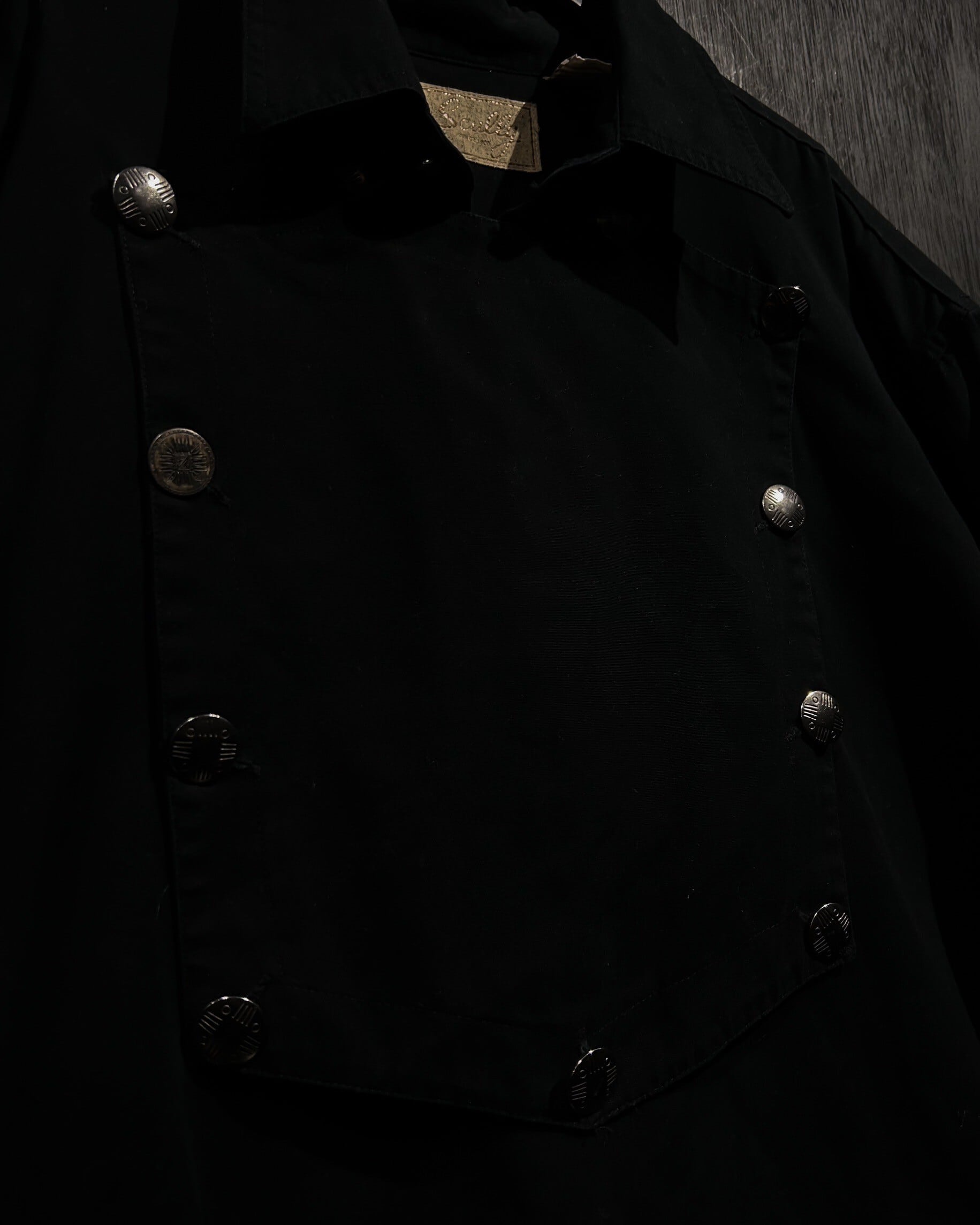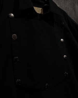 キャバルリーシャツ最大の特徴であるビブにはデザインが施されたメタルボタンを用いており、よりファッショナブルなアイテムへと昇華してくれています。
